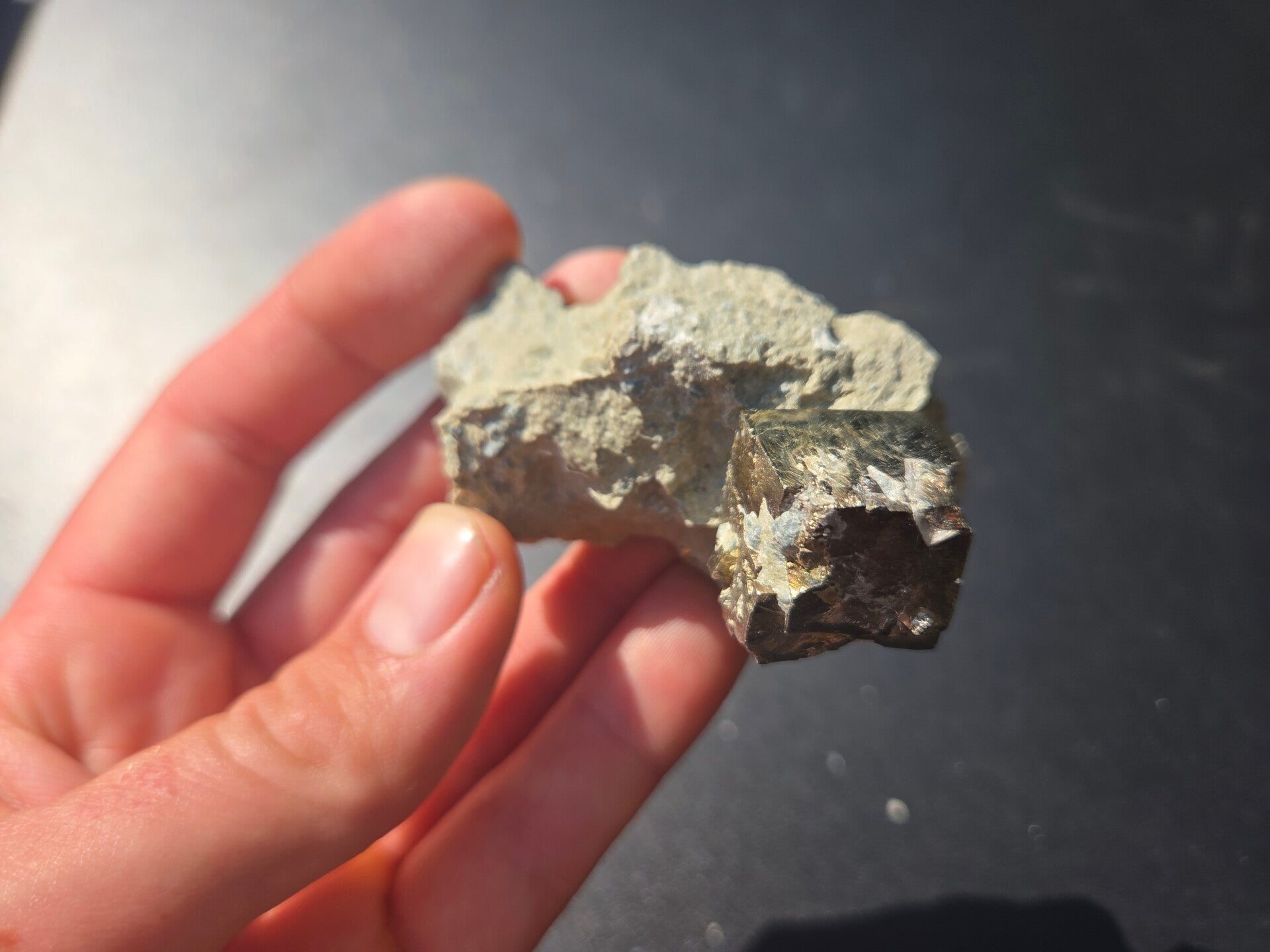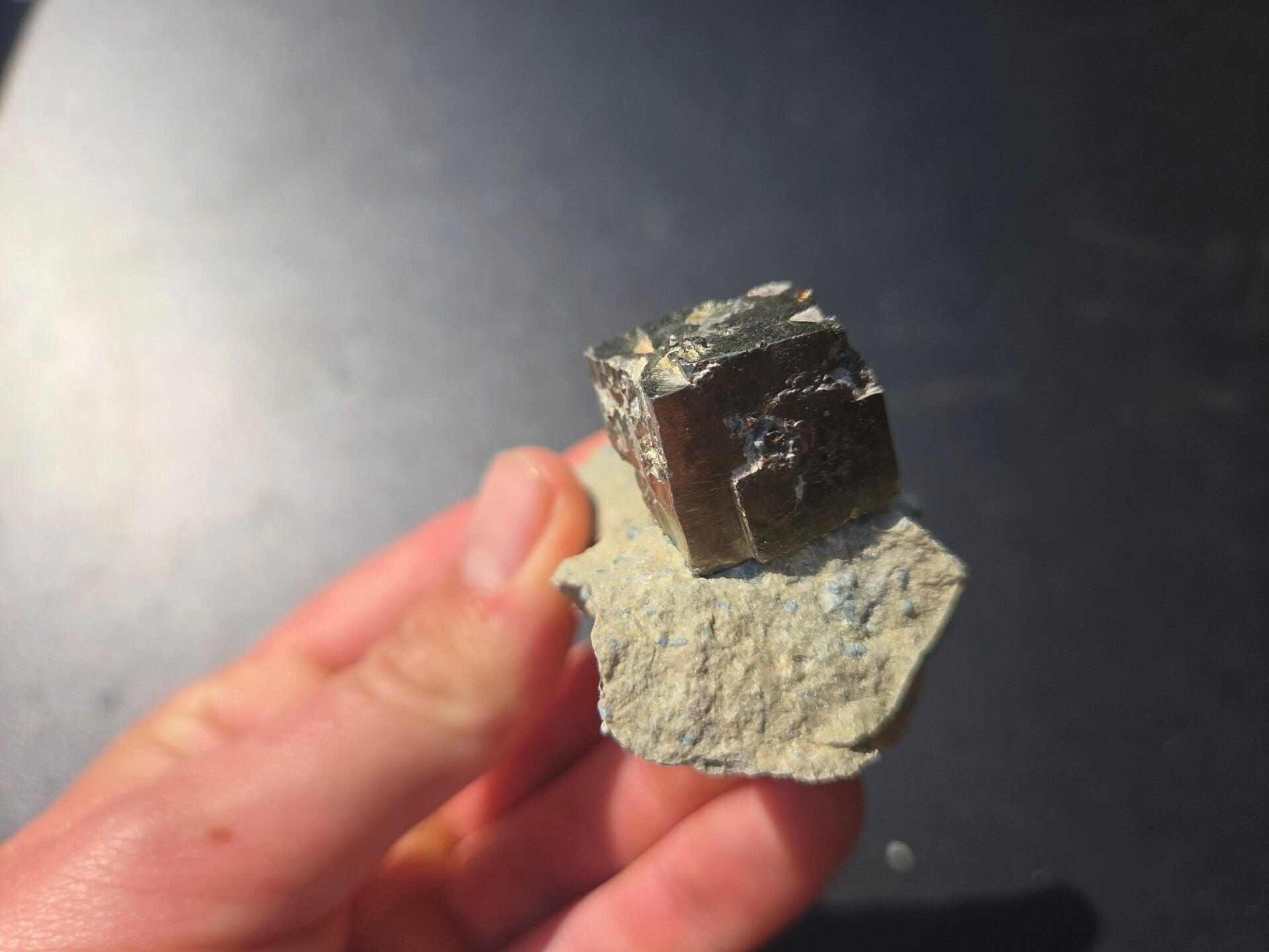 een stukje matrix met pyriet kubussen uit navajun, spanje van 6,6 cm bij 4,2 cm bij 4,3 cm