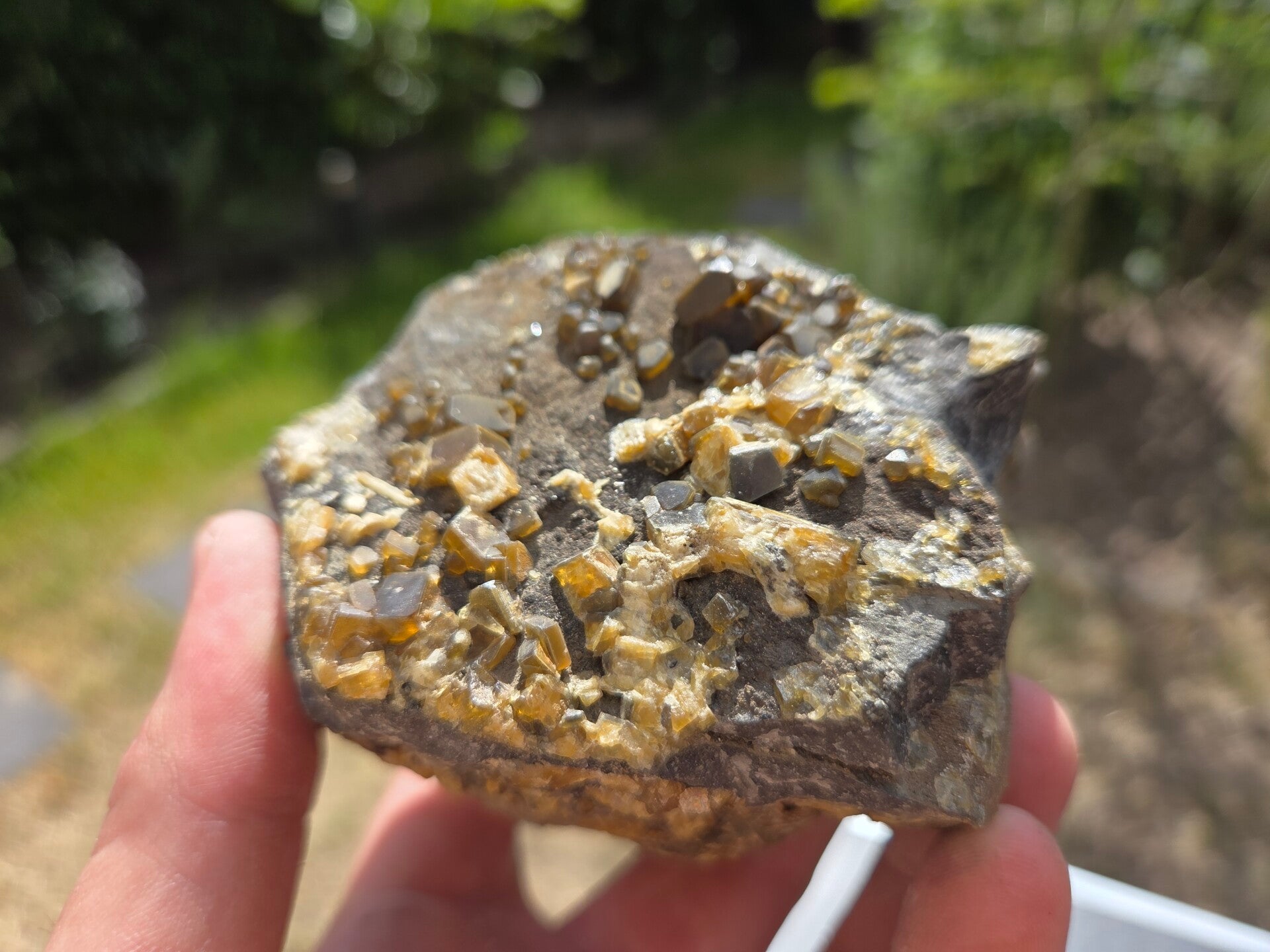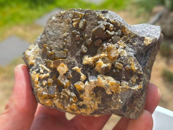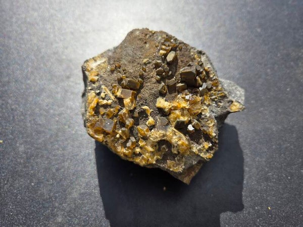 een stuk kwartsiet met daarop bariet kristallen uit jenikov, tsjechië van 9,5 cm bij 7,2 cm bij 7,7 cm