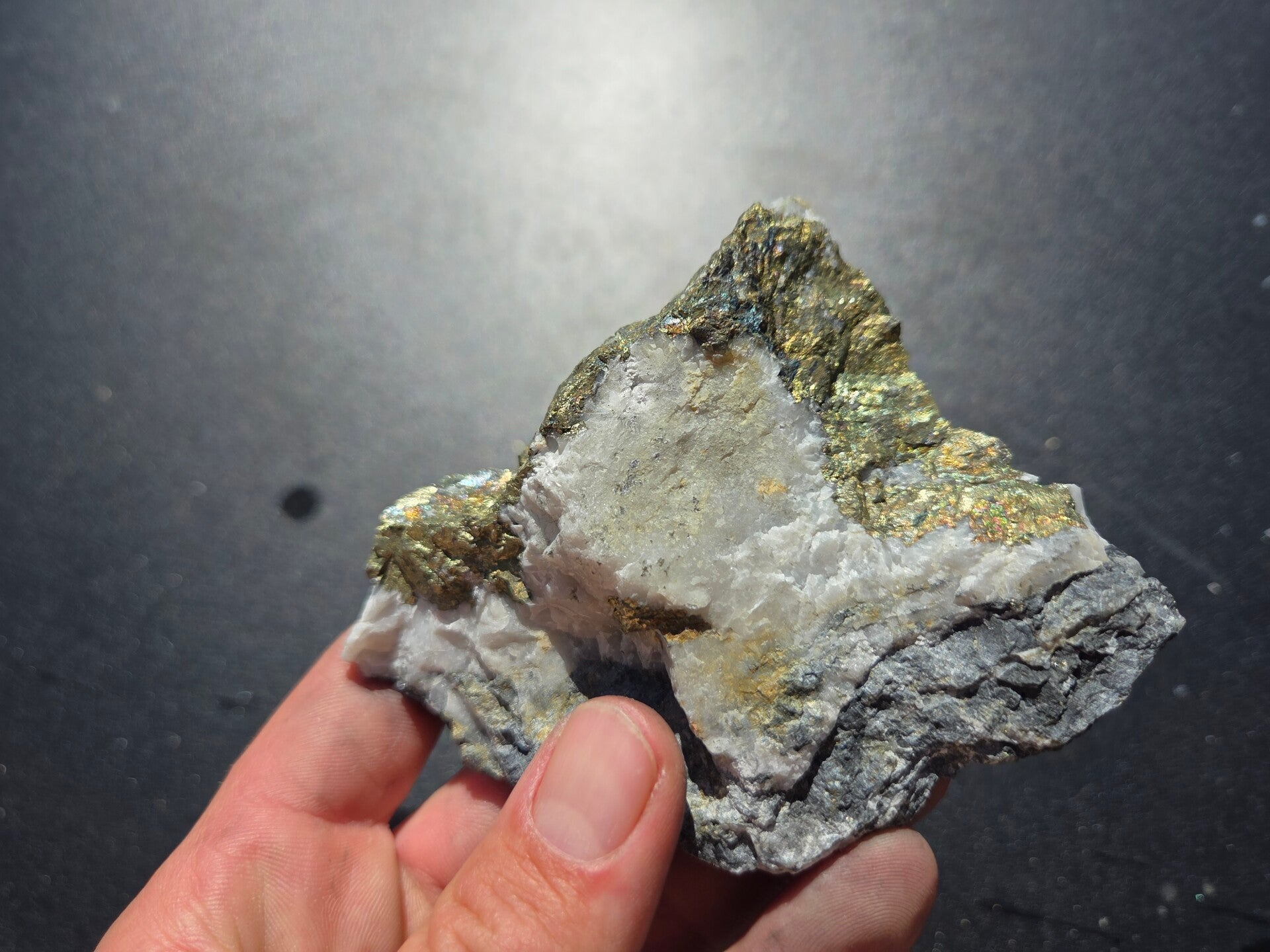 een stuk chalcopyriet uit bösenbrunn, duitsland van 10,8 cm bij 9,5 cm bij 3,2 cm