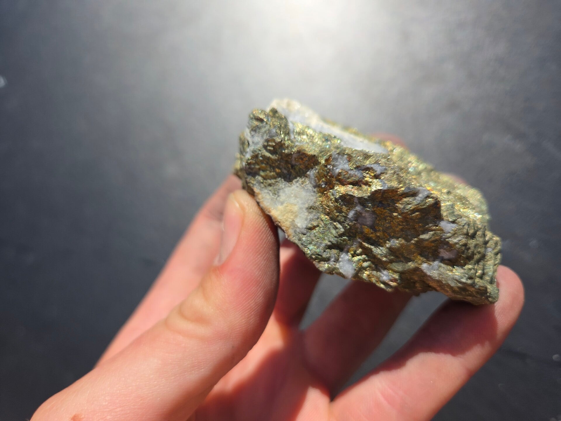 een stuk chalcopyriet uit bösenbrunn, duitsland van 7,4 cm bij 5,3 cm bij 3,6 cm
