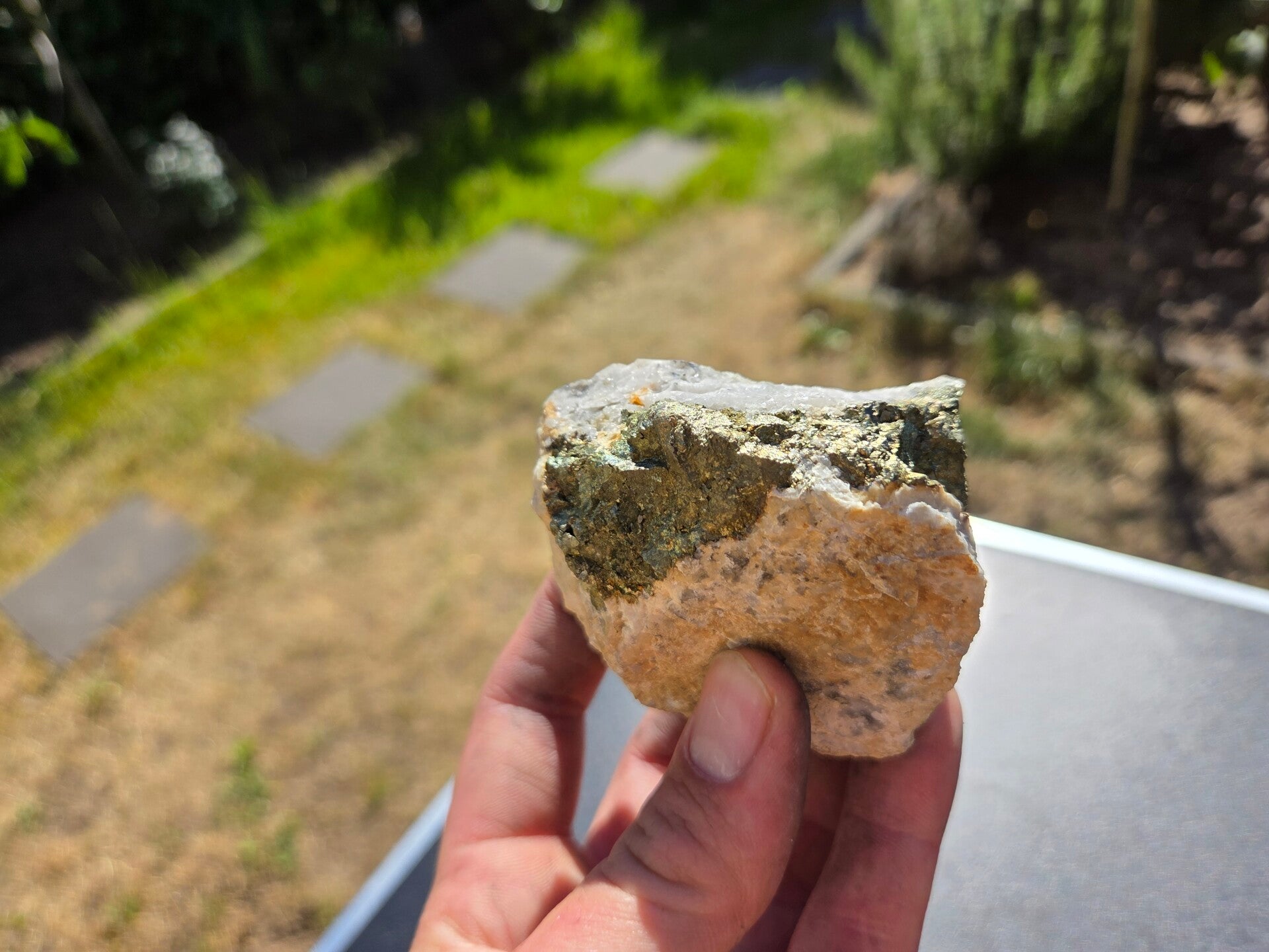 een stuk chalcopyriet uit bösenbrunn, duitsland van 6,4 cm bij 5 cm bij 4,8 cm
