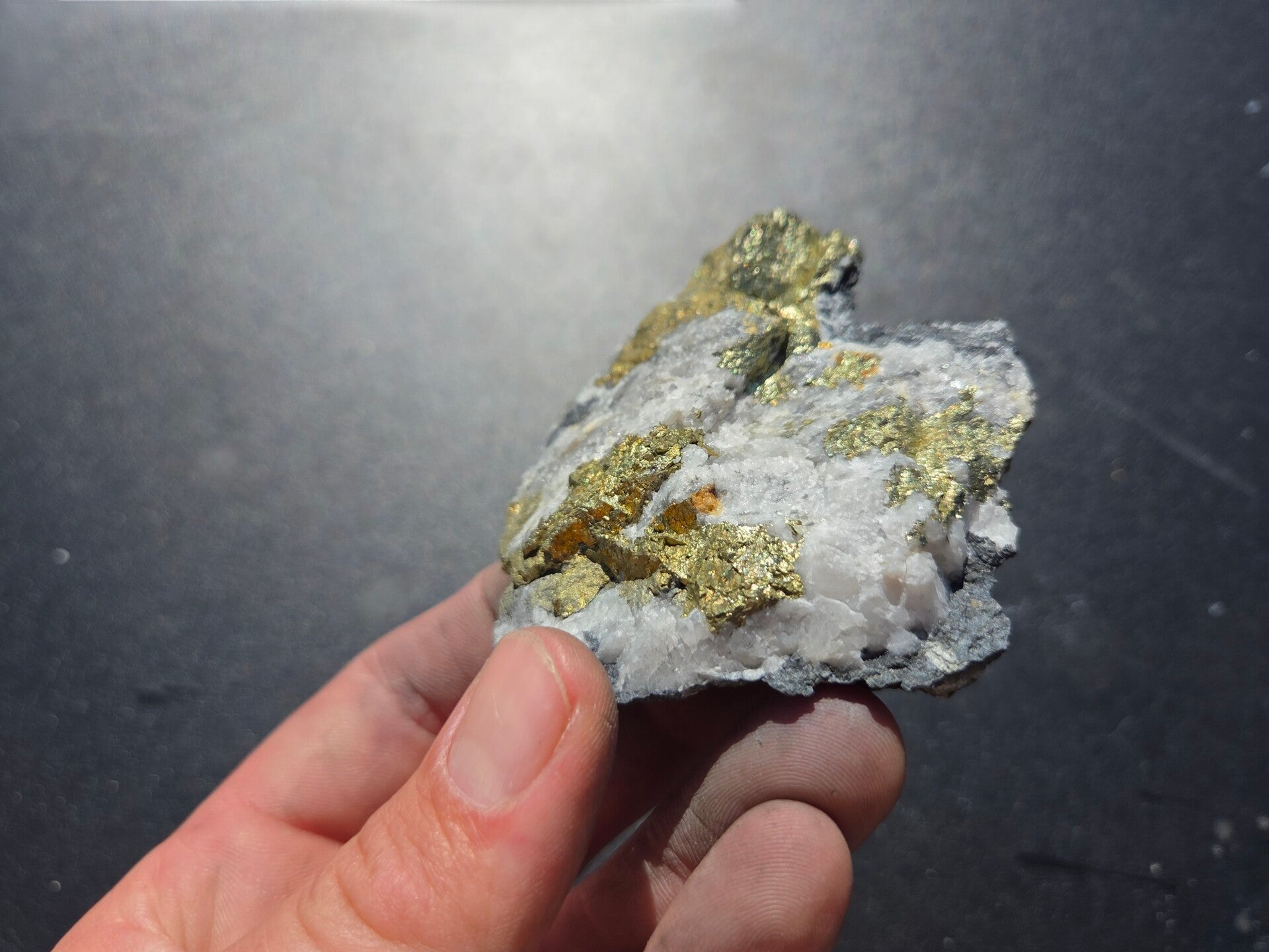 een stuk chalcopyriet uit bösenbrunn, duitsland van 7,1 cm bij 8,2 cm bij 2,2 cm