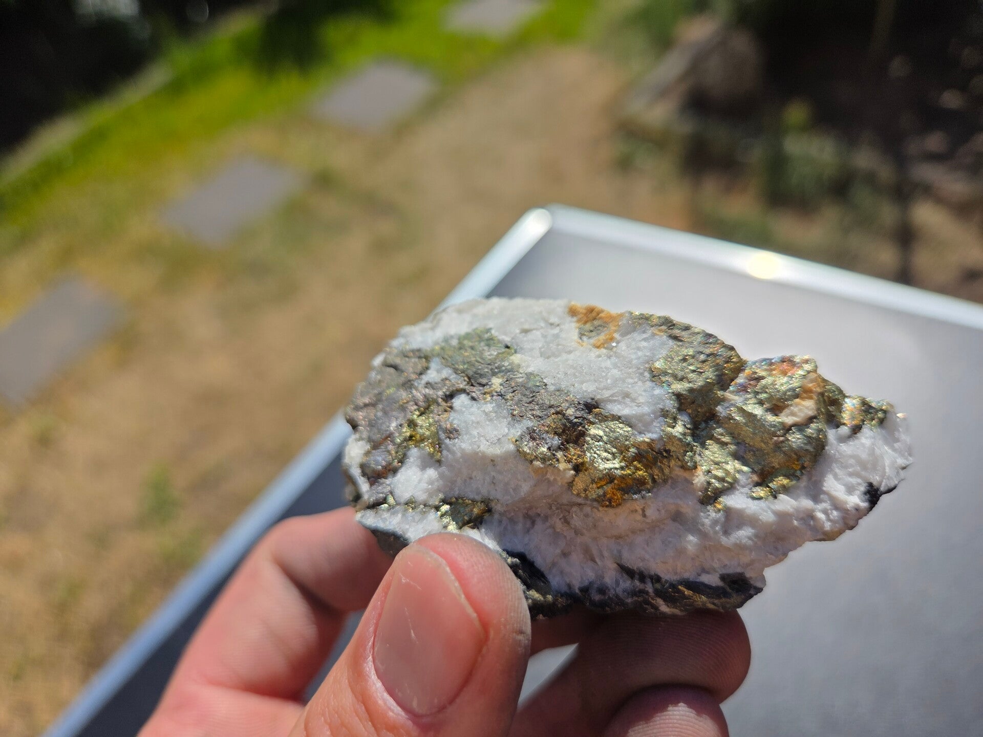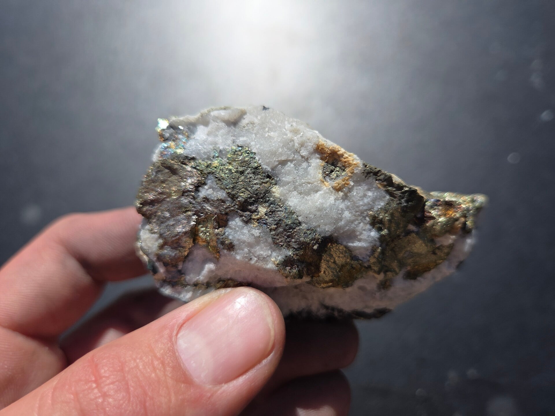 een stuk chalcopyriet uit bösenbrunn, duitsland van 7,7 cm bij 5,1 cm bij 4,1 cm