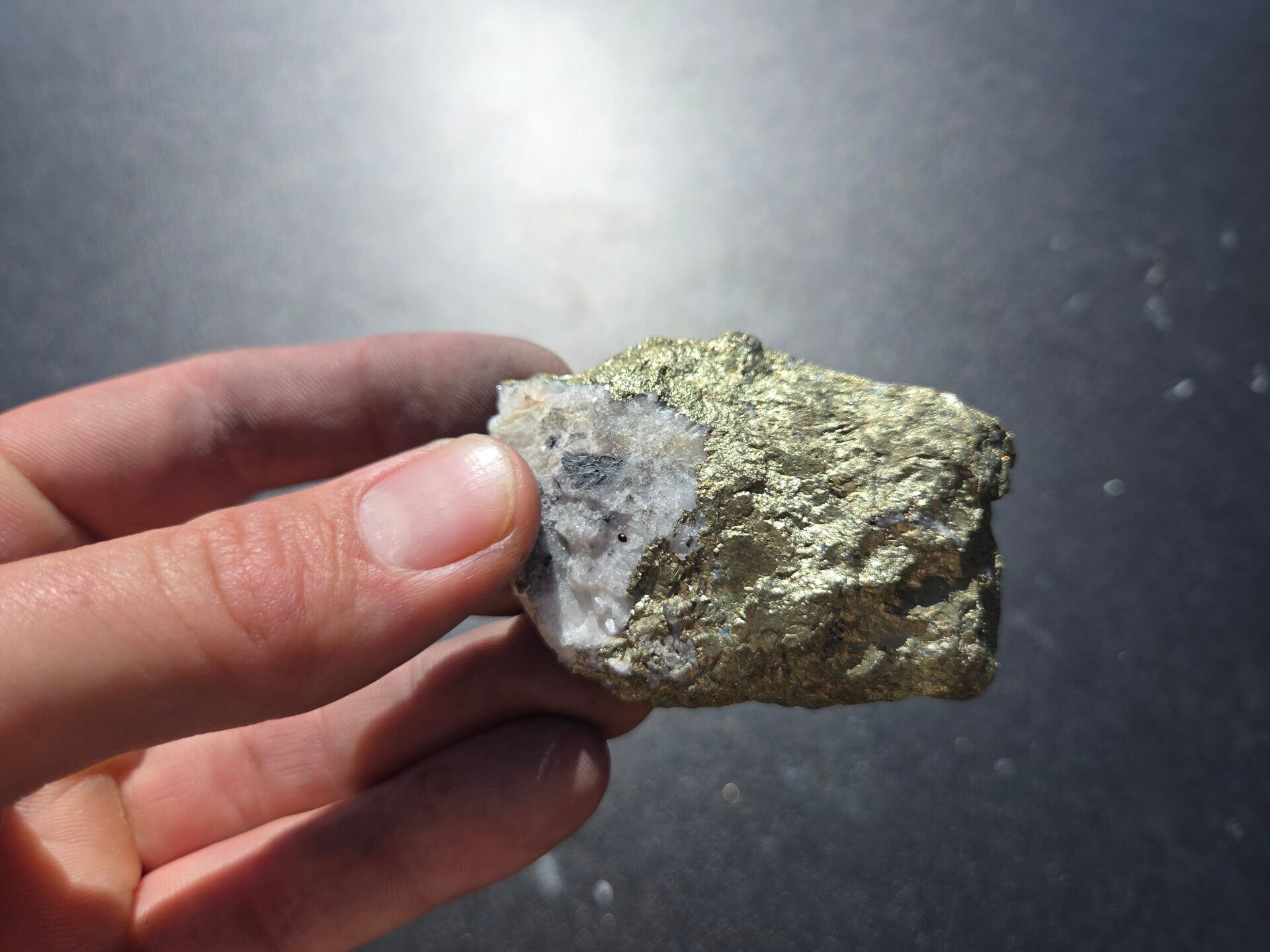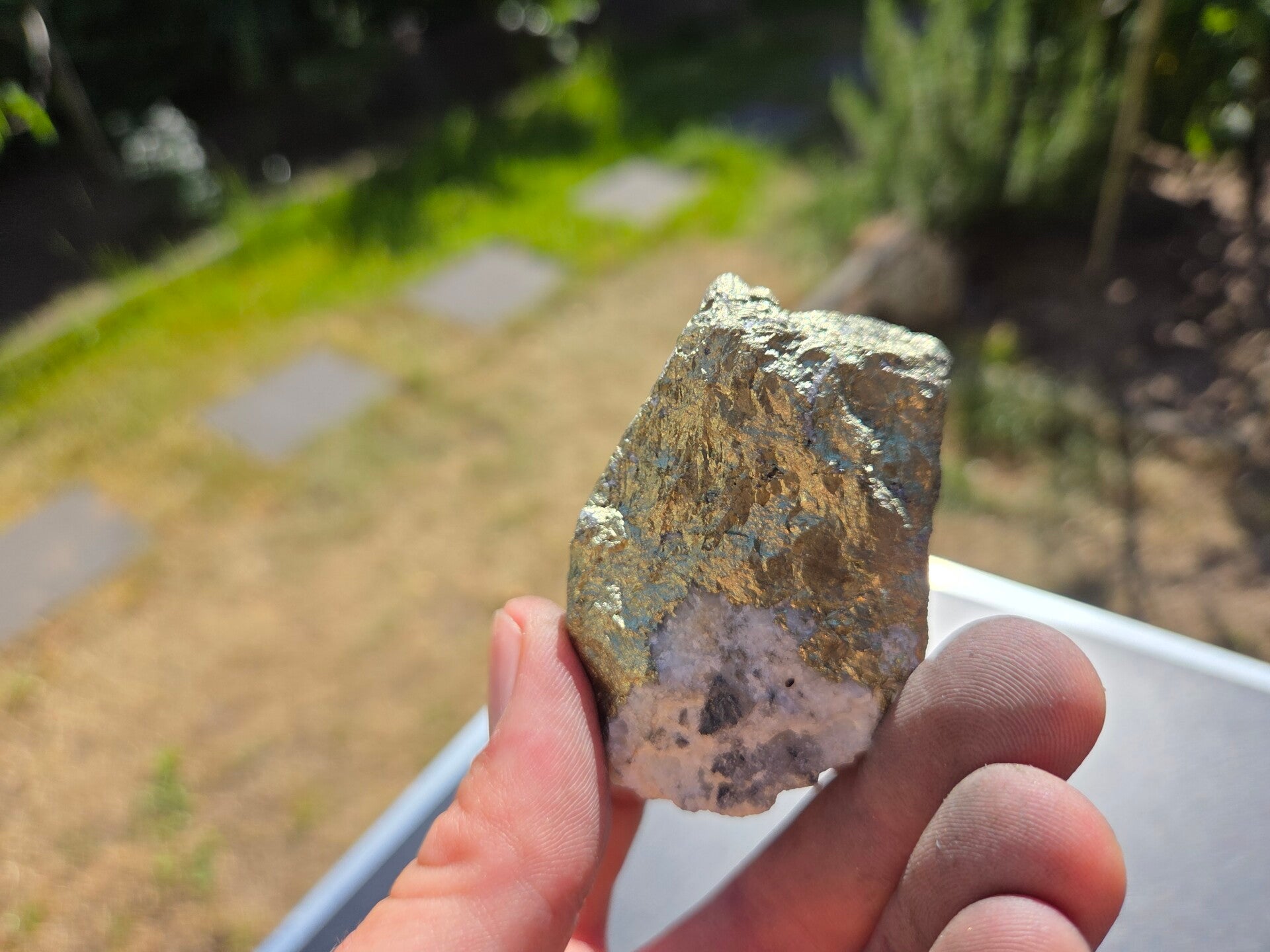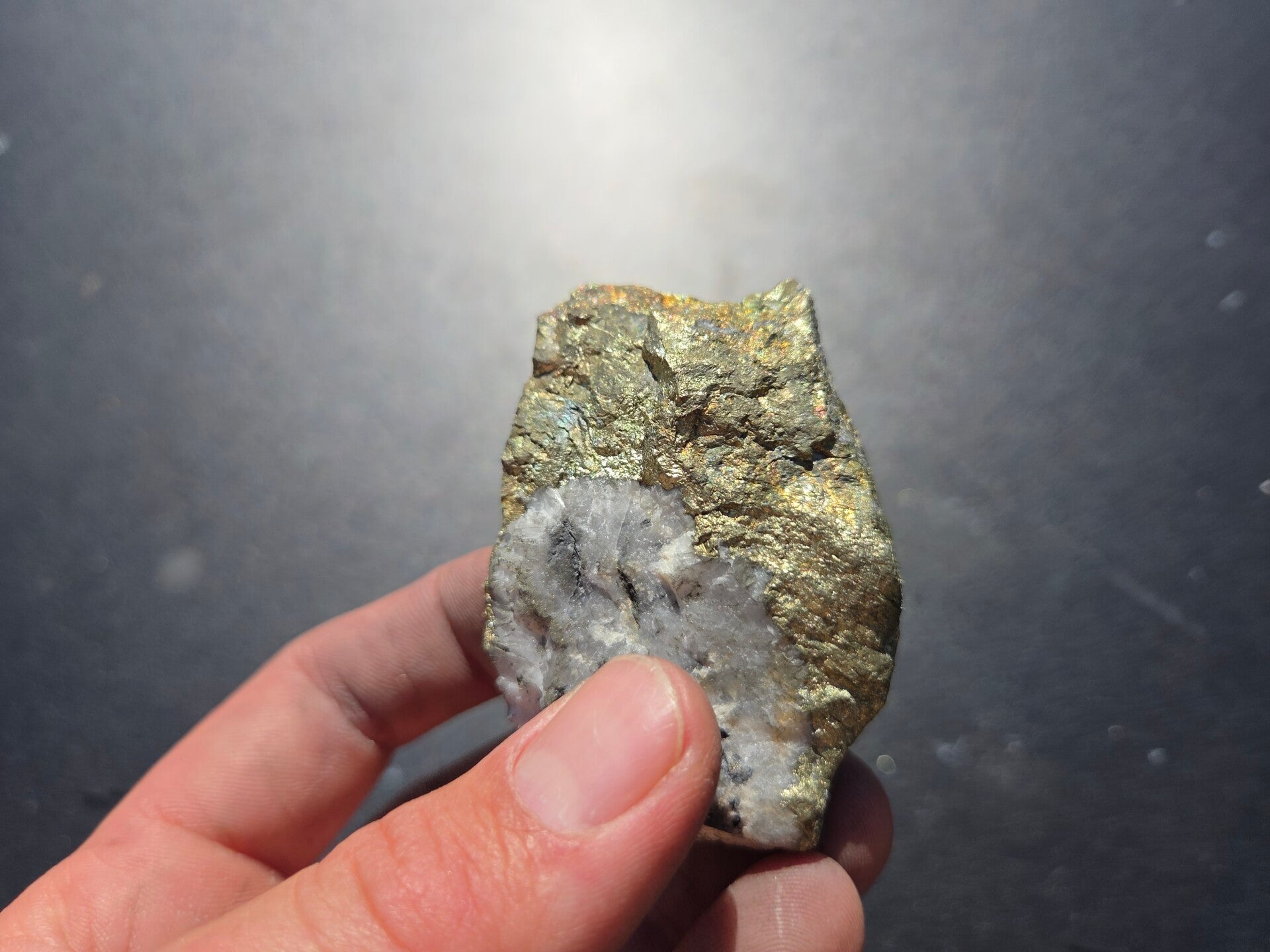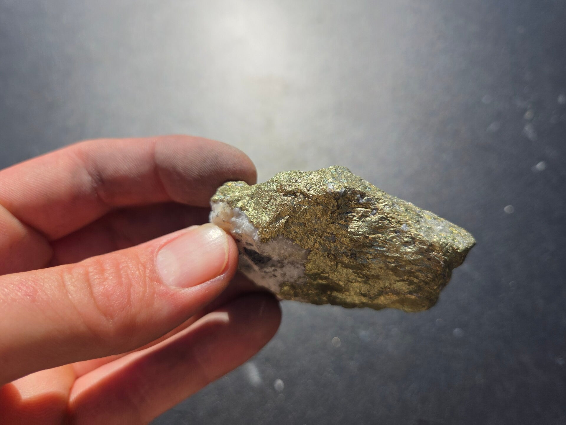 een stuk chalcopyriet uit bösenbrunn, duitsland van 6,5 cm bij 4,5 cm bij 1,8 cm