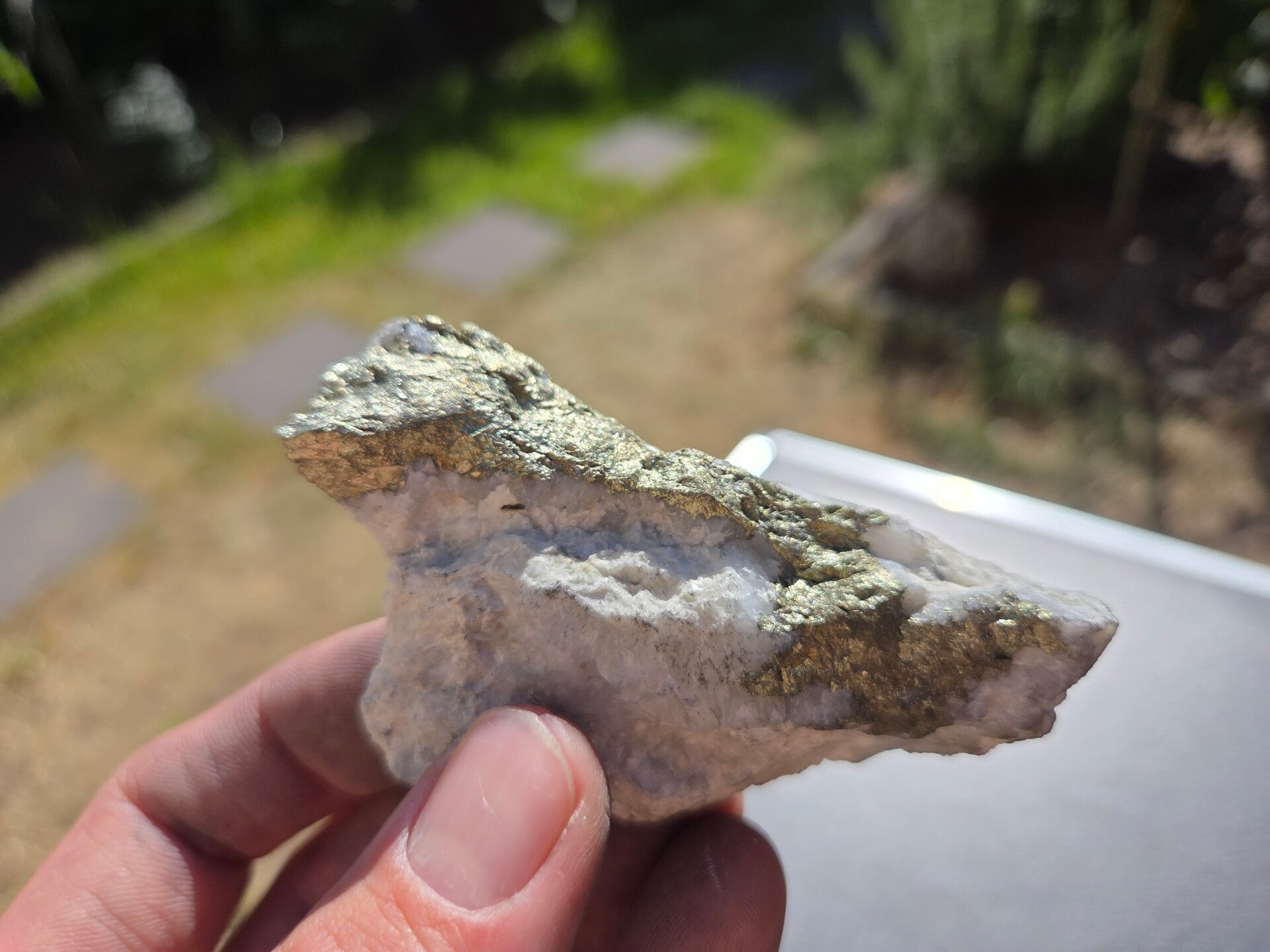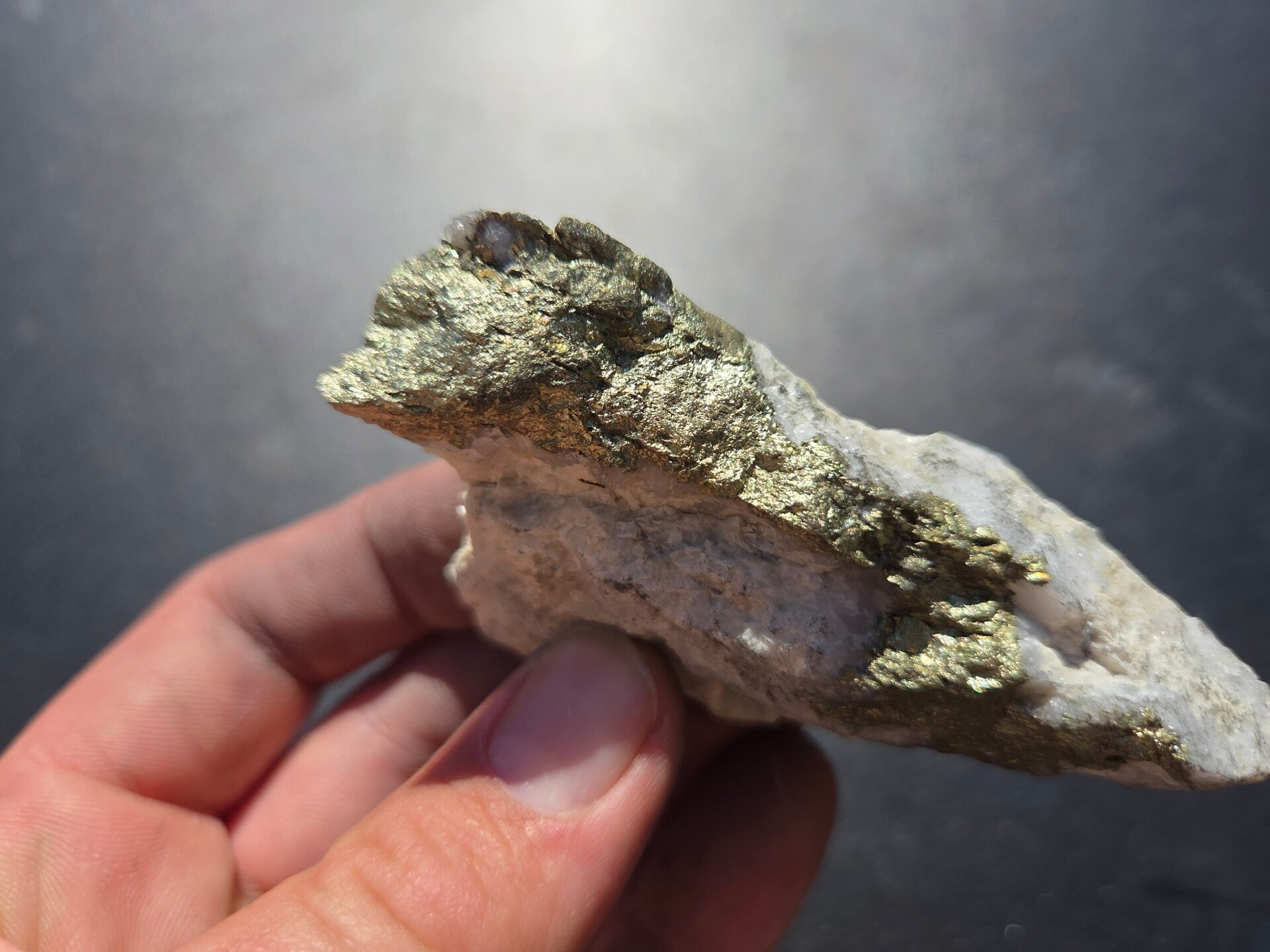 een stuk chalcopyriet uit bösenbrunn, duitsland van 8,2 cm bij 5,3 cm bij 2,5 cm