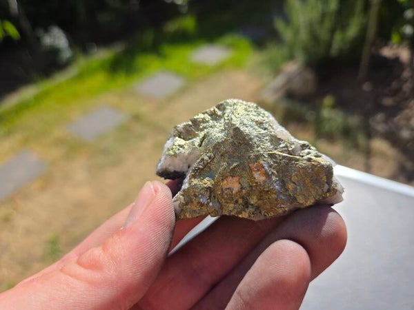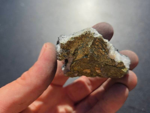een stuk chalcopyriet uit bösenbrunn, duitsland van 6 cm bij 4,2 cm bij 1,9 cm