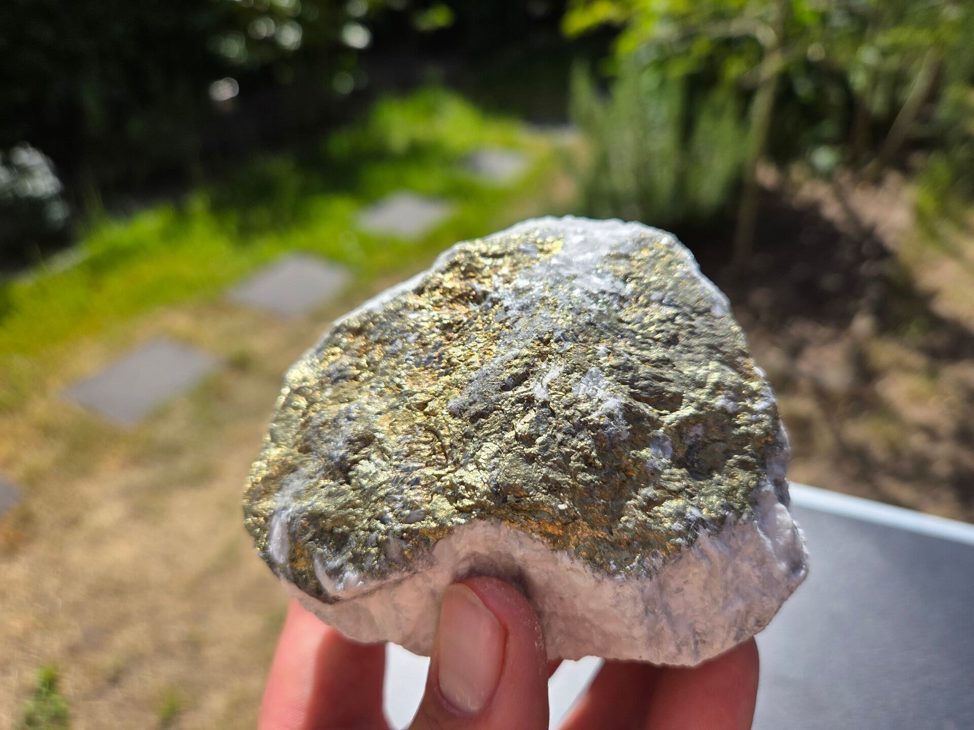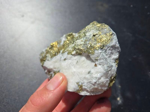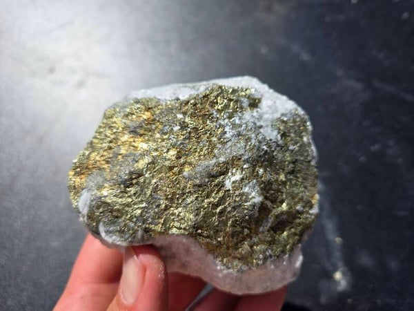 een stuk chalcopyriet met magnesiet uit hnutsa, slowakije van 9,1 cm bij 9,2 cm bij 4,8 cm