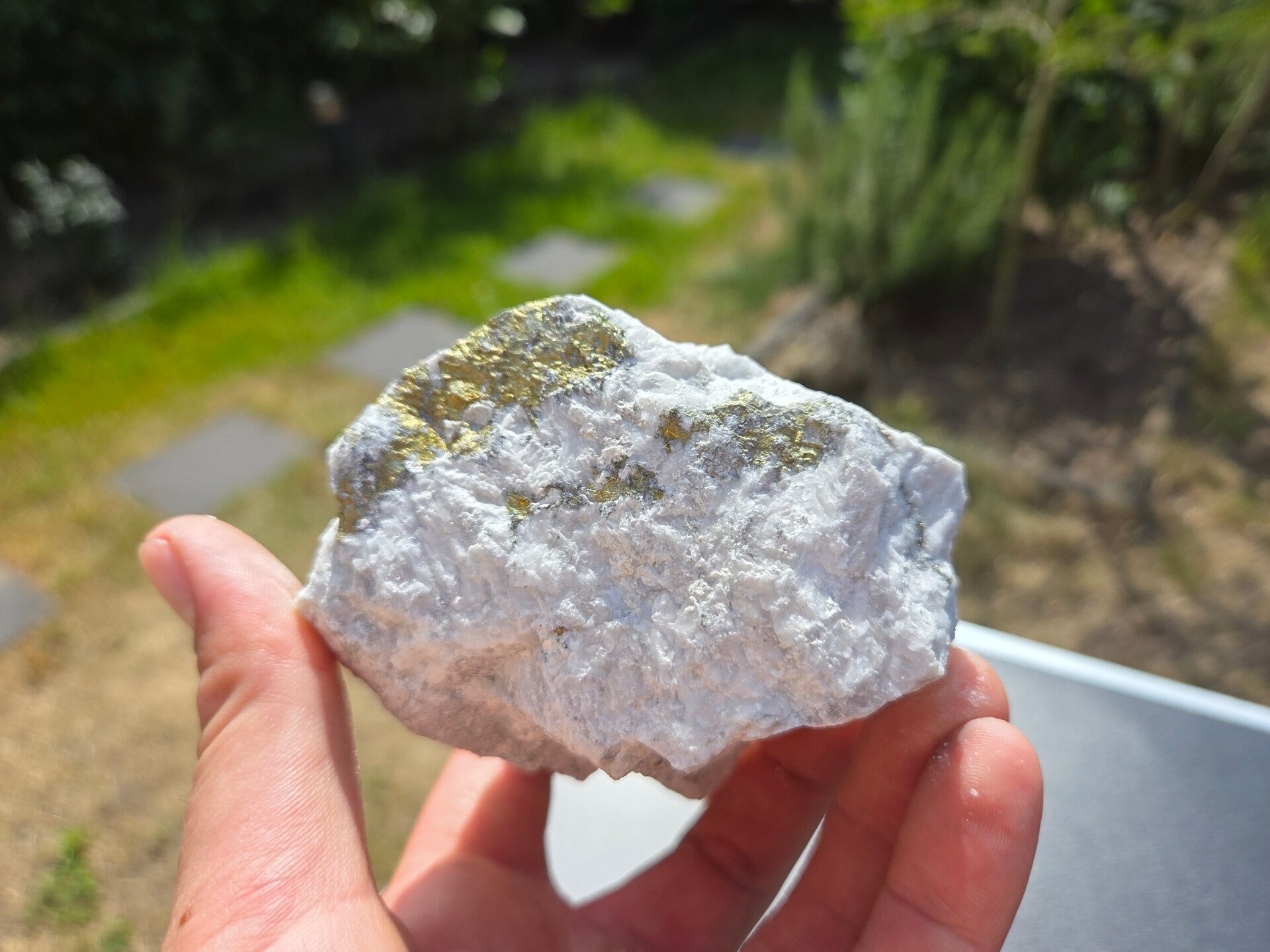 een stuk chalcopyriet met magnesiet uit hnutsa, slowakije van 9,8 cm bij 9,5 cm bij 6,4 cm