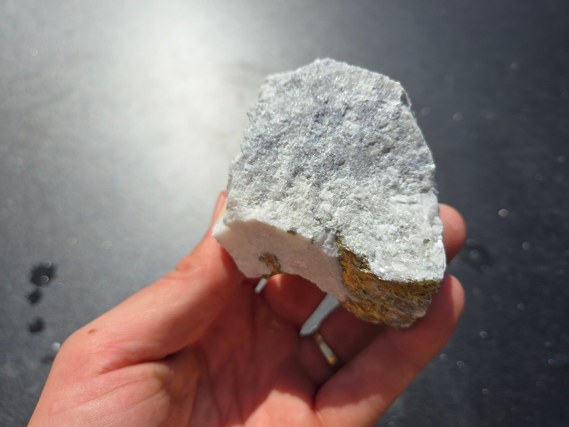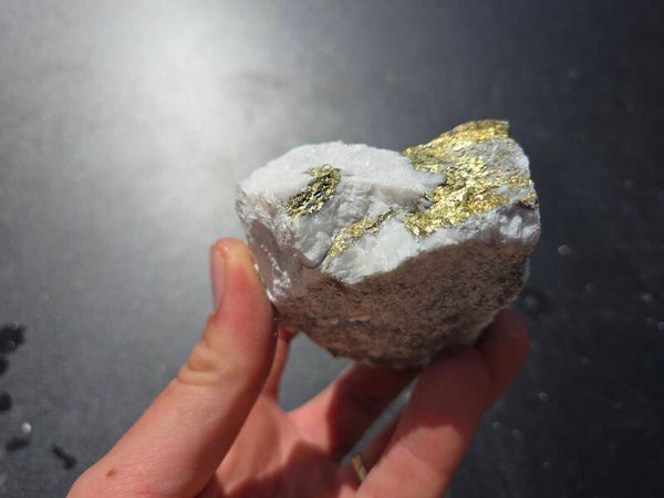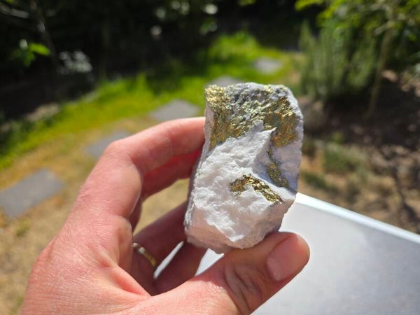 een stuk chalcopyriet met magnesiet uit hnutsa, slowakije van 7,1 cm bij 6,7 cm bij 4,1 cm