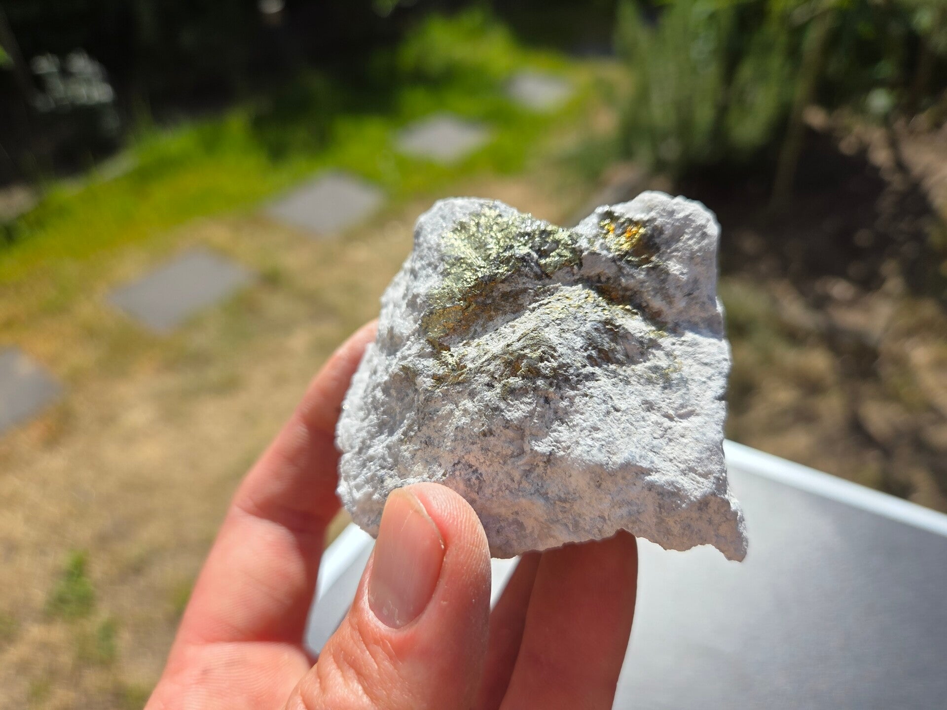 een stuk chalcopyriet met magnesiet uit hnutsa, slowakije van 6,6 cm bij 5,4 cm bij 5 cm