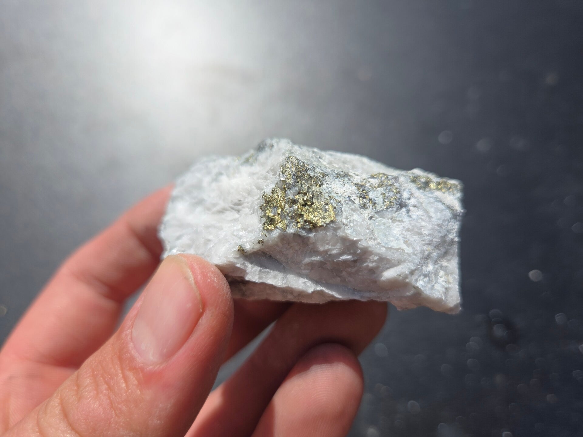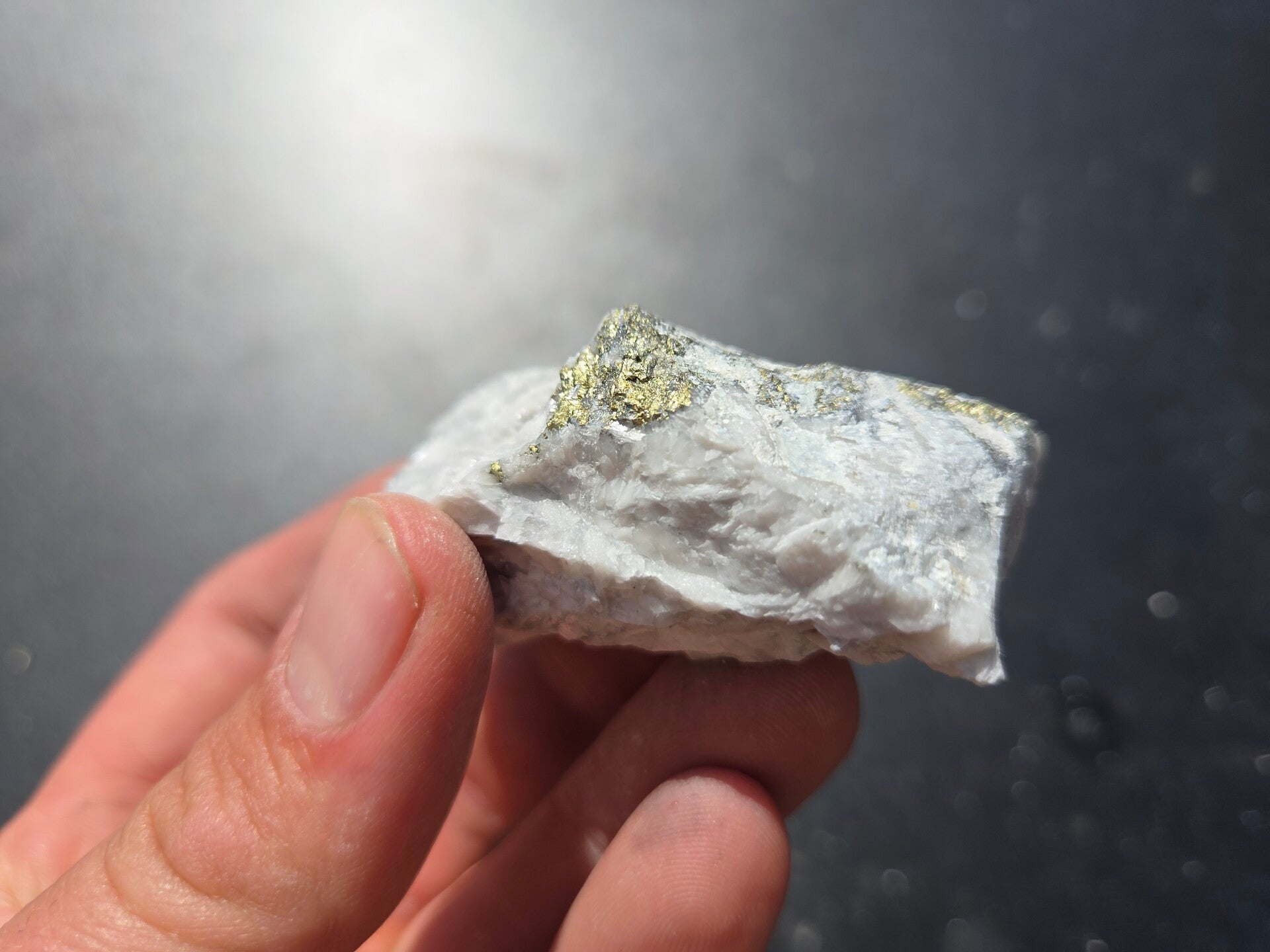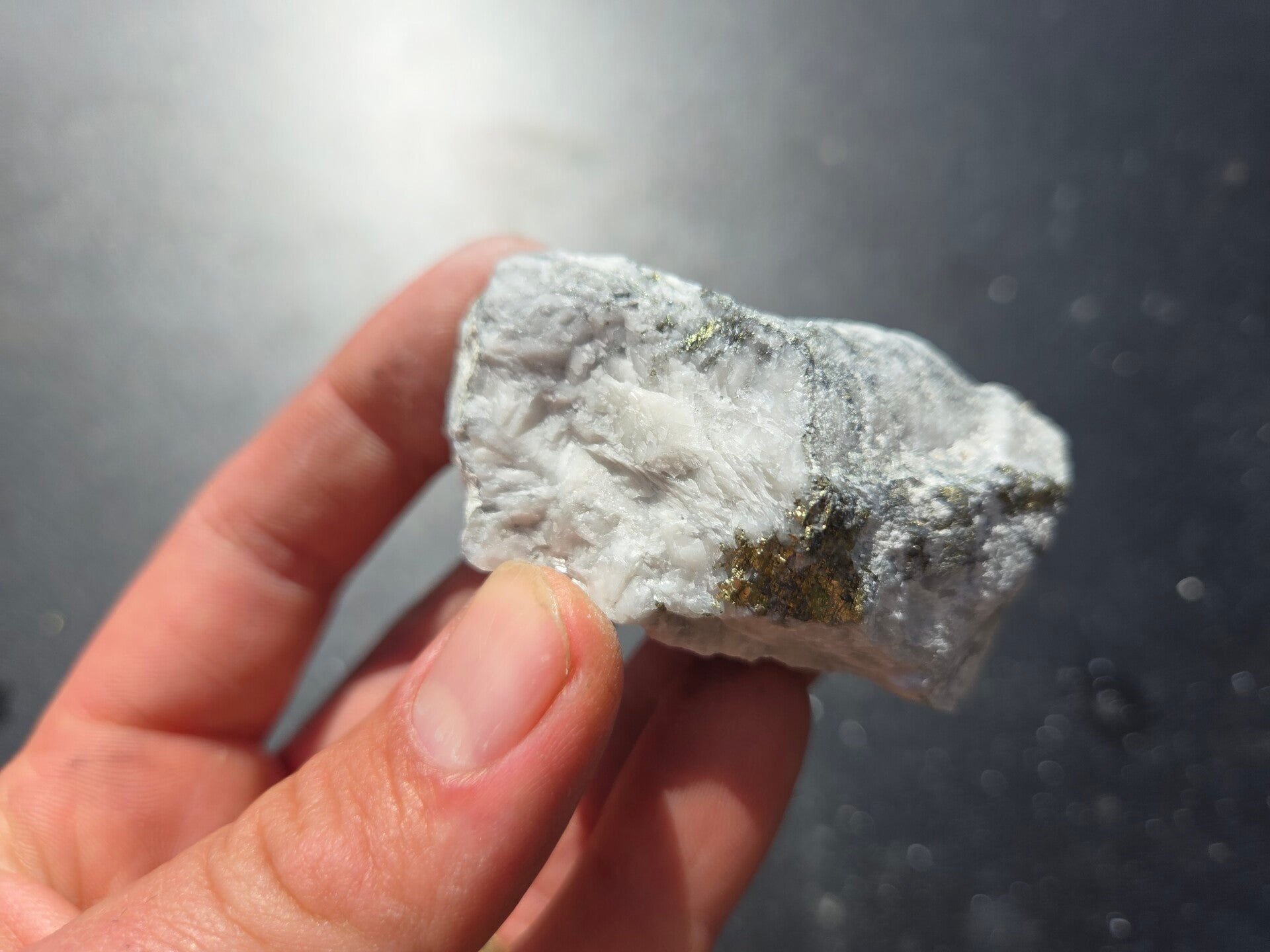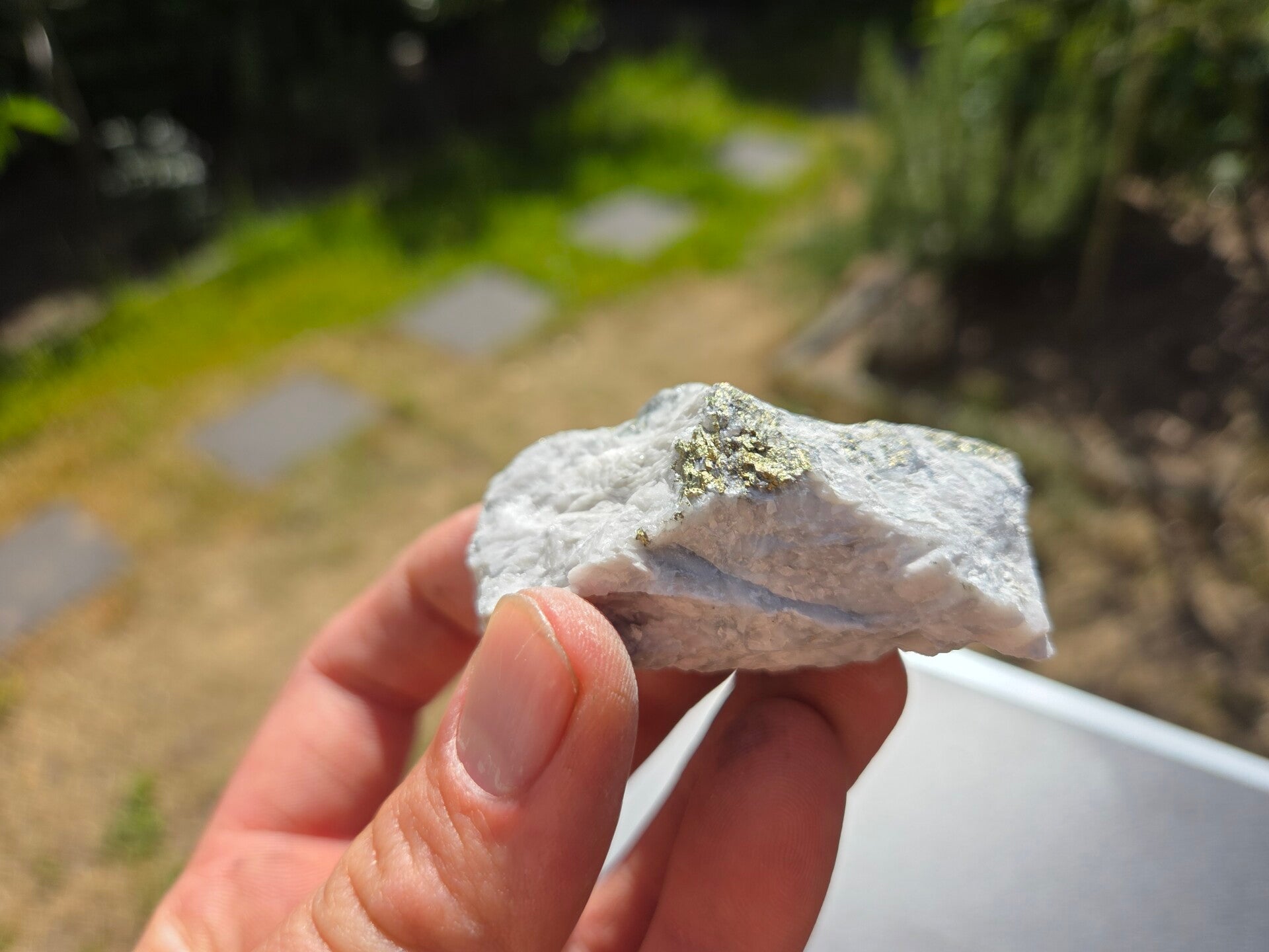 een stuk chalcopyriet met magnesiet uit hnutsa, slowakije van 6,1 cm bij 3,2 cm bij 3,6 cm