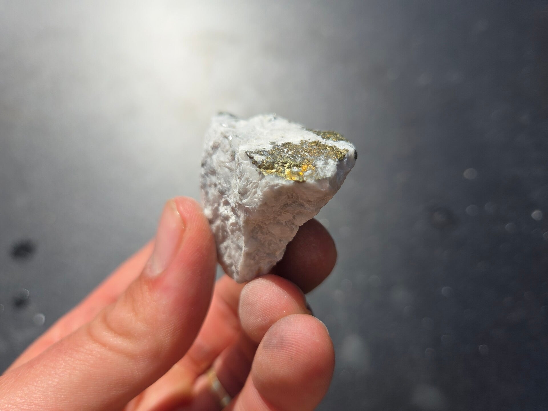 een stuk chalcopyriet met magnesiet uit hnutsa, slowakije van 4,6 cm bij 3,7 cm bij 3 cm