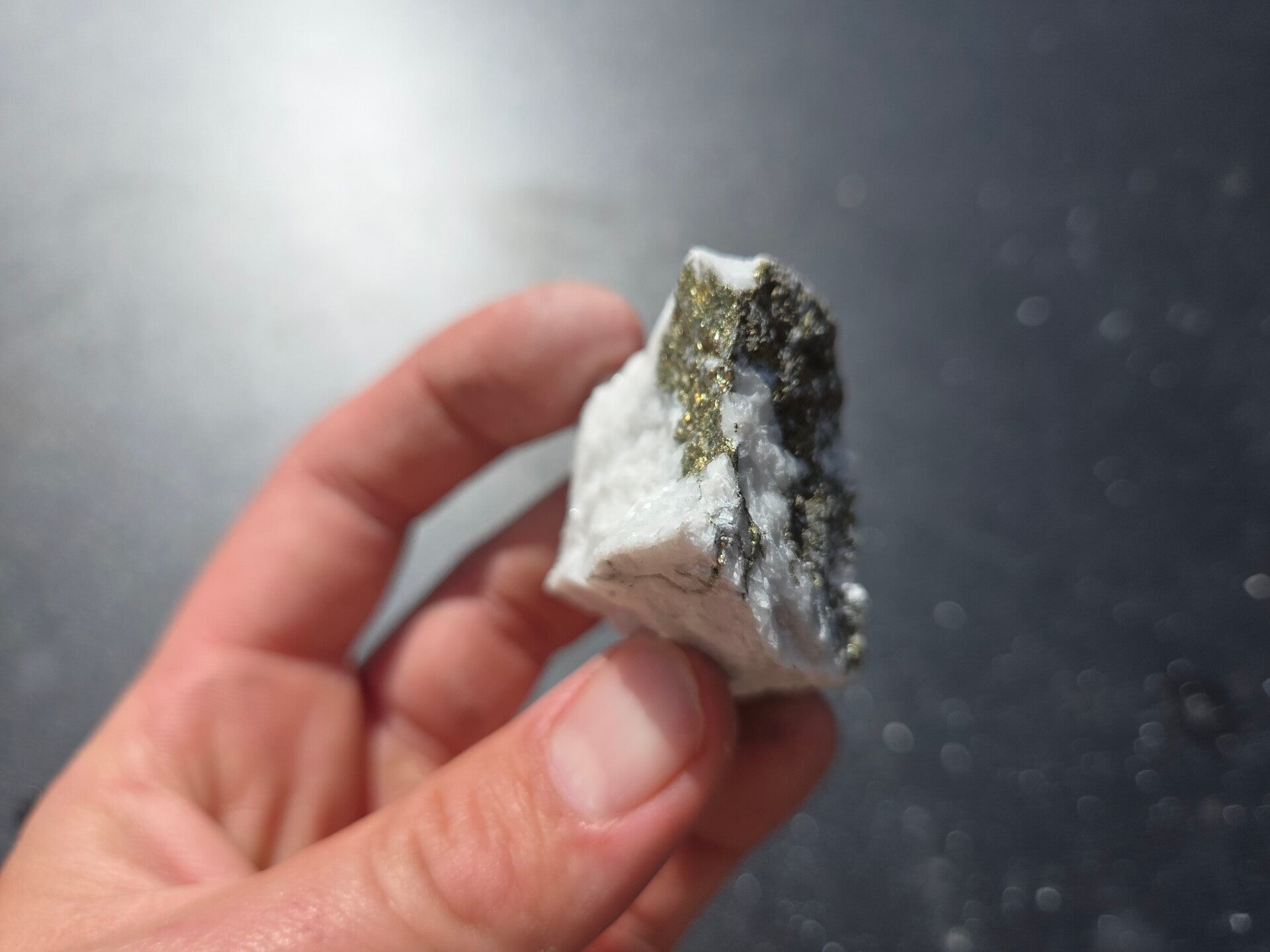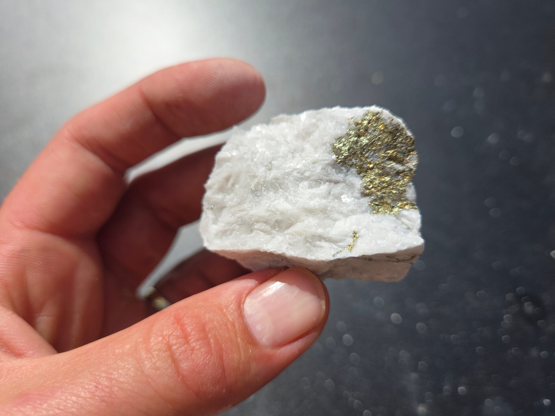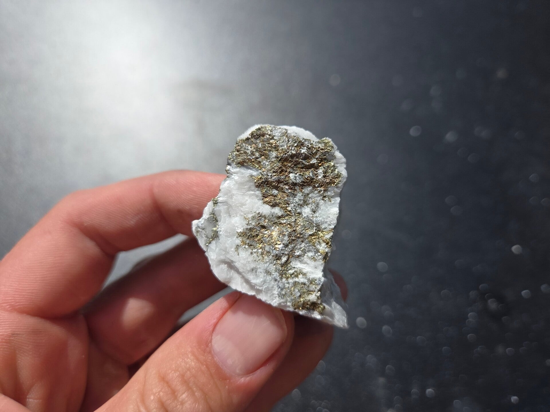 een stuk chalcopyriet met magnesiet uit hnutsa, slowakije van 4,6 cm bij 4,1 cm bij 3,2 cm