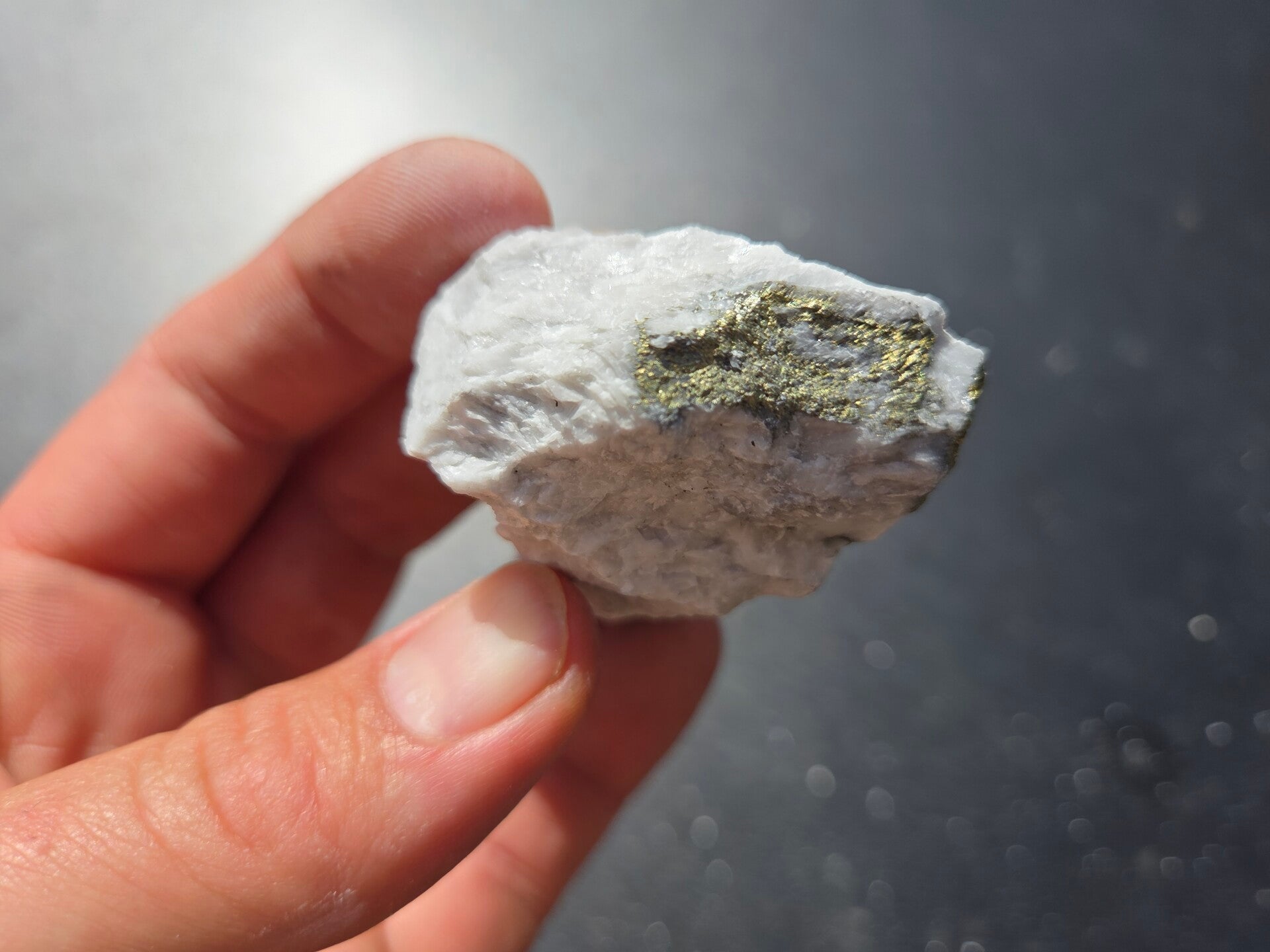 een stuk chalcopyriet met magnesiet uit hnutsa, slowakije van 5,1 cm bij 4,6 cm bij 2,1 cm