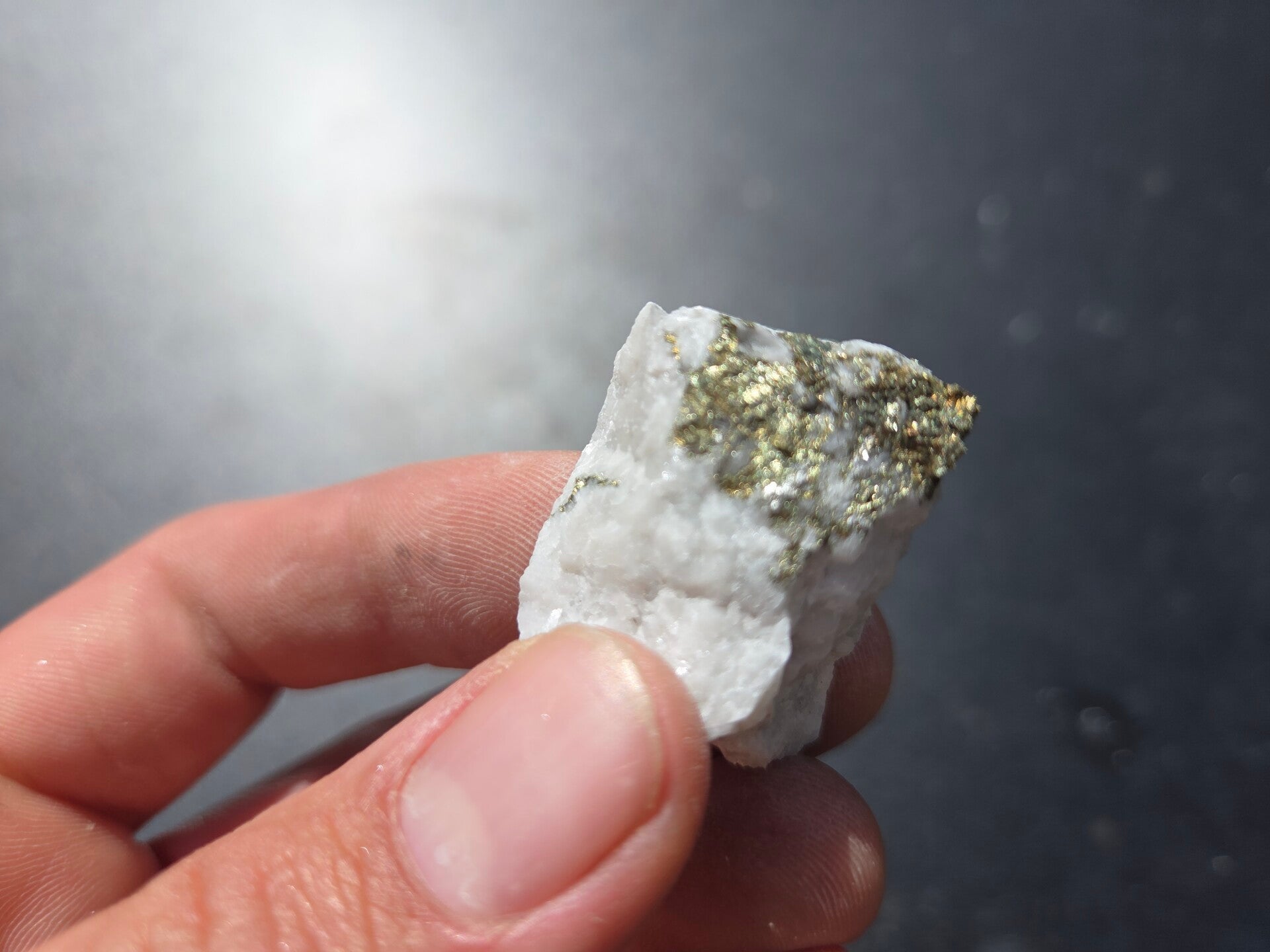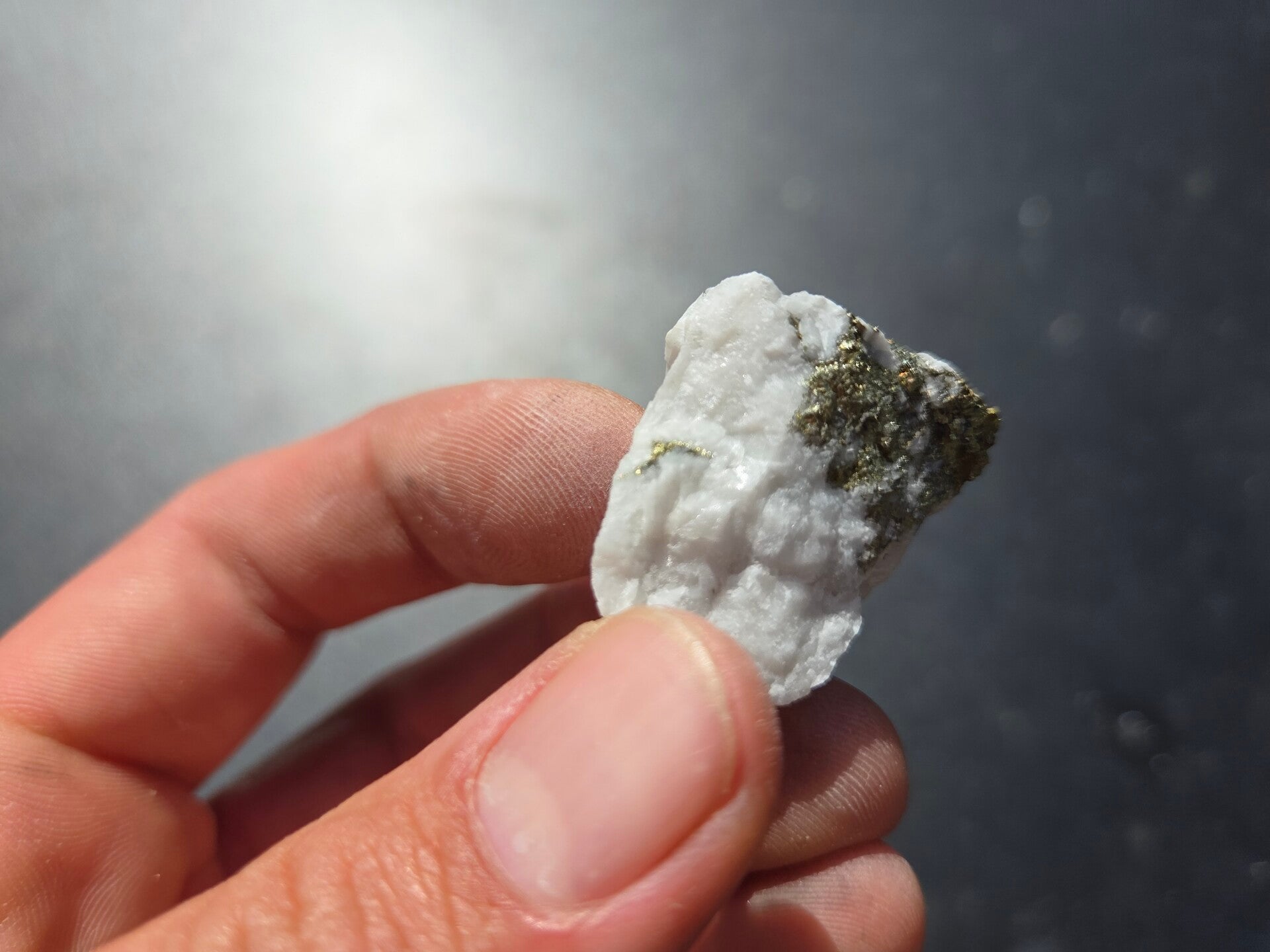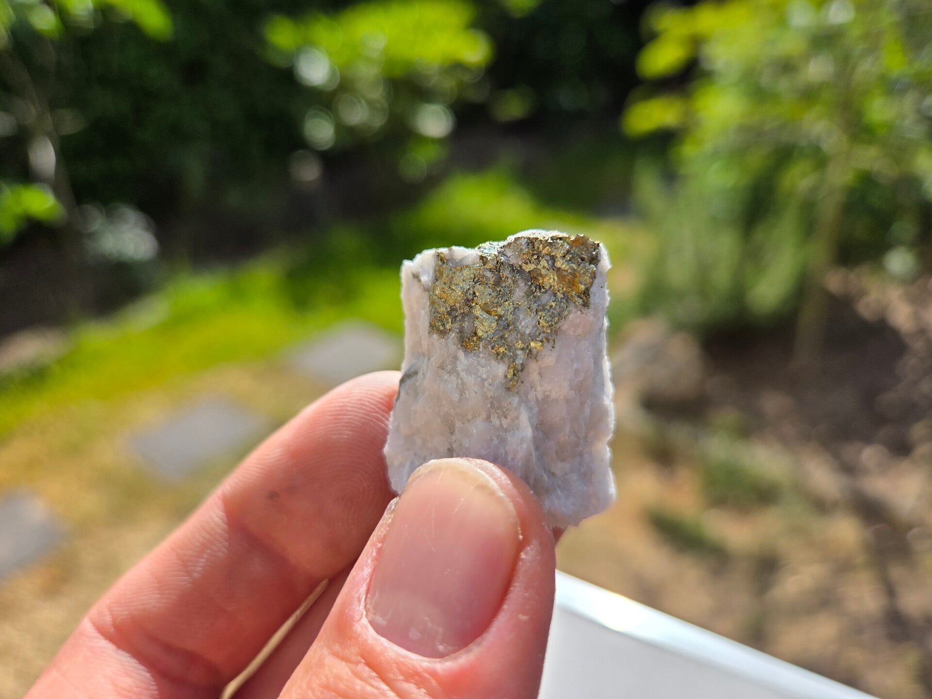 een stuk chalcopyriet met magnesiet uit hnutsa, slowakije van 3,2 cm bij 2,6 cm bij 2,3 cm