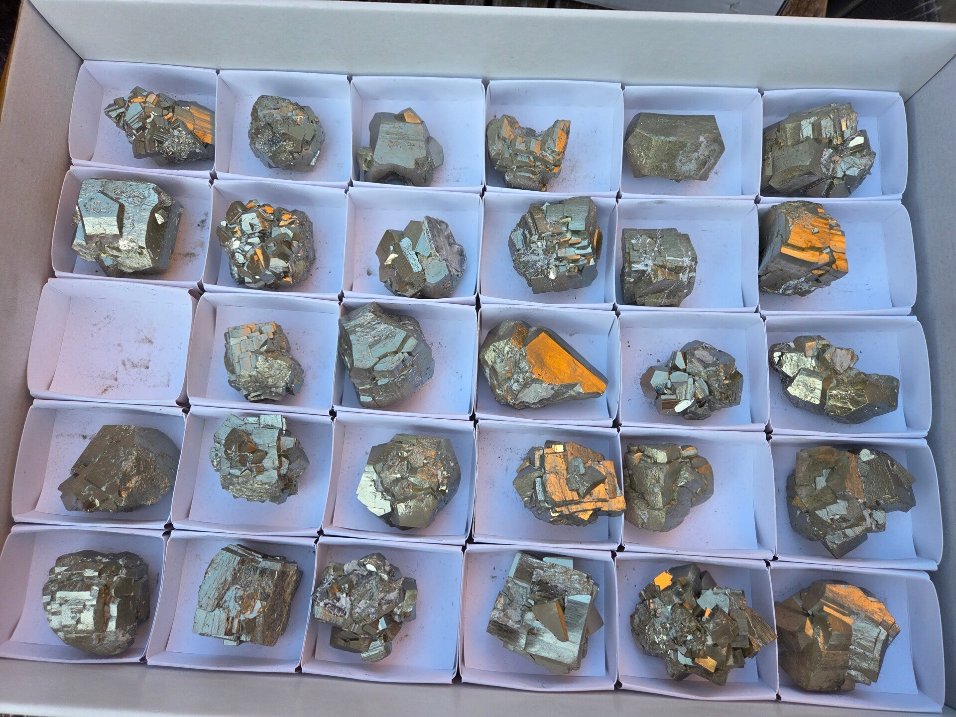 stukken pyriet uit ambasaguas in spanje van circa 3 bij 7 cm groot.