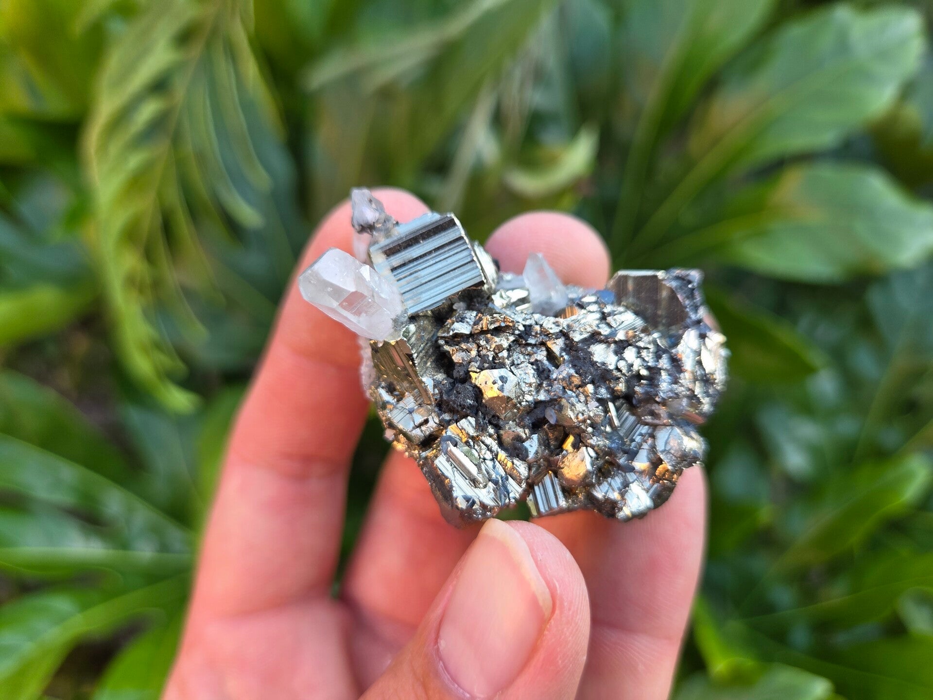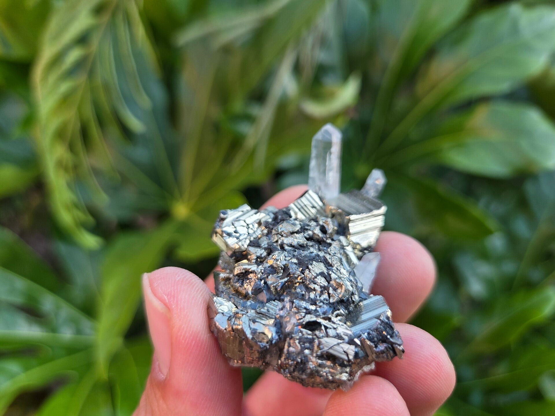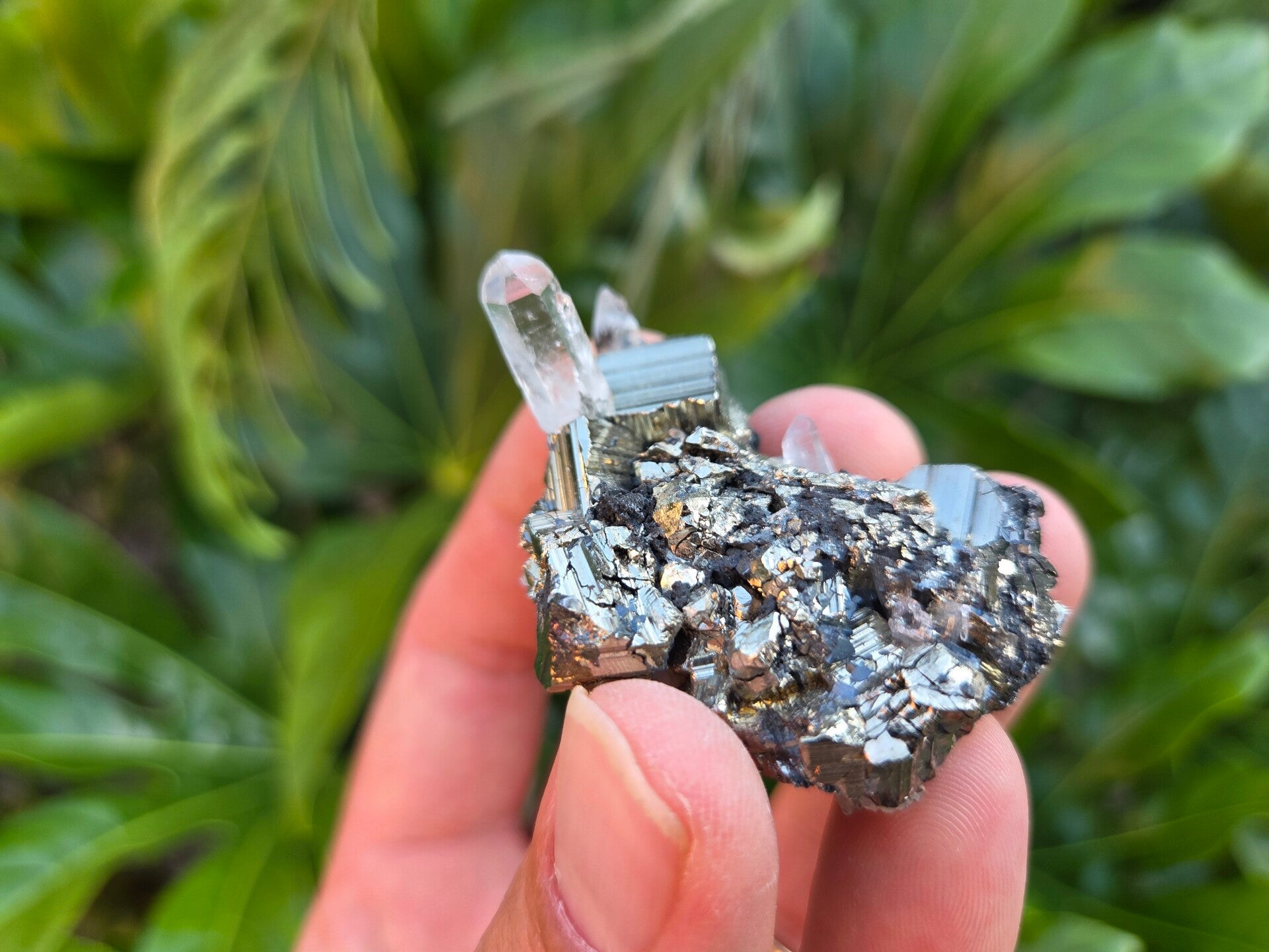 een stuk kwarts met regenboog met kwarts uit de kalamantan mijn in indonesië van 5,2 cm bij 2,5 cm bij 4 cm
