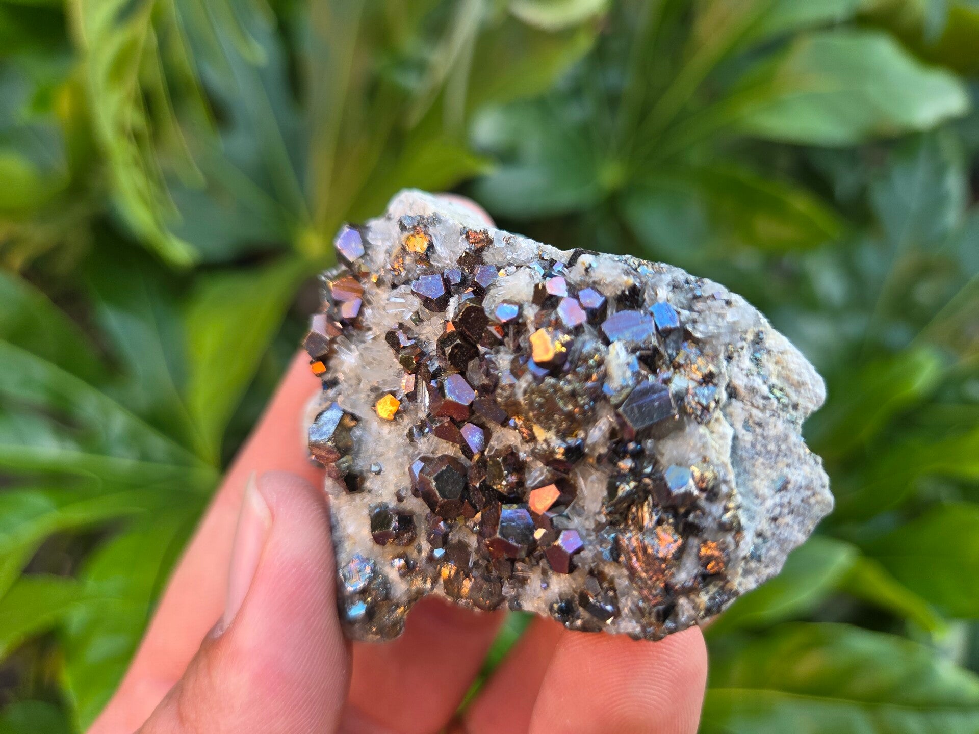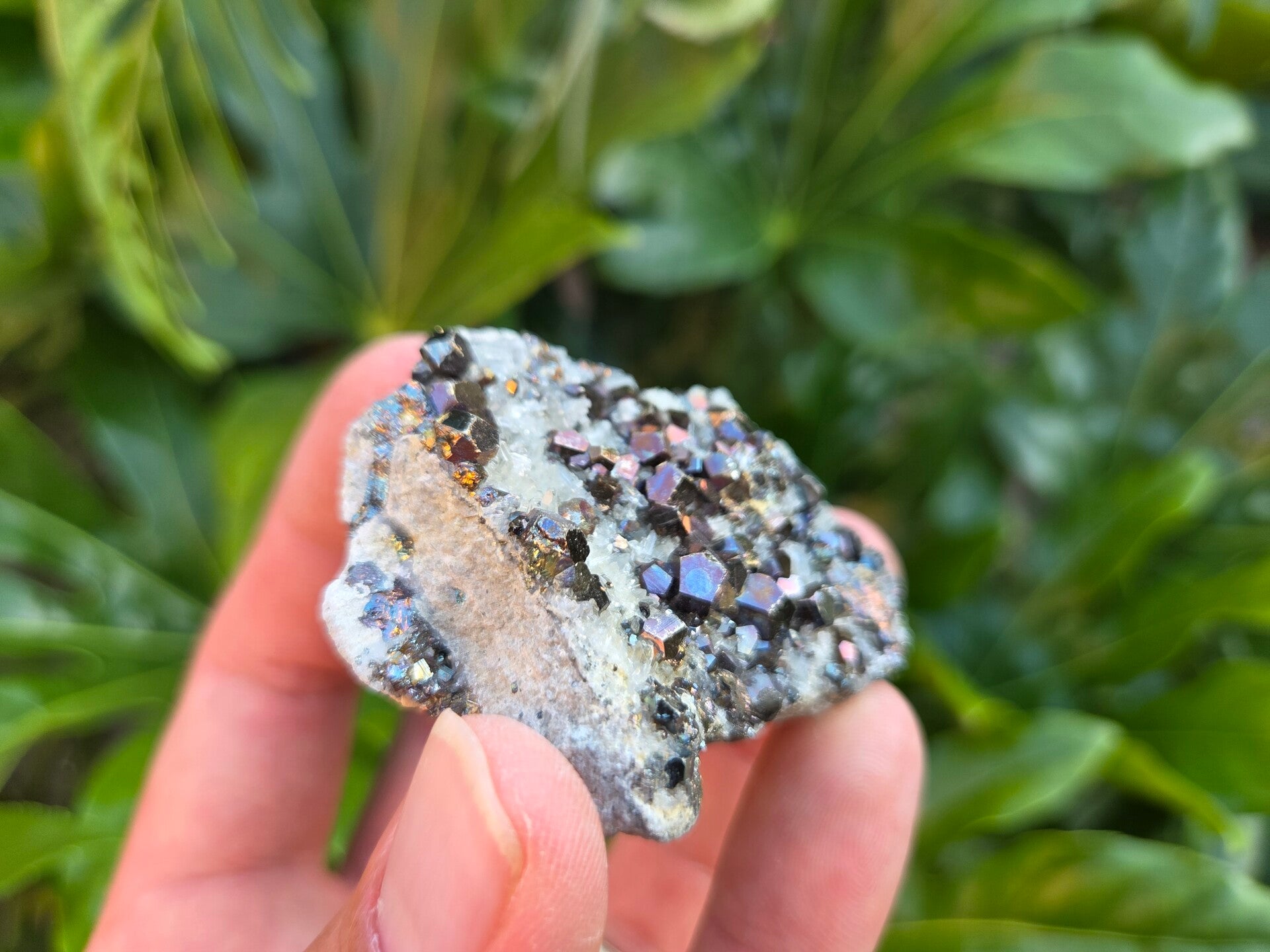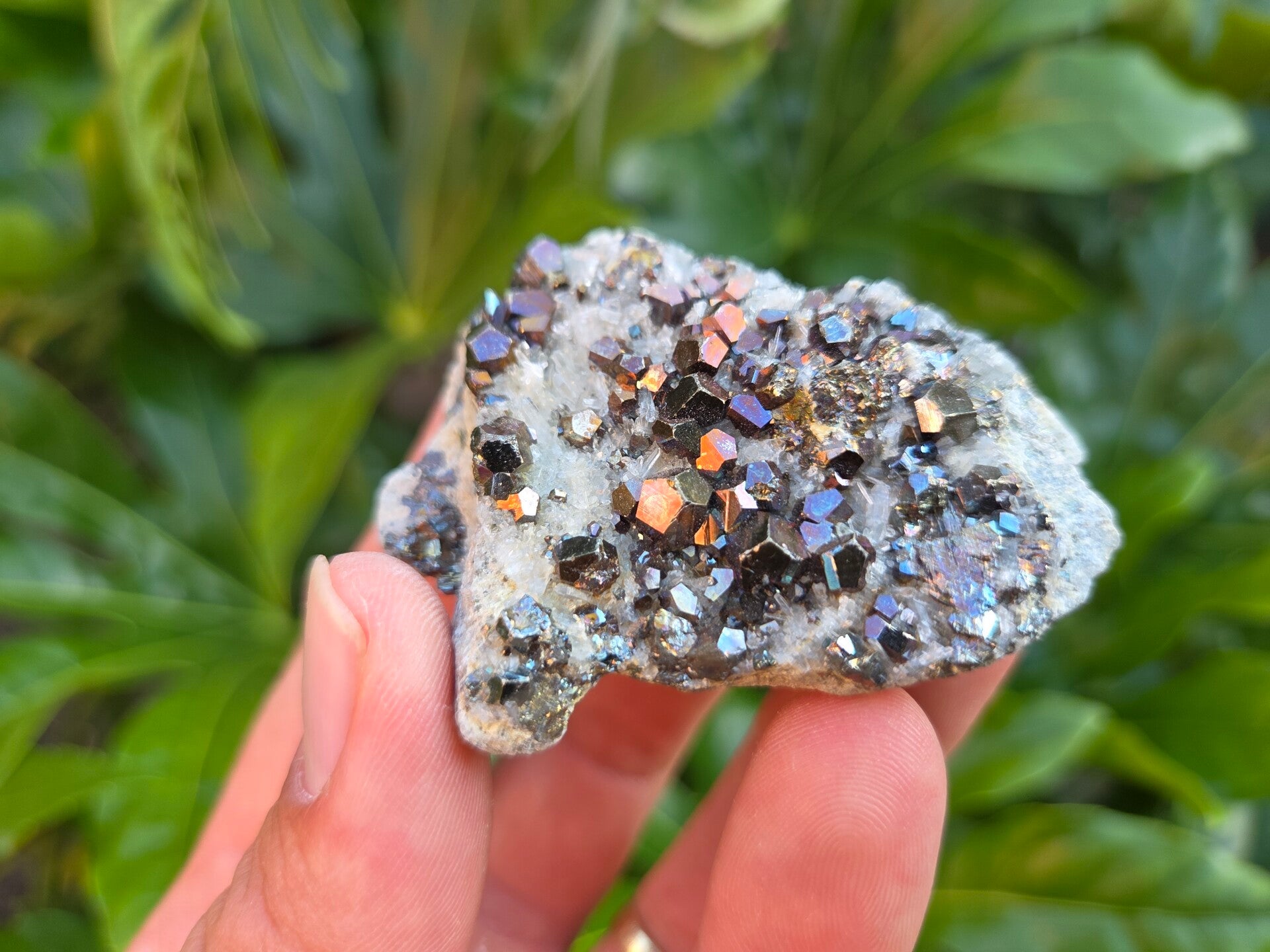 een stuk kwarts met regenboog met kwarts uit de kalamantan mijn in indonesië van 6,4 cm bij 5 cm bij 2,4 cm