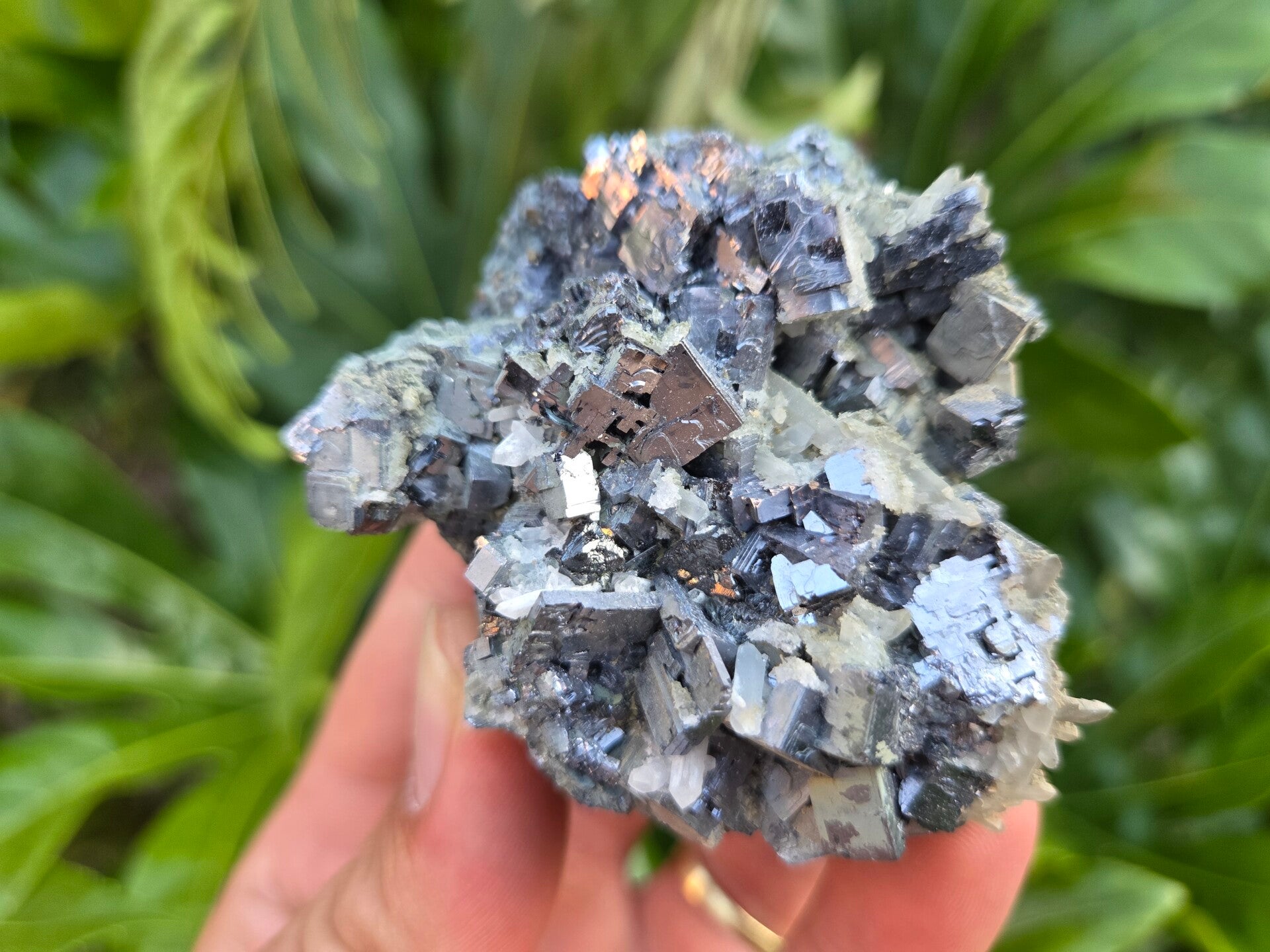 een stuk galeniet uit madan, bulgarije van 6,6 cmb ij 6,4 cm bij 4,3 cm