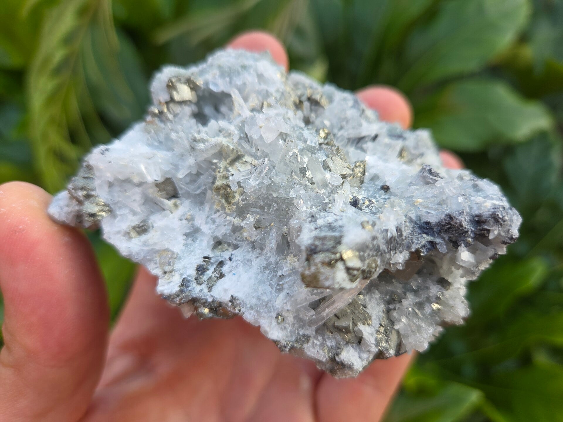een stuk galeniet, kwarts en pyriet uit madan, bulgarije van 9,8 cm bij 6,2 cm bij 5 cm