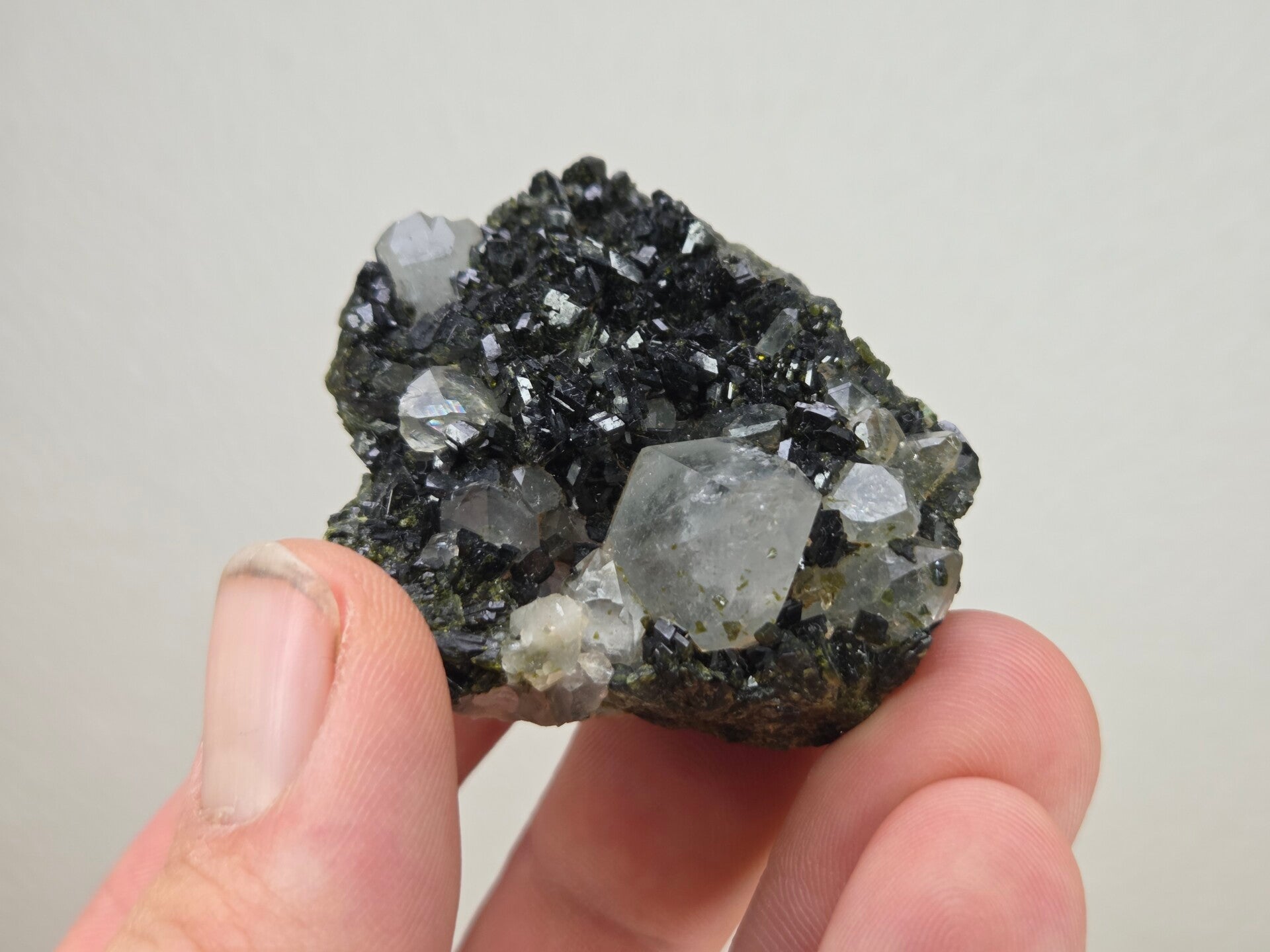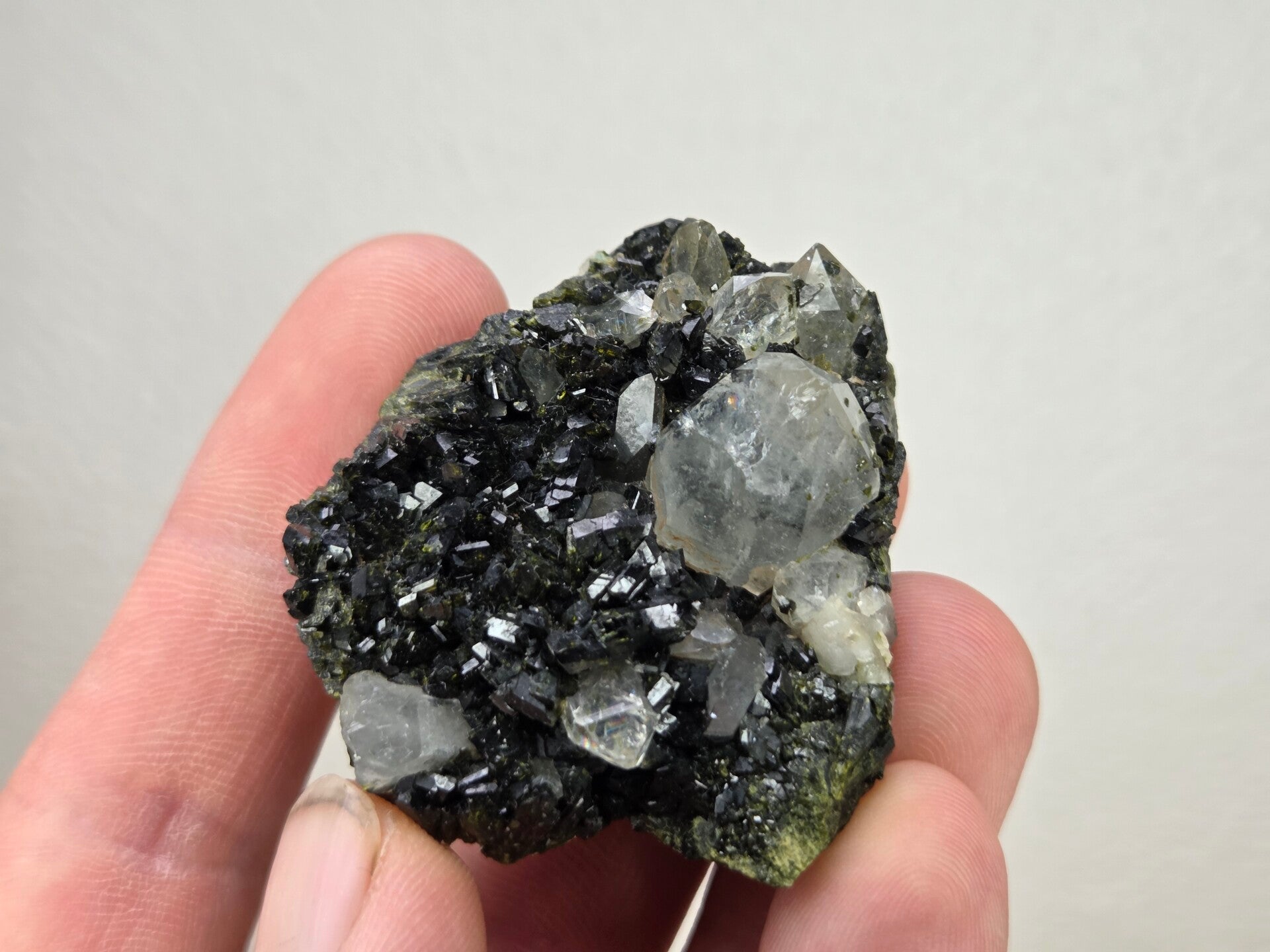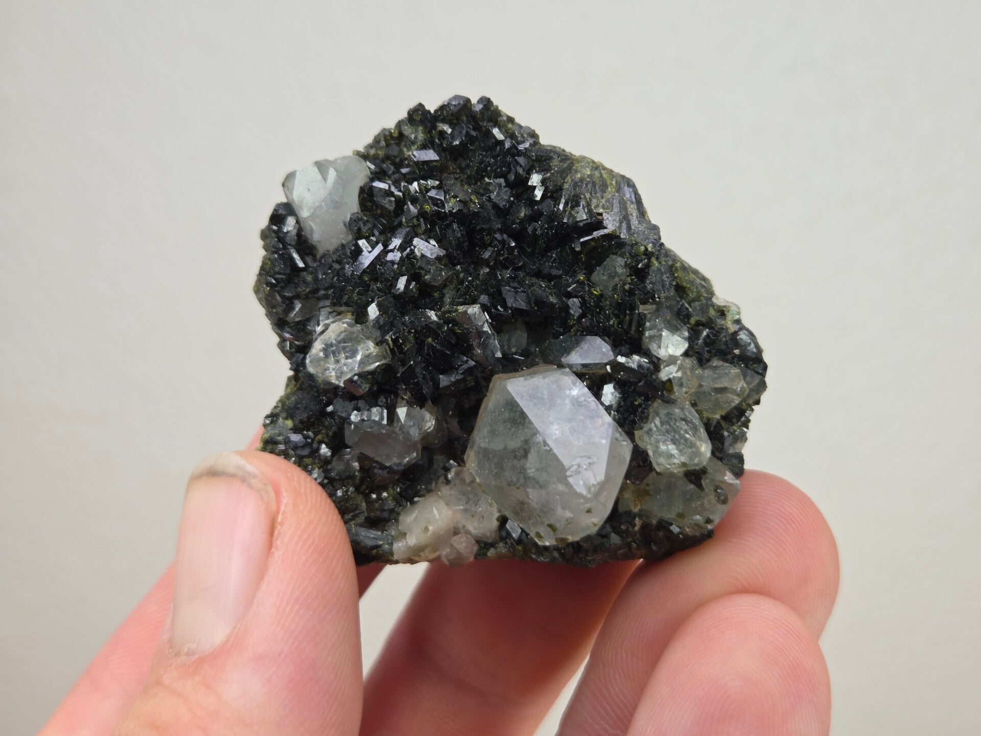 een stuk epidoot met kwarts uit hakkari, turkije van 3,5 cm bij 4,7 cm bij 1,2 cm