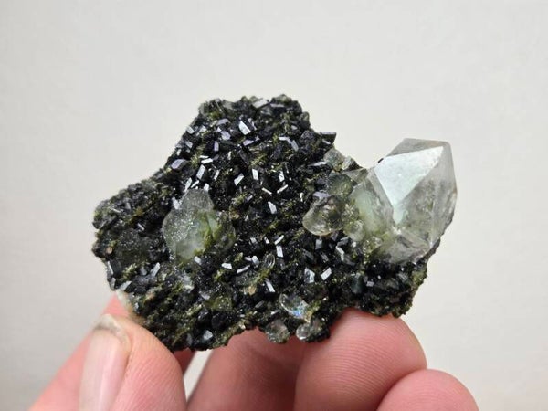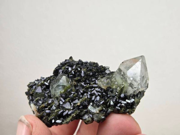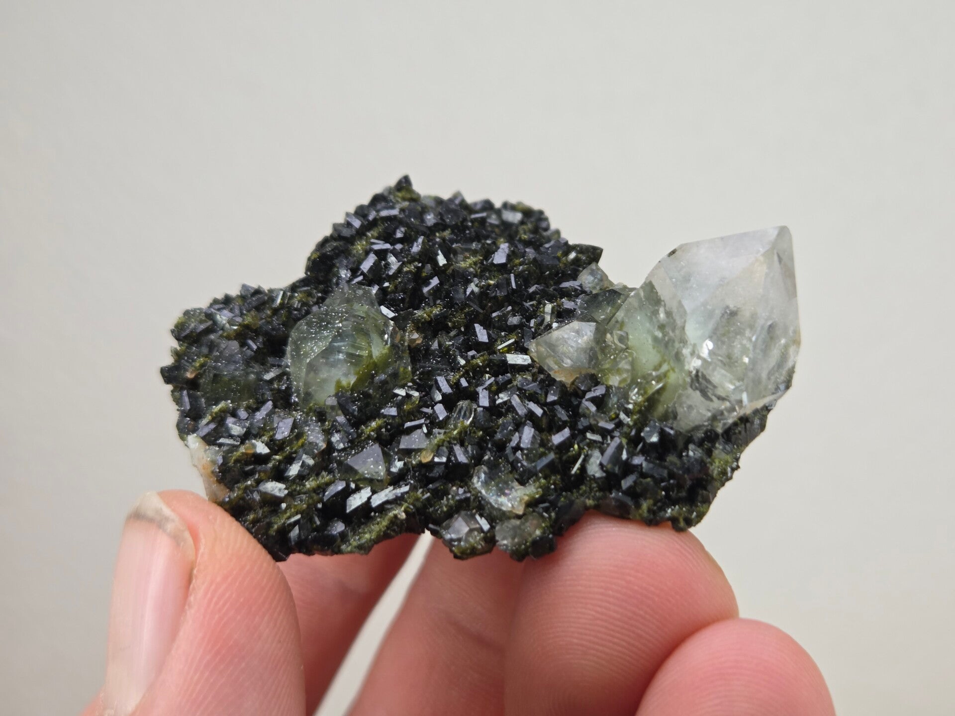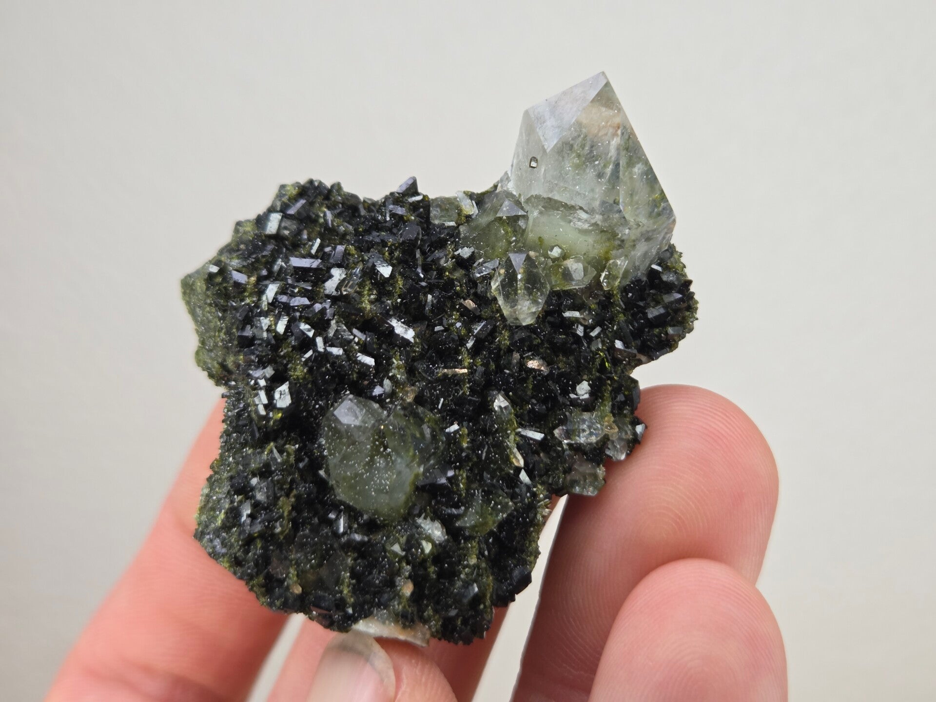 een stuk epidoot met kwarts uit hakkari, turkije van 5 cm bij 4,8 cm bij 3 cm