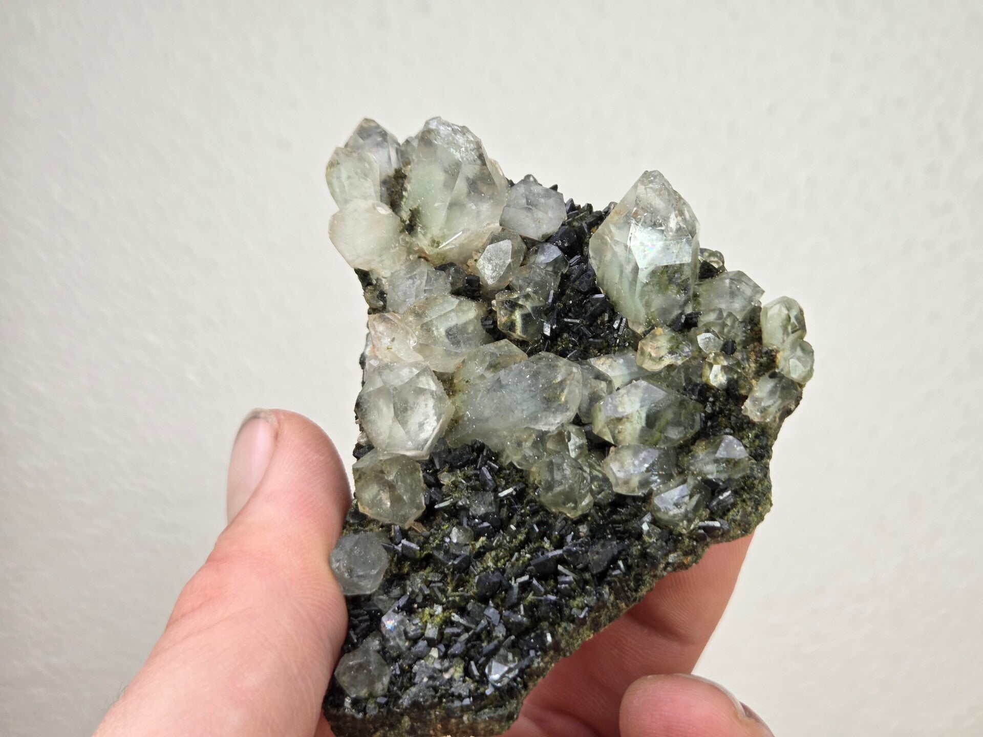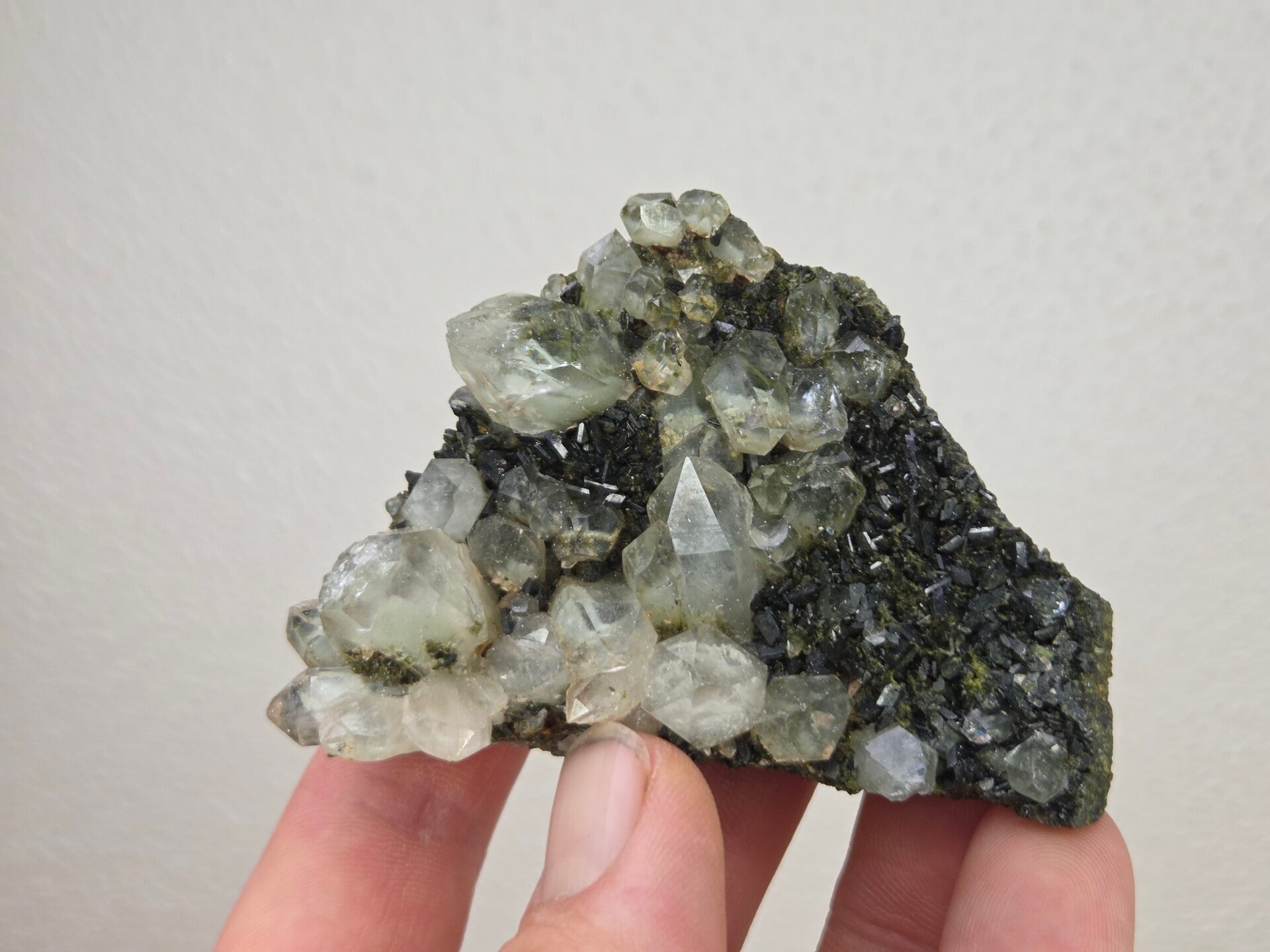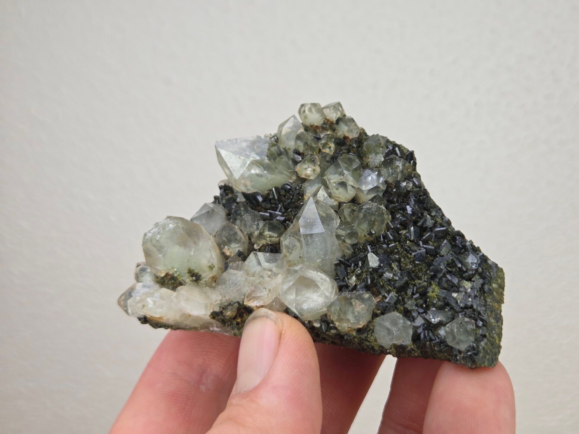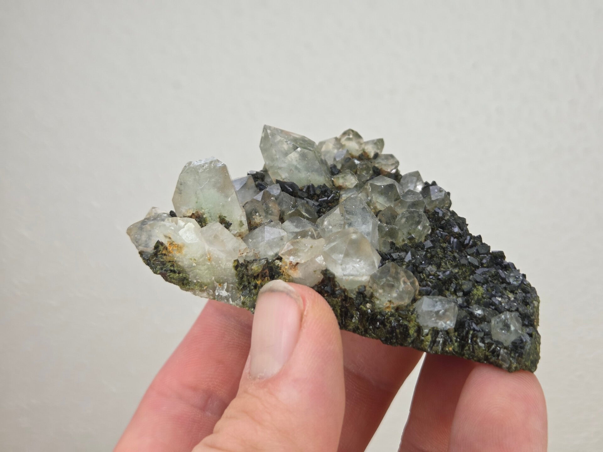 een stuk epidoot met kwarts uit hakkari, turkije van 7,7 cm bij 5,7 cm bij 3 cm
