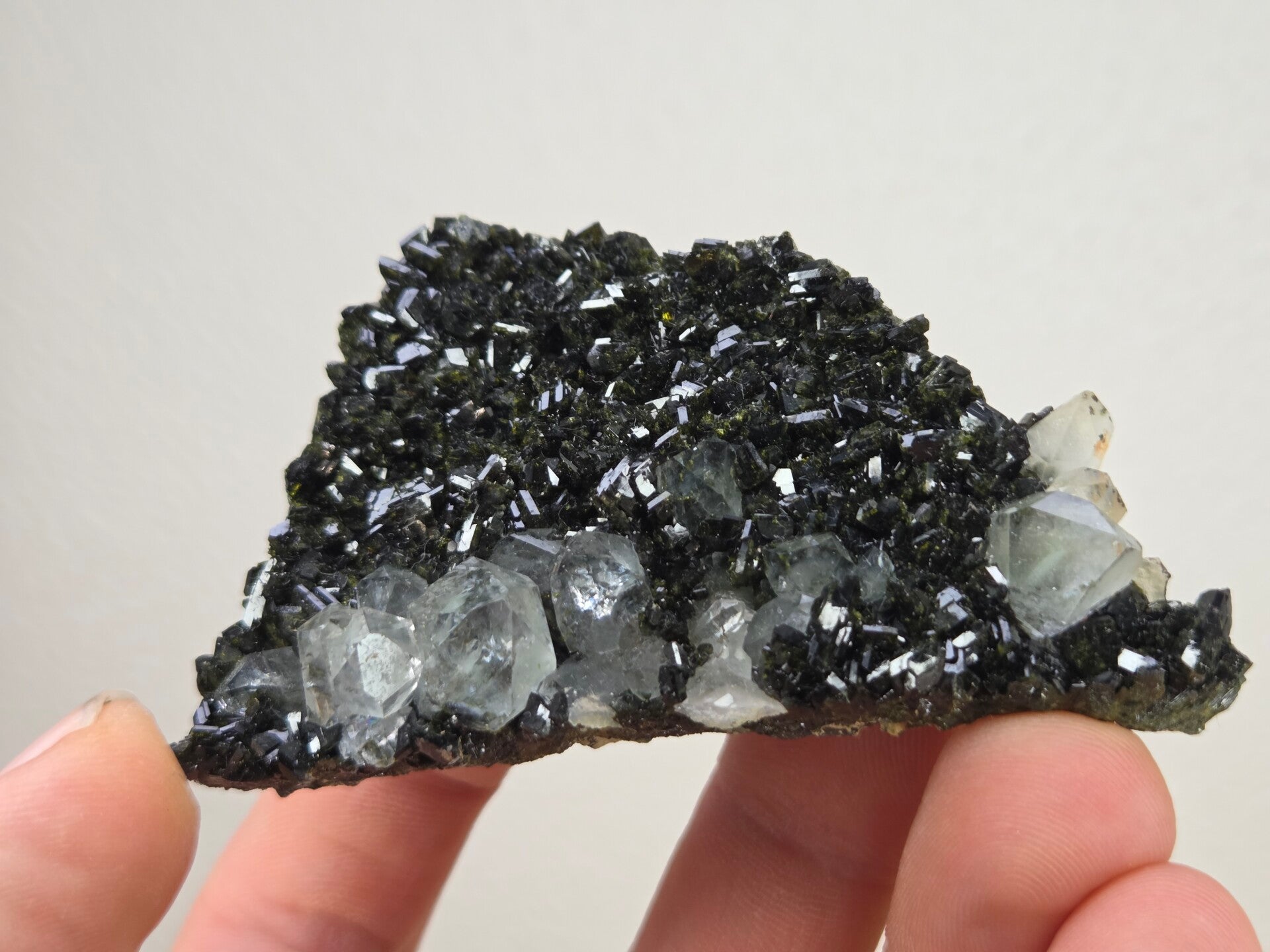 een stuk epidoot met kwarts uit hakkari, turkije van 7,6 cm bij 4,5 cm bij 2,7 cm