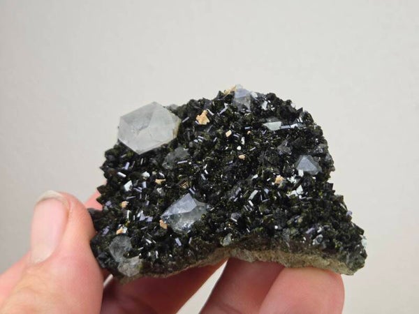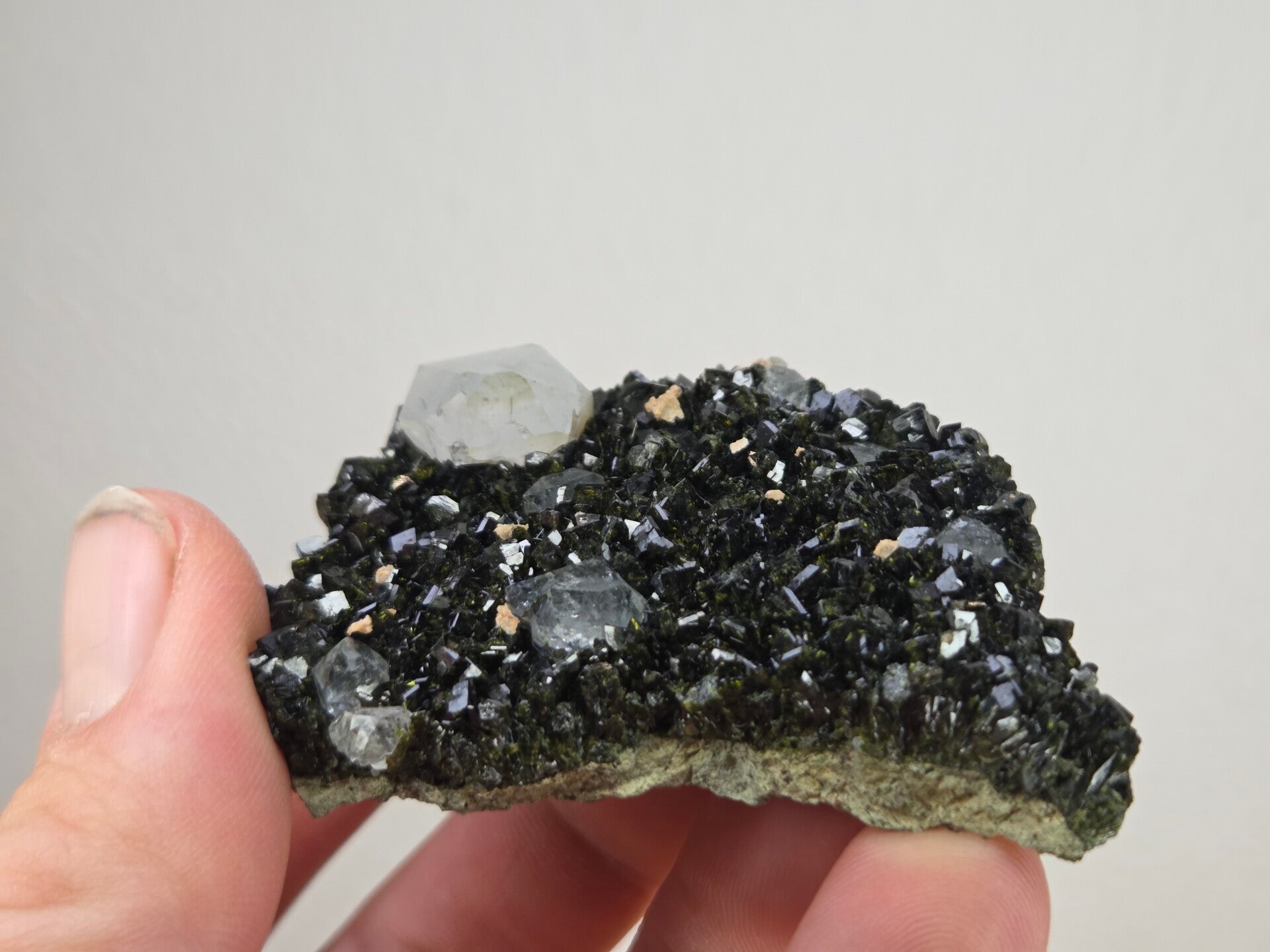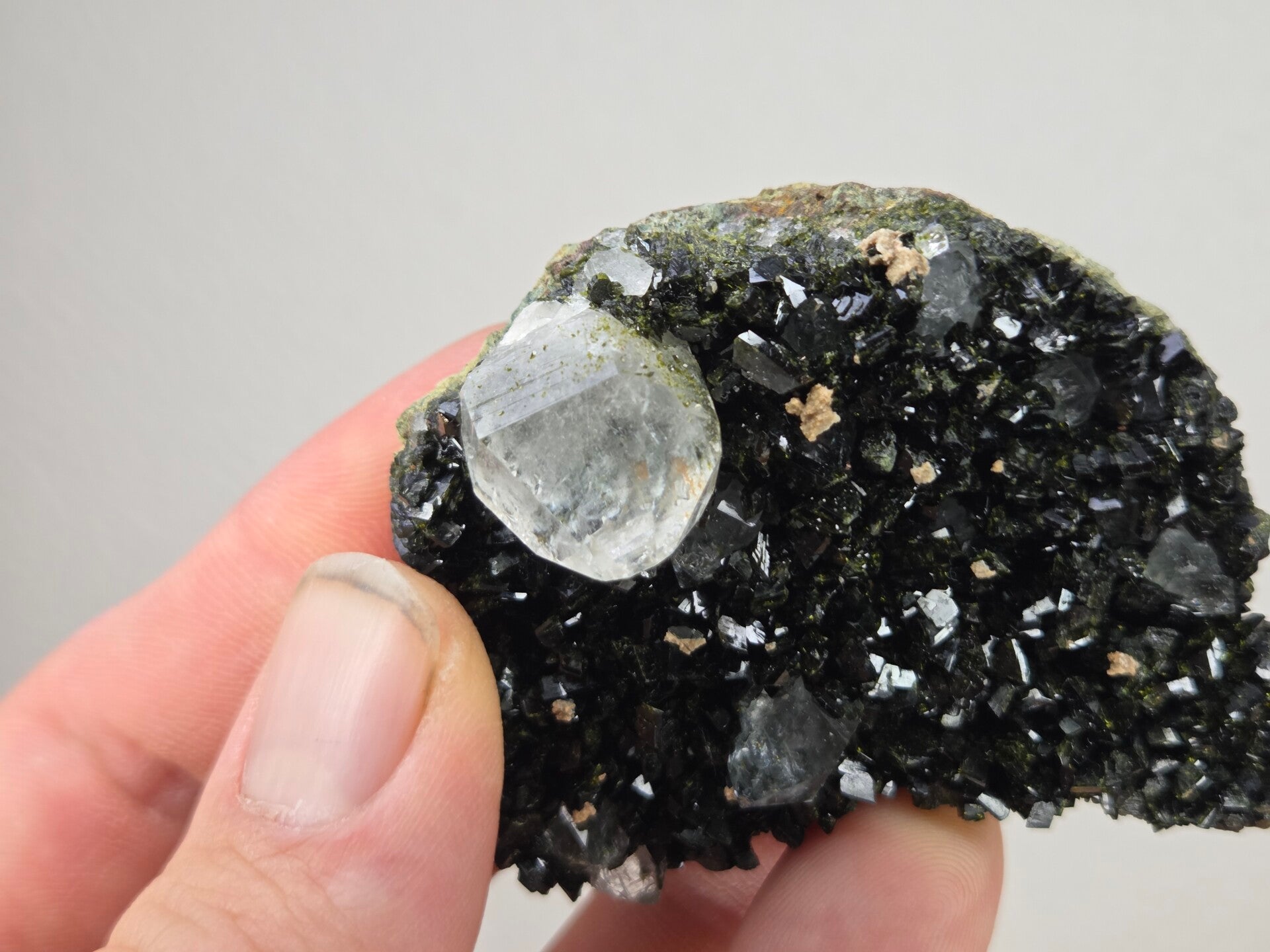 een stuk epidoot met kwarts uit hakkari, turkije van 5,8 cm bij 5,3 cm bij 2 cm