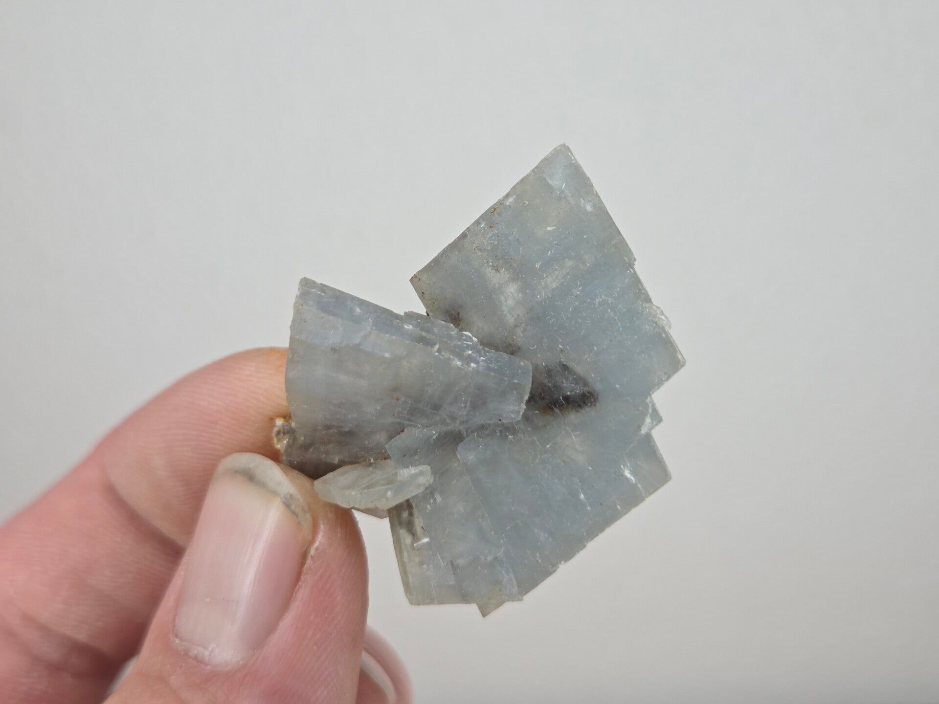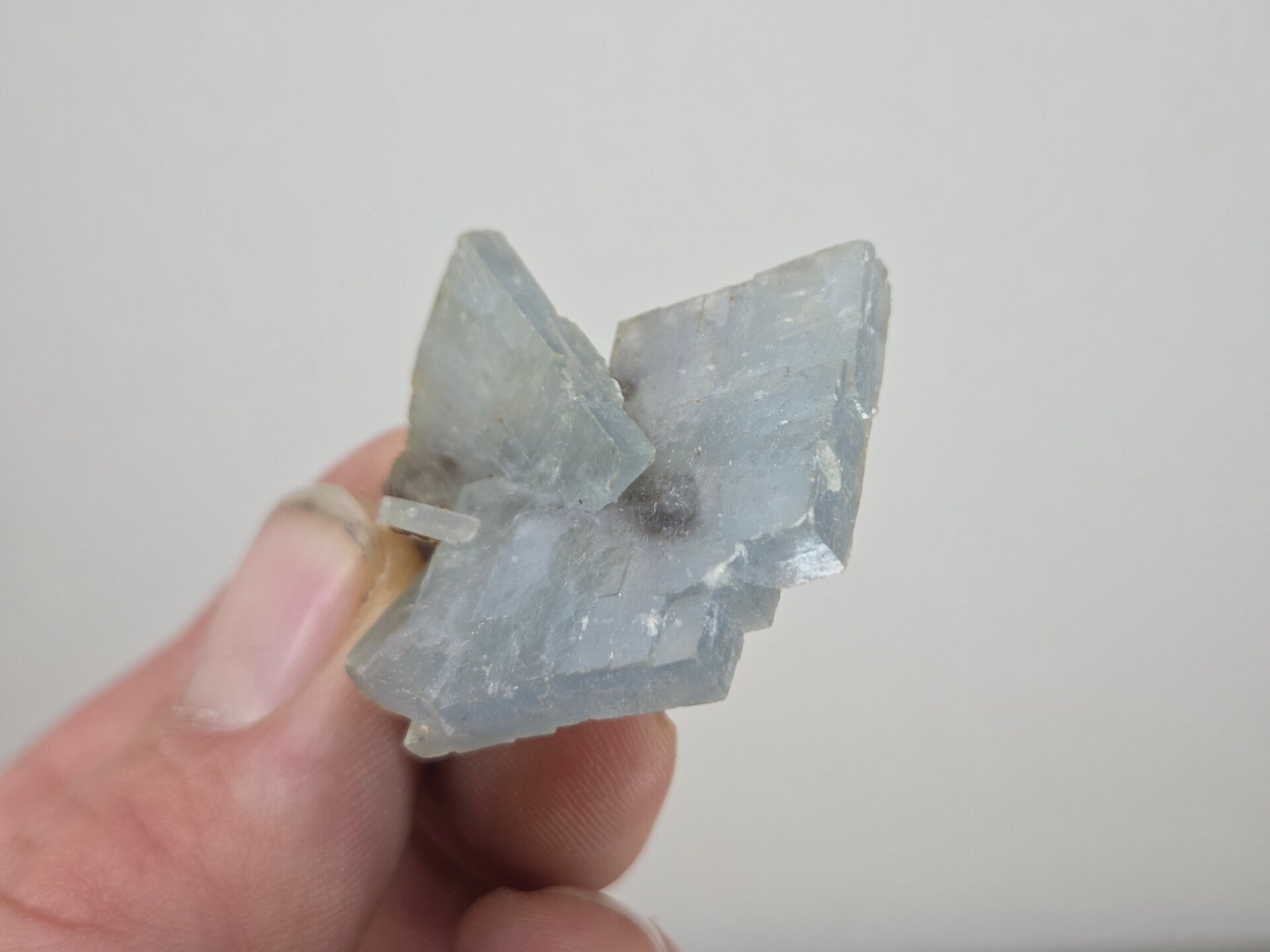 een stukje fel blauwe bariet uit de teresita mijn in la union, spanje van 3,5 cm bij 3,2 cm bij 1,3 cm