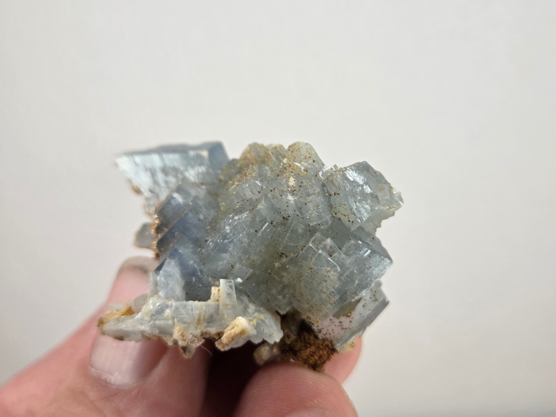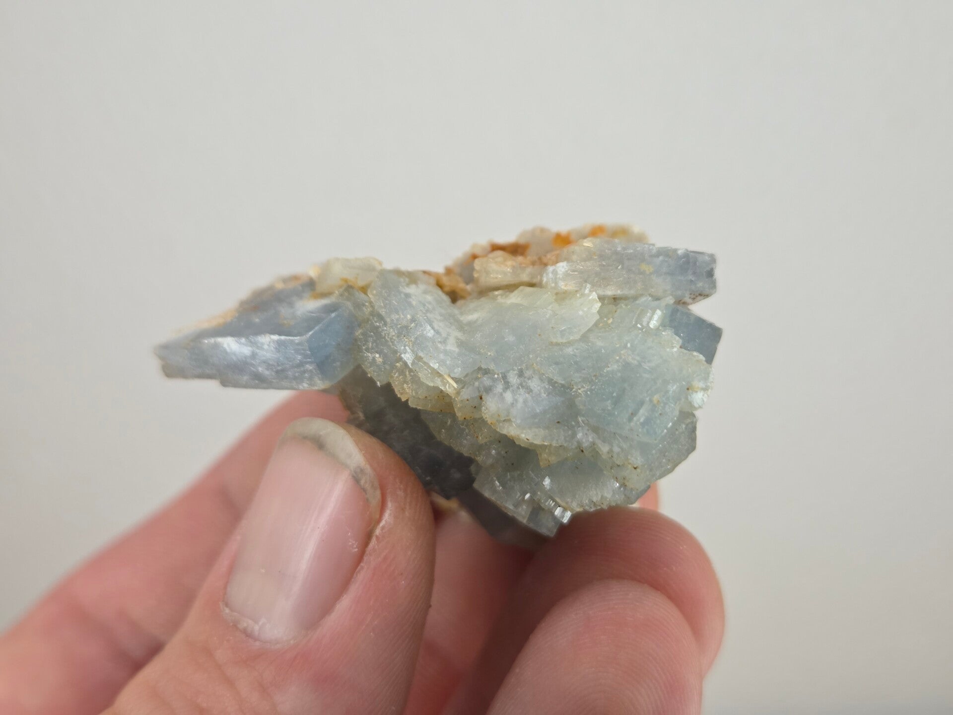 een stukje fel blauwe bariet uit de teresita mijn in la union, spanje van 4,7 cm bij 3,5 cm bij 3,1 cm