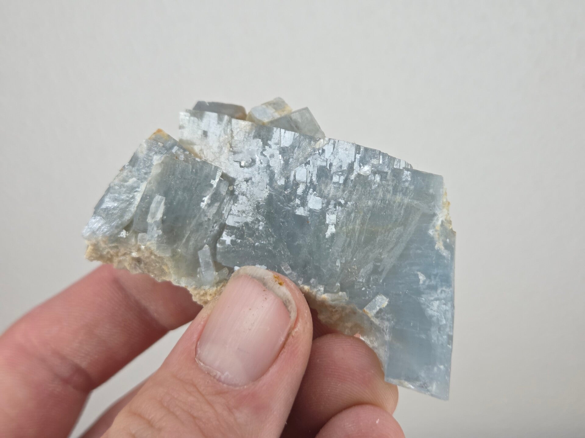een stukje fel blauwe bariet uit de teresita mijn in la union, spanje van 6 cm bij 4,6 cm bij 2,7 cm