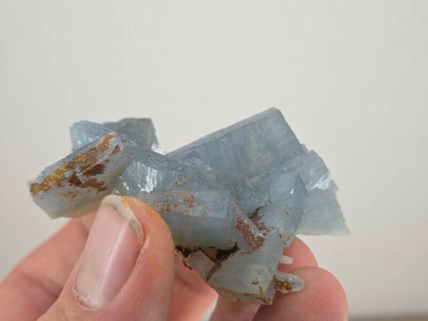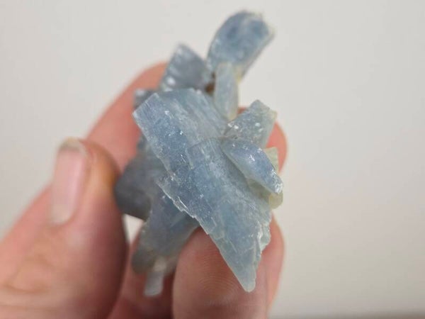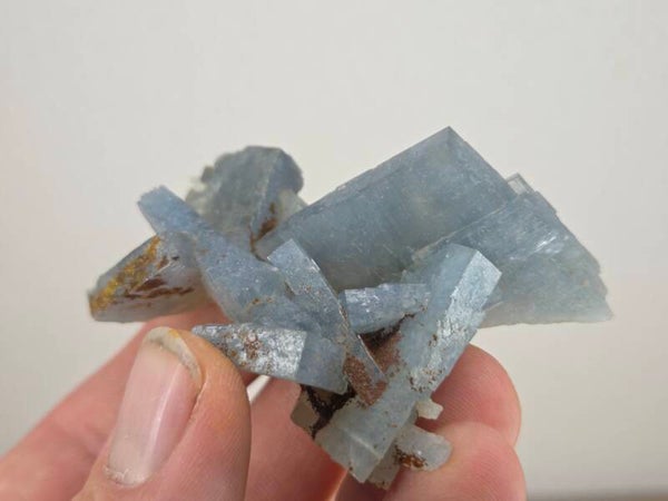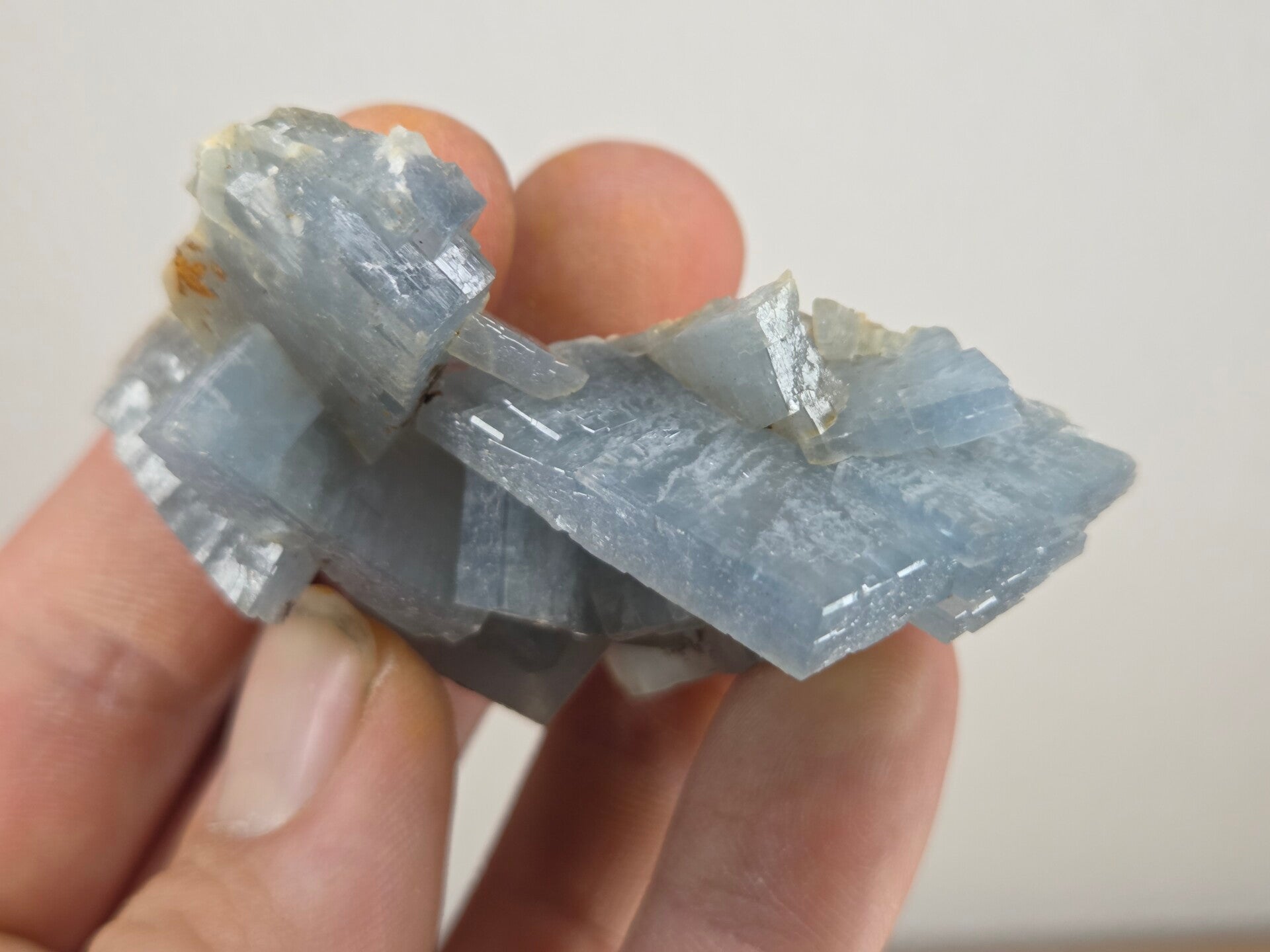 een stukje fel blauwe bariet uit de teresita mijn in la union, spanje van 6,8 cm bij 5,1 cm bij 2,8 cm