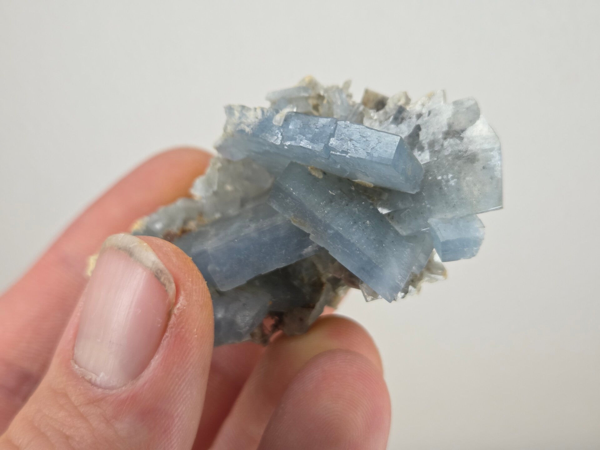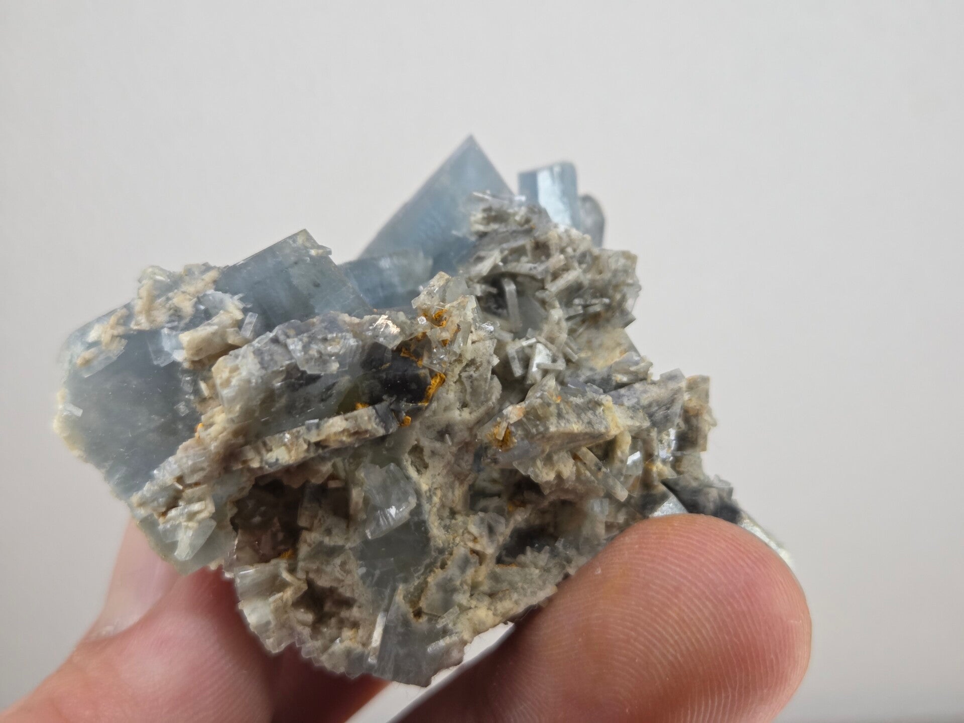 een stukje fel blauwe bariet uit de teresita mijn in la union, spanje van 7,4 cm bij 5,8 cm bij 4,1 cm