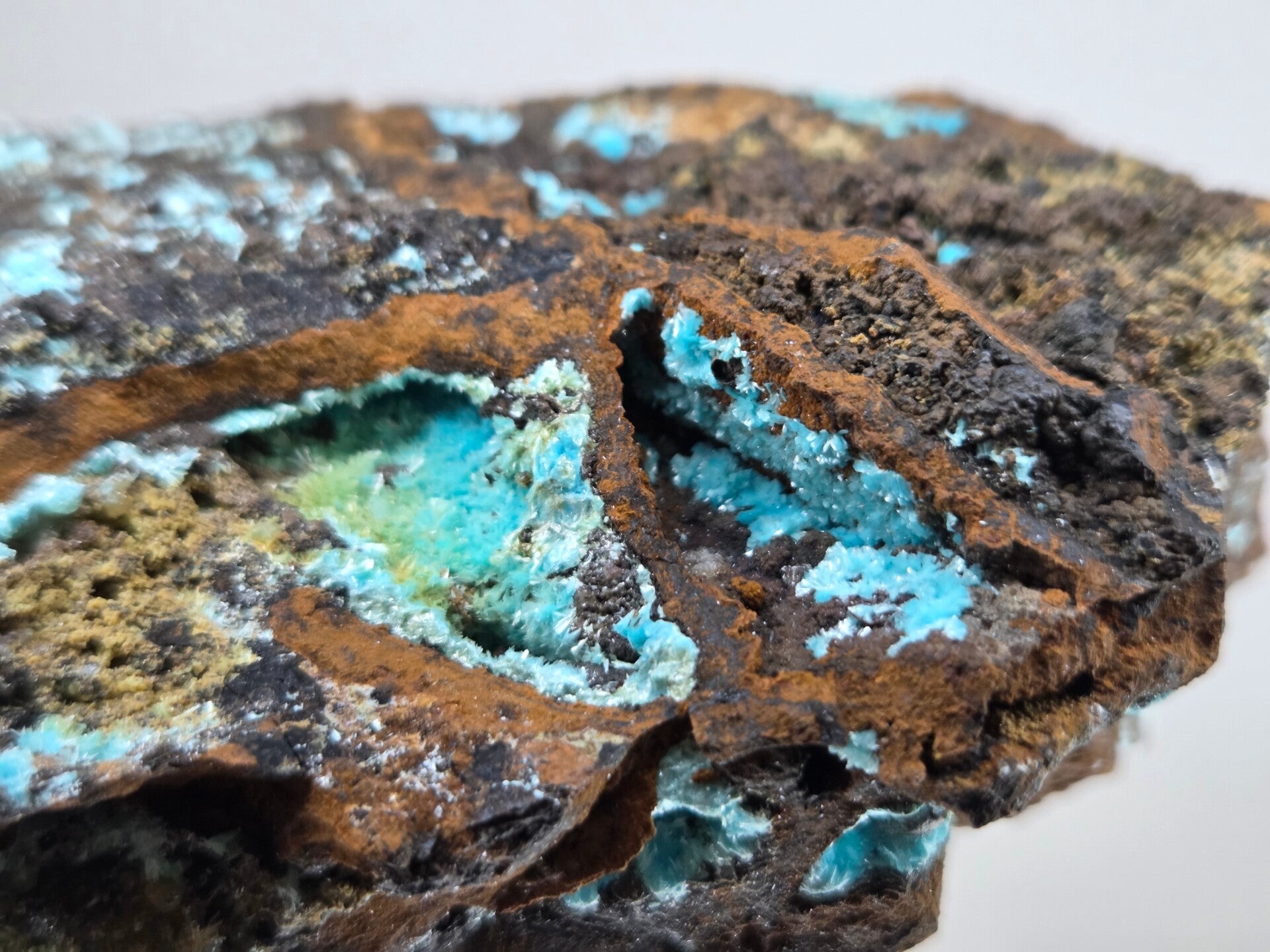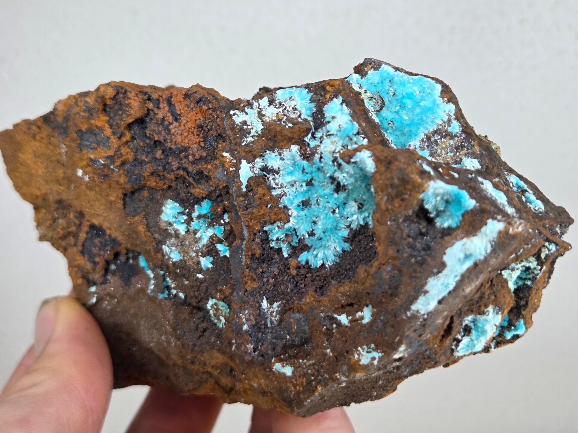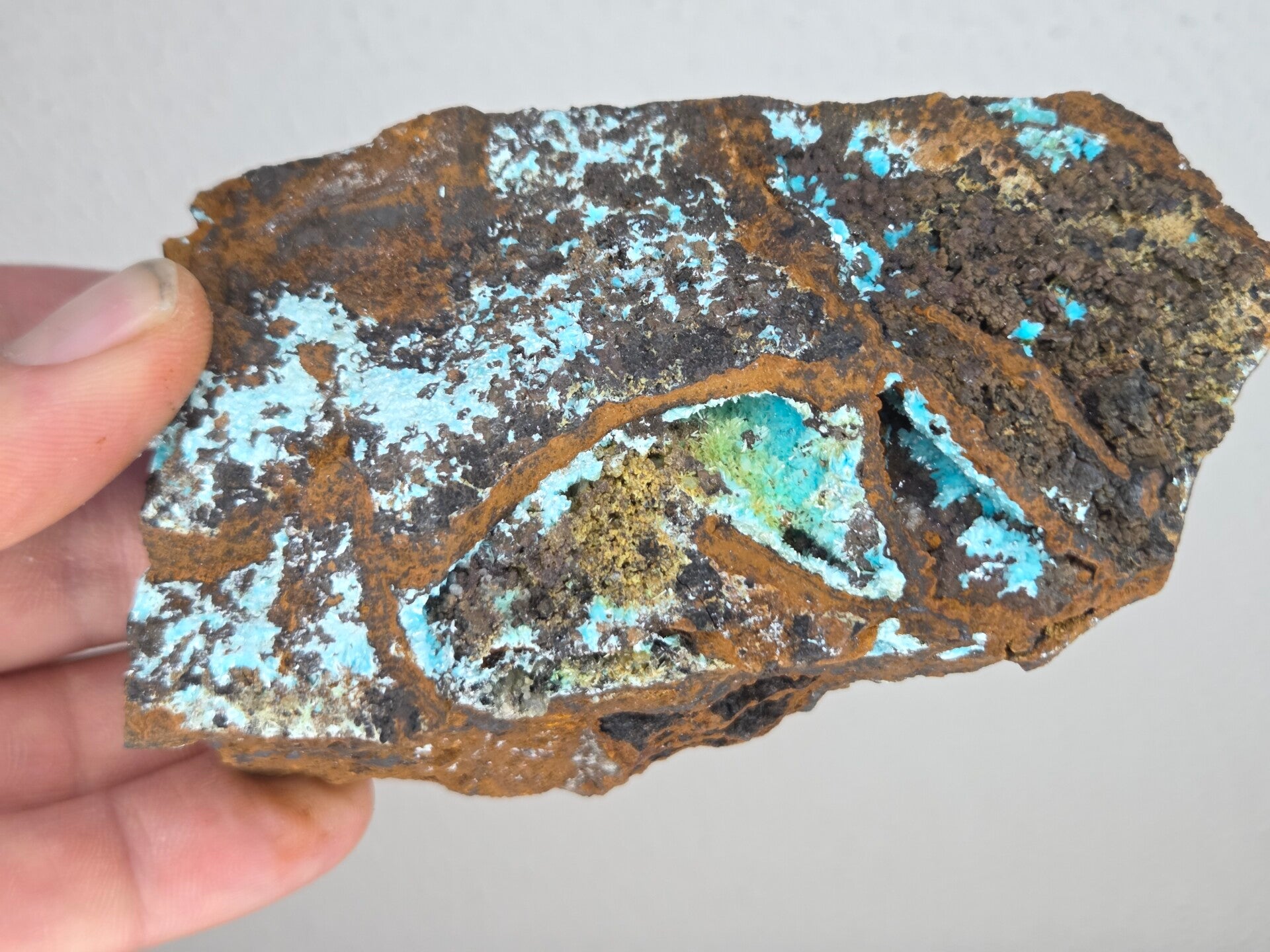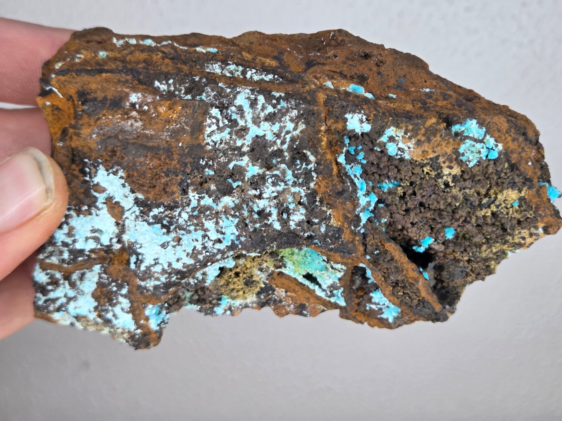 een stuk matrix met auricalciet en goethiet uit uludag bursa, turkije van 11,2 cm bij 6,5 cm bij 4,2 cm