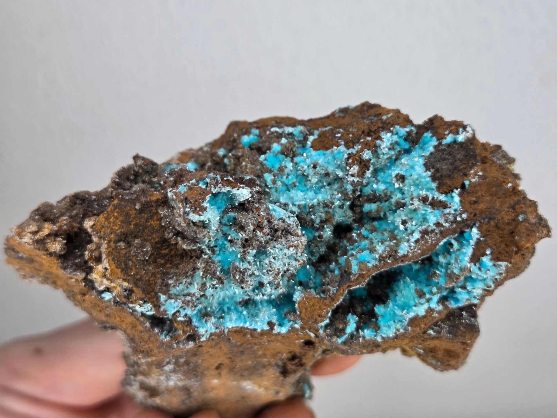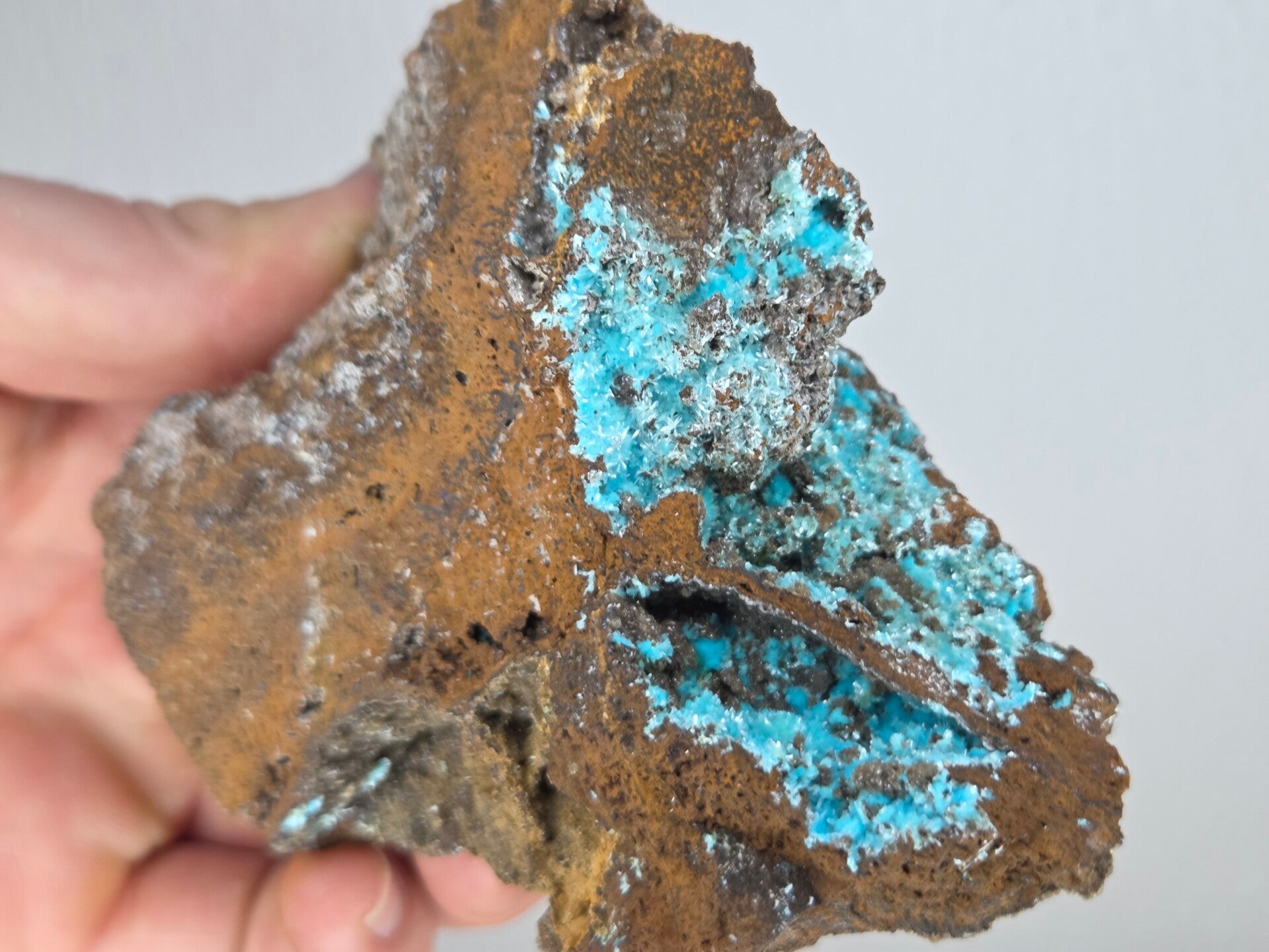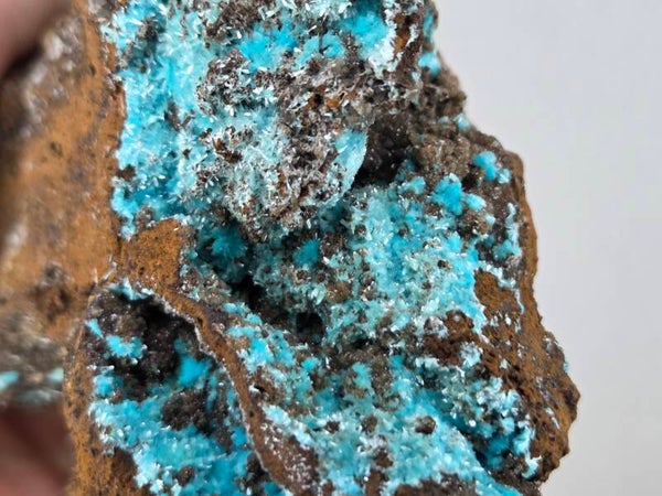 een stuk matrix met auricalciet en goethiet uit uludag bursa, turkije van 9,5 cm bij 9,1 cm bij 5,5 cm