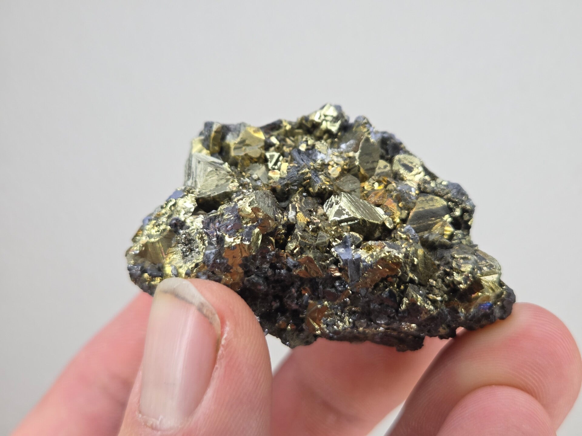 een stukje pyriet uit madan, bulgarije van 5 cm bij 3,1 cm bij 2,1 cm