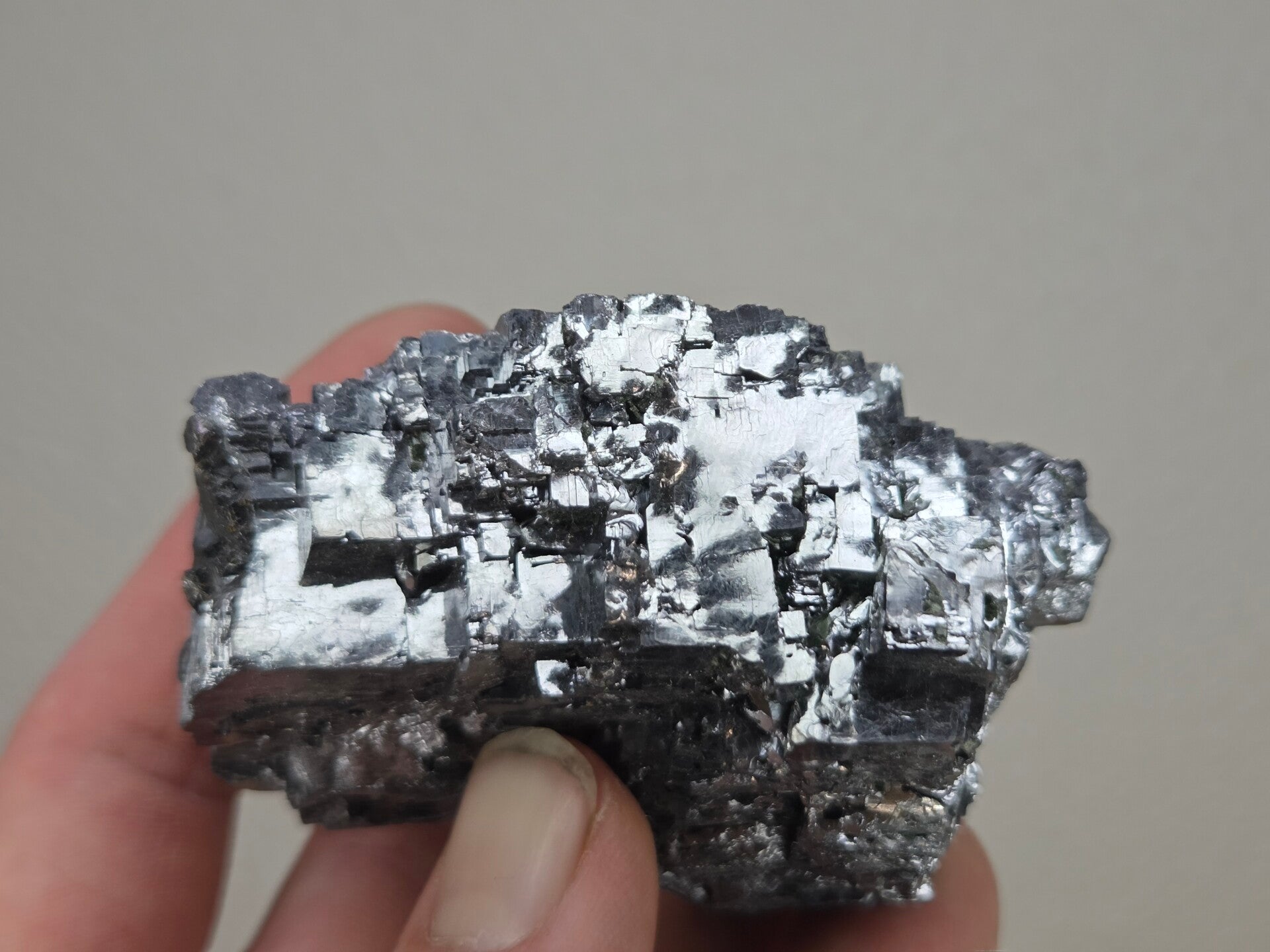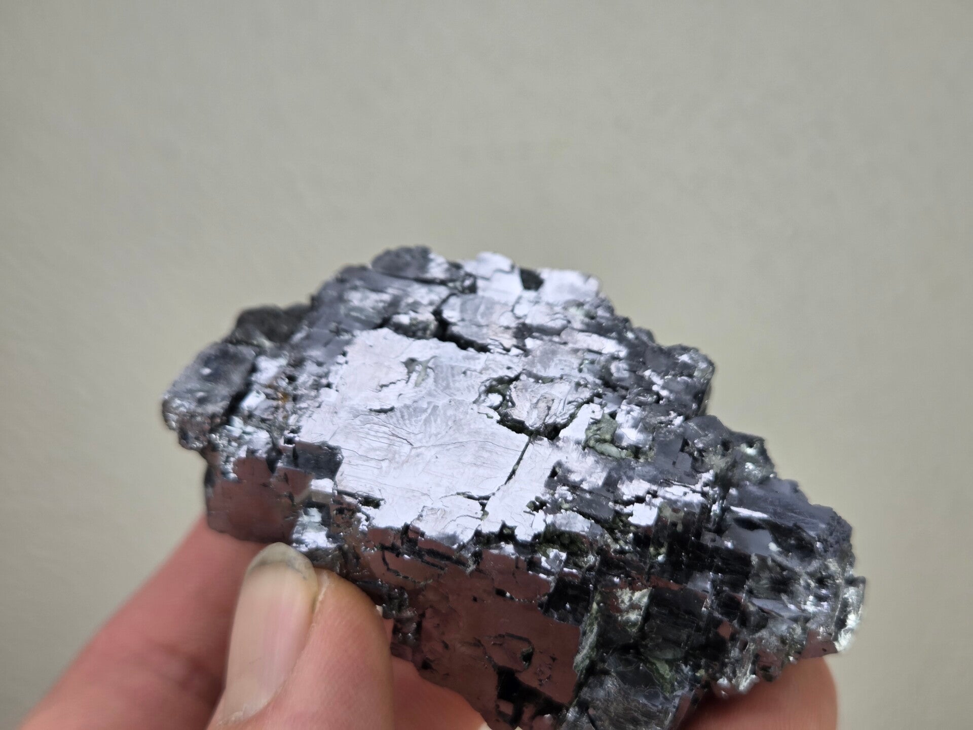 een stuk glanzende galeniet uit madan, bulgarije van 7 cm bij 5,4 cm bij 4,1 cm