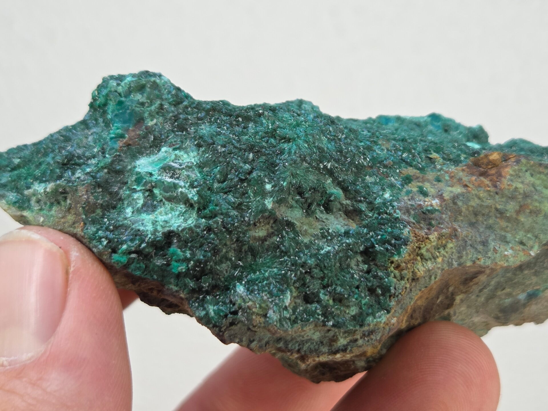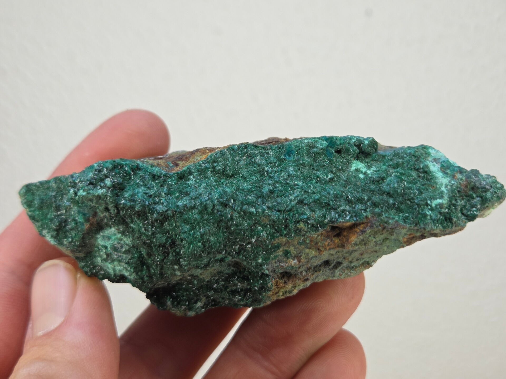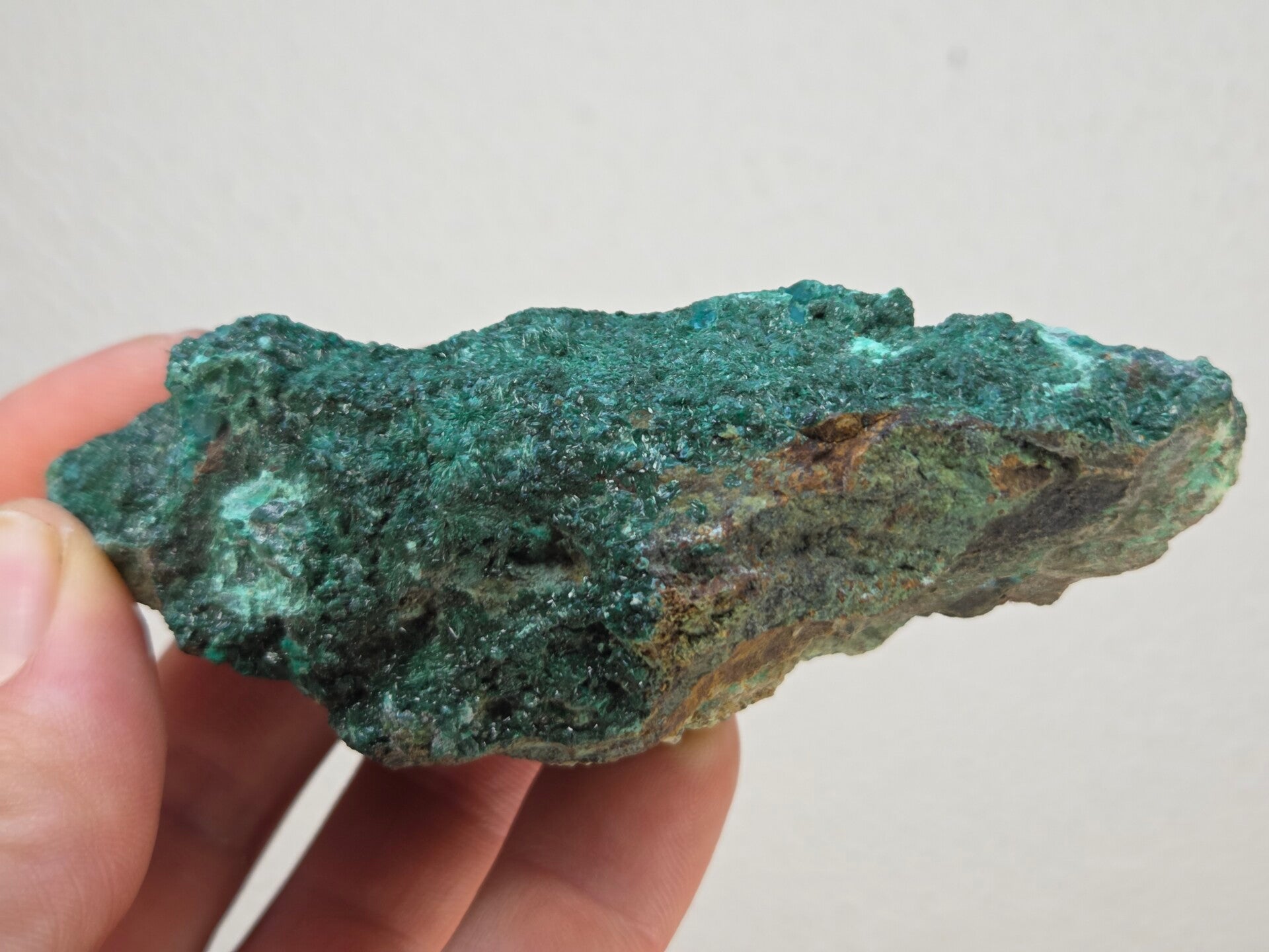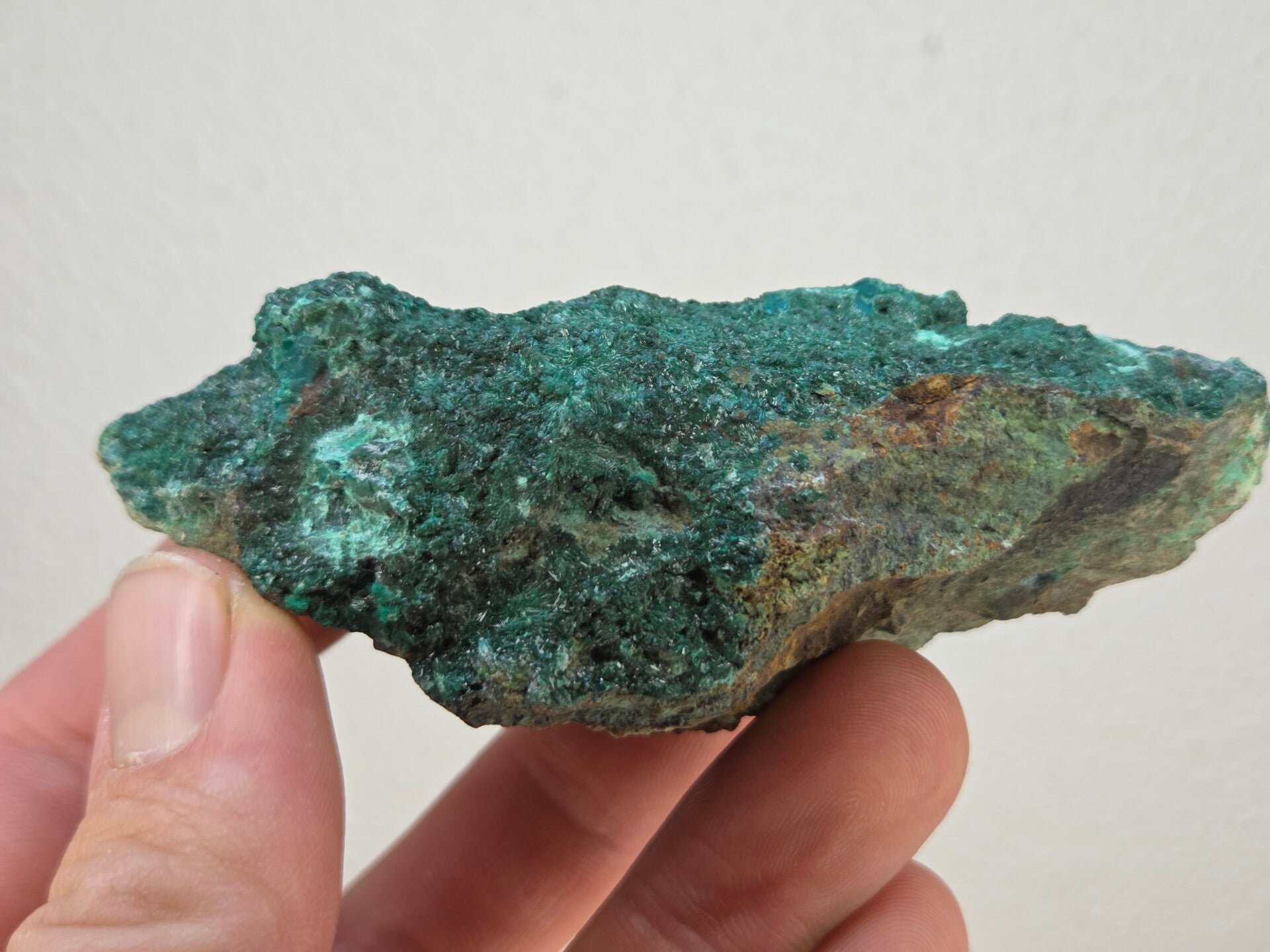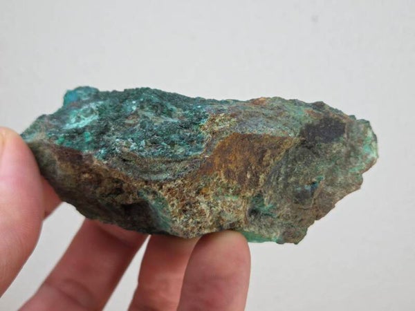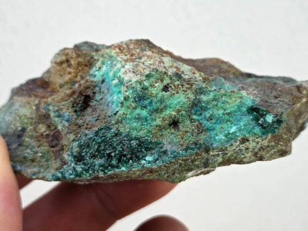 een stuk donker groene atacamiet met mooie kristallen uit de atacama woestijn, chili van 9,8 cm bij 4,4 cm bij 4 cm