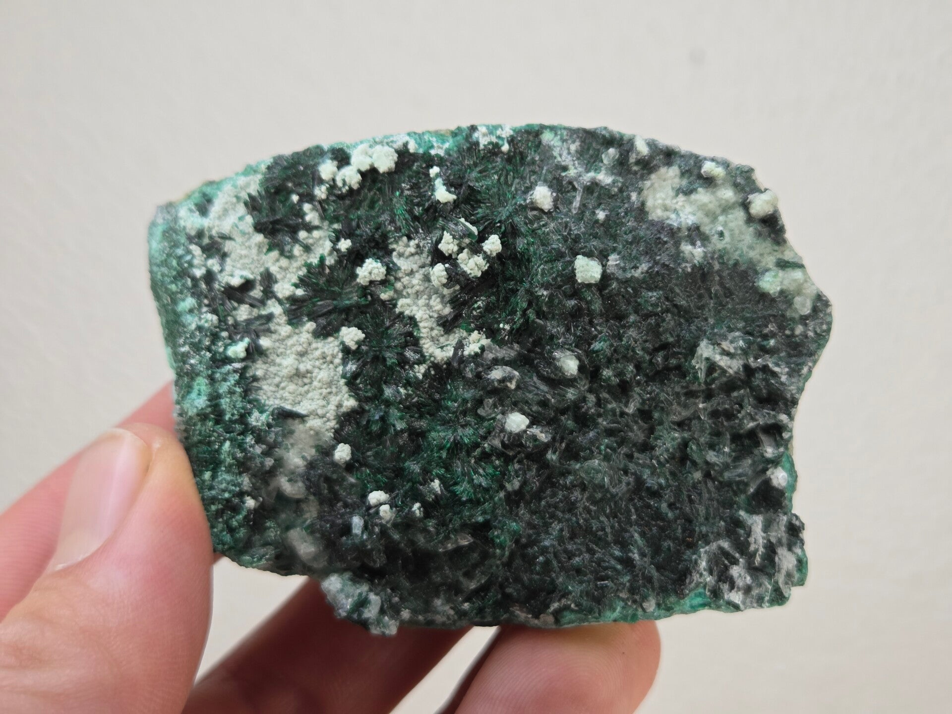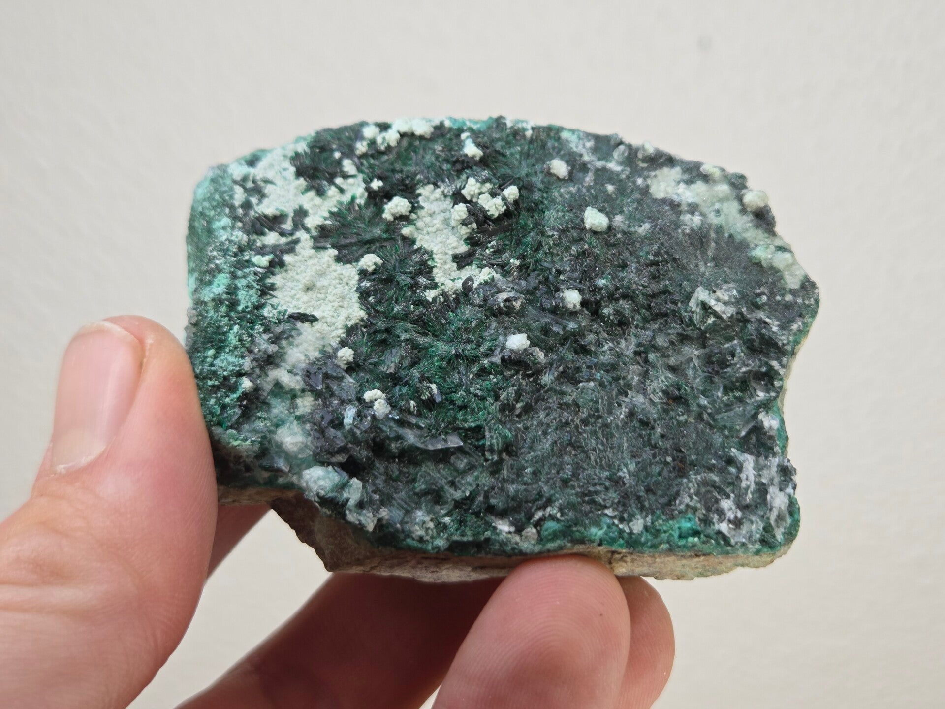 een stuk donker groene atacamiet met mooie kristallen uit de atacama woestijn, chili van 7 cm bij 5,1 cm bij 2,1 cm
