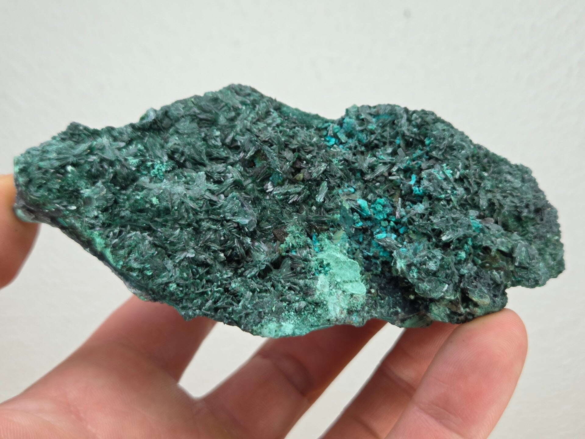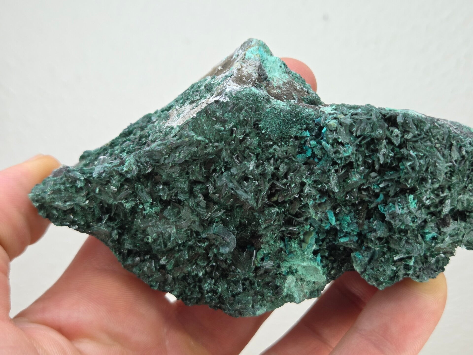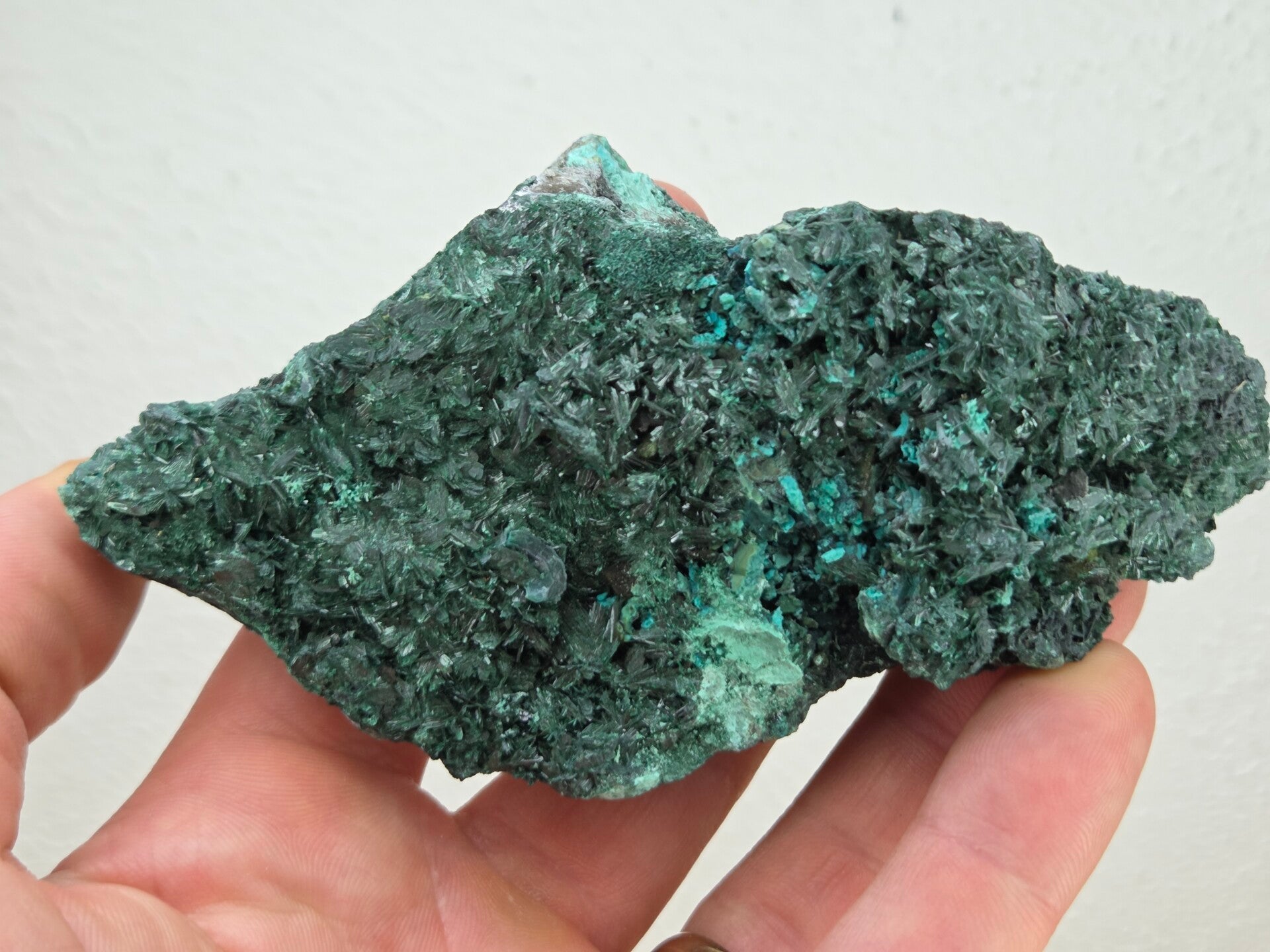 een stuk donker groene atacamiet met mooie kristallen uit de atacama woestijn, chili van 11,3 cm bij 6,7 cm bij 3,6 cm