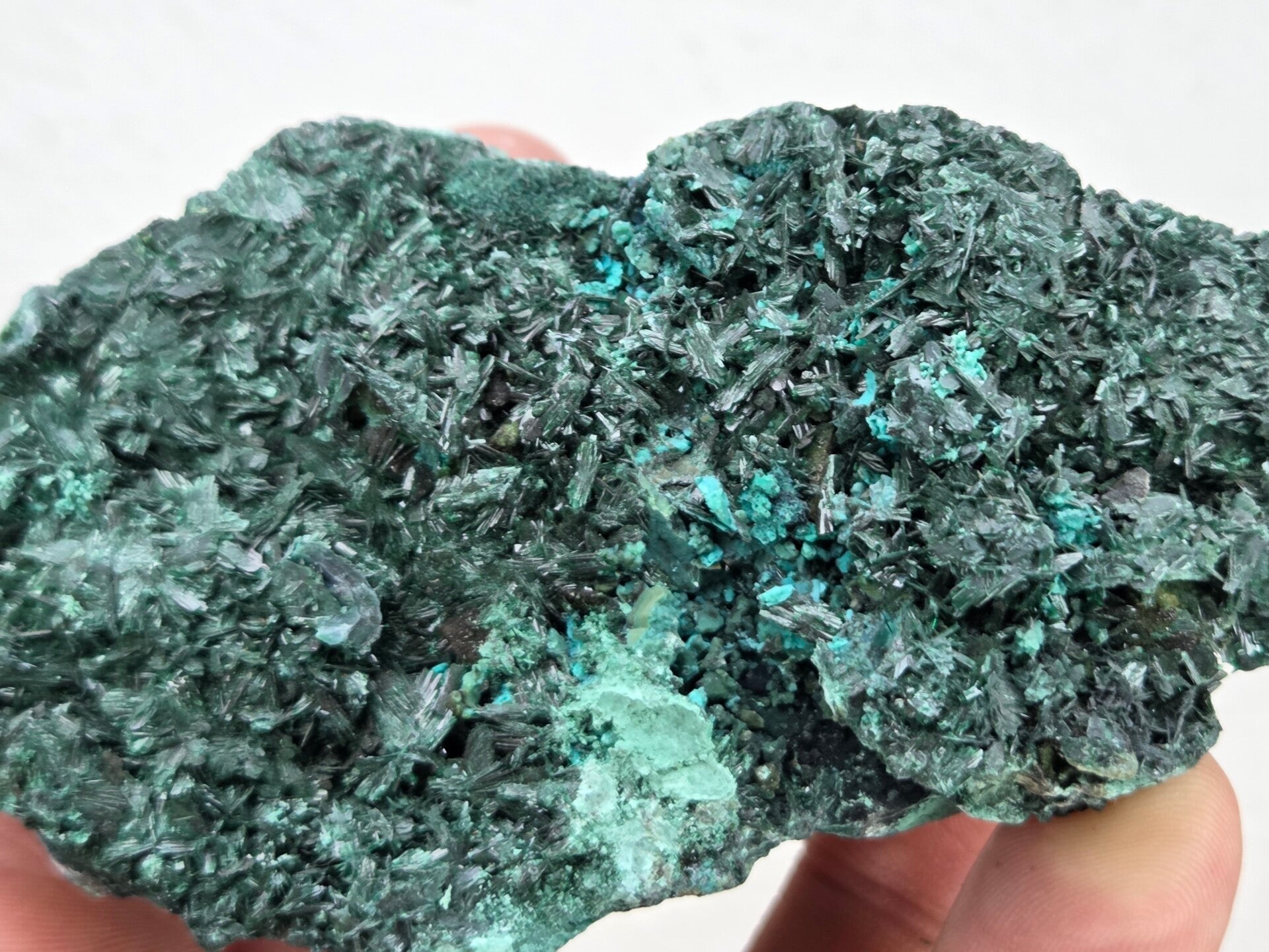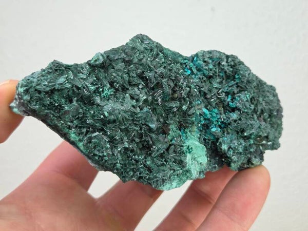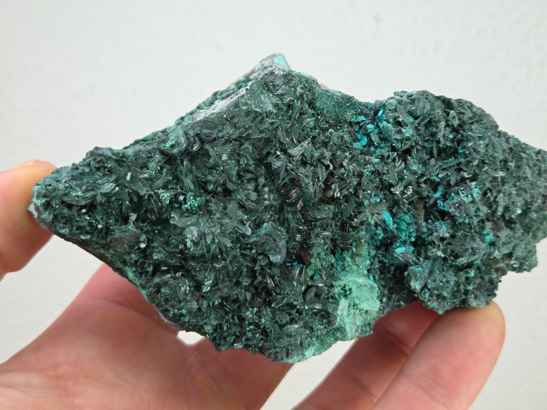 een stuk donker groene atacamiet met mooie kristallen uit de atacama woestijn, chili van 11,3 cm bij 6,7 cm bij 3,6 cm