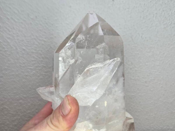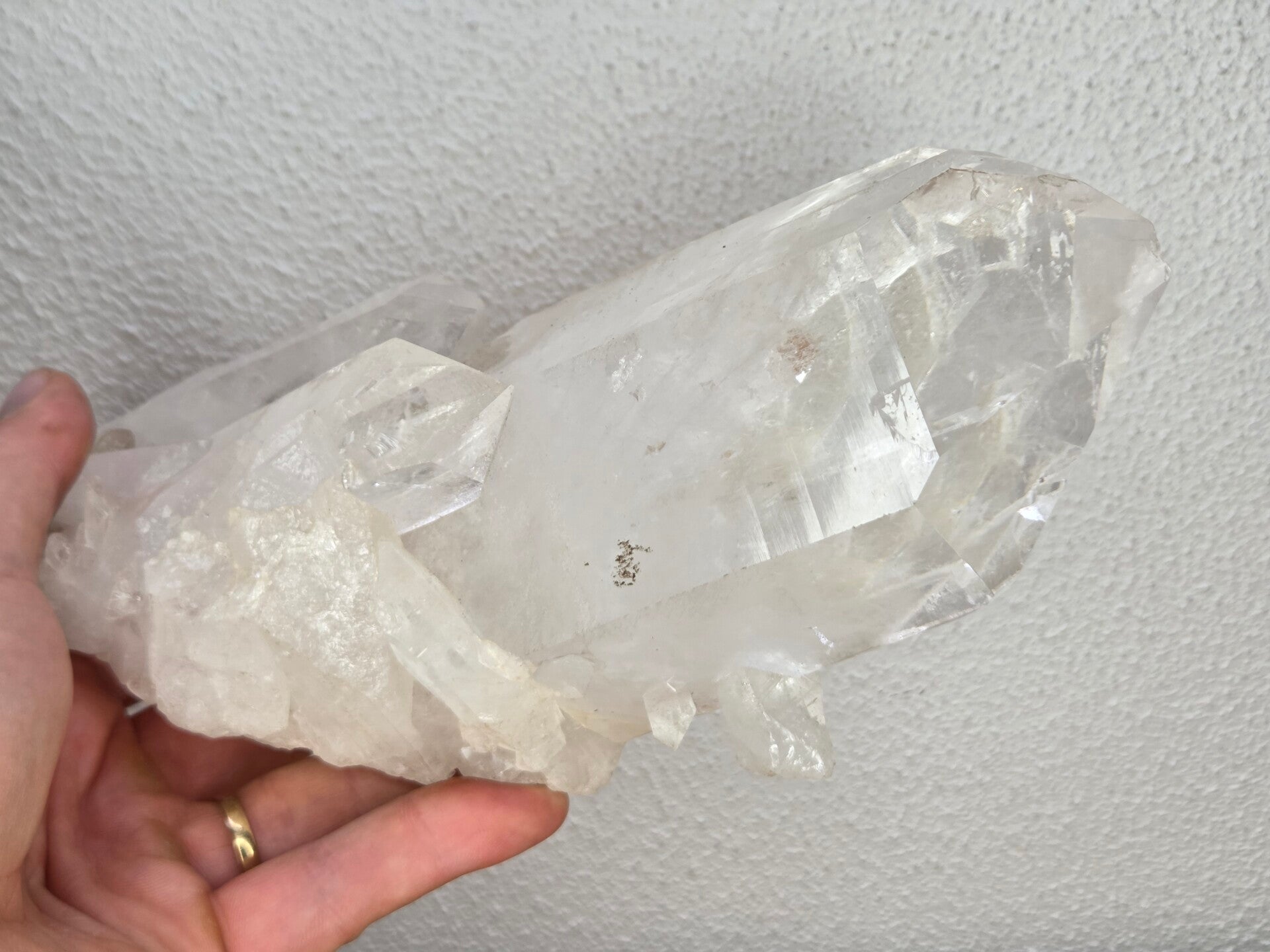 een stuk glashelder kwarts kristal uit st. gottart in zwitserland van 1348 gram en 20 cm bij 8,2 cm bij 9,1 cm