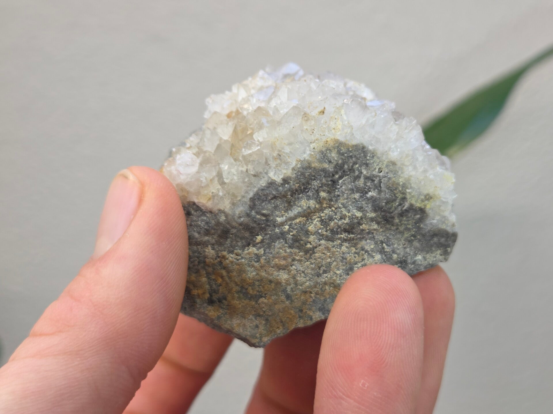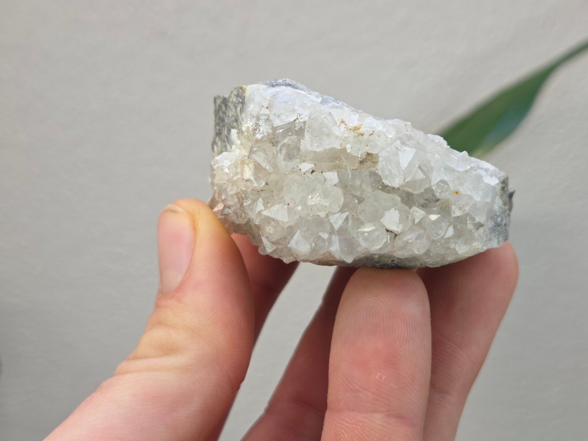 een stuk kwarts uit heiligenhaus, duitsland van 6,4 cm bij 3,1 cm bij 5 cm
