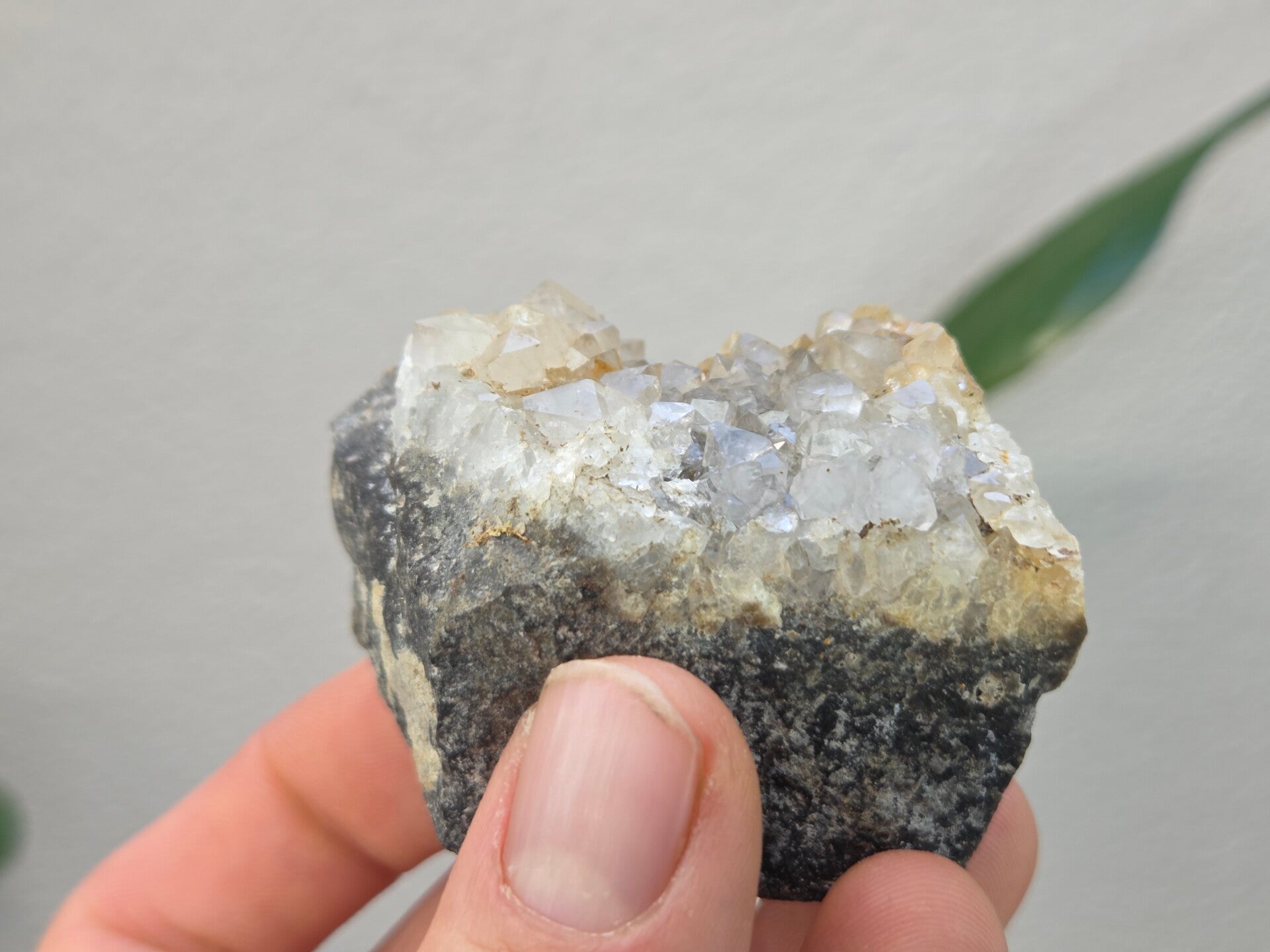 een stuk kwarts uit heiligenhaus, duitsland van 4,9 cm bij 5,4 cm bij 3,6 cm