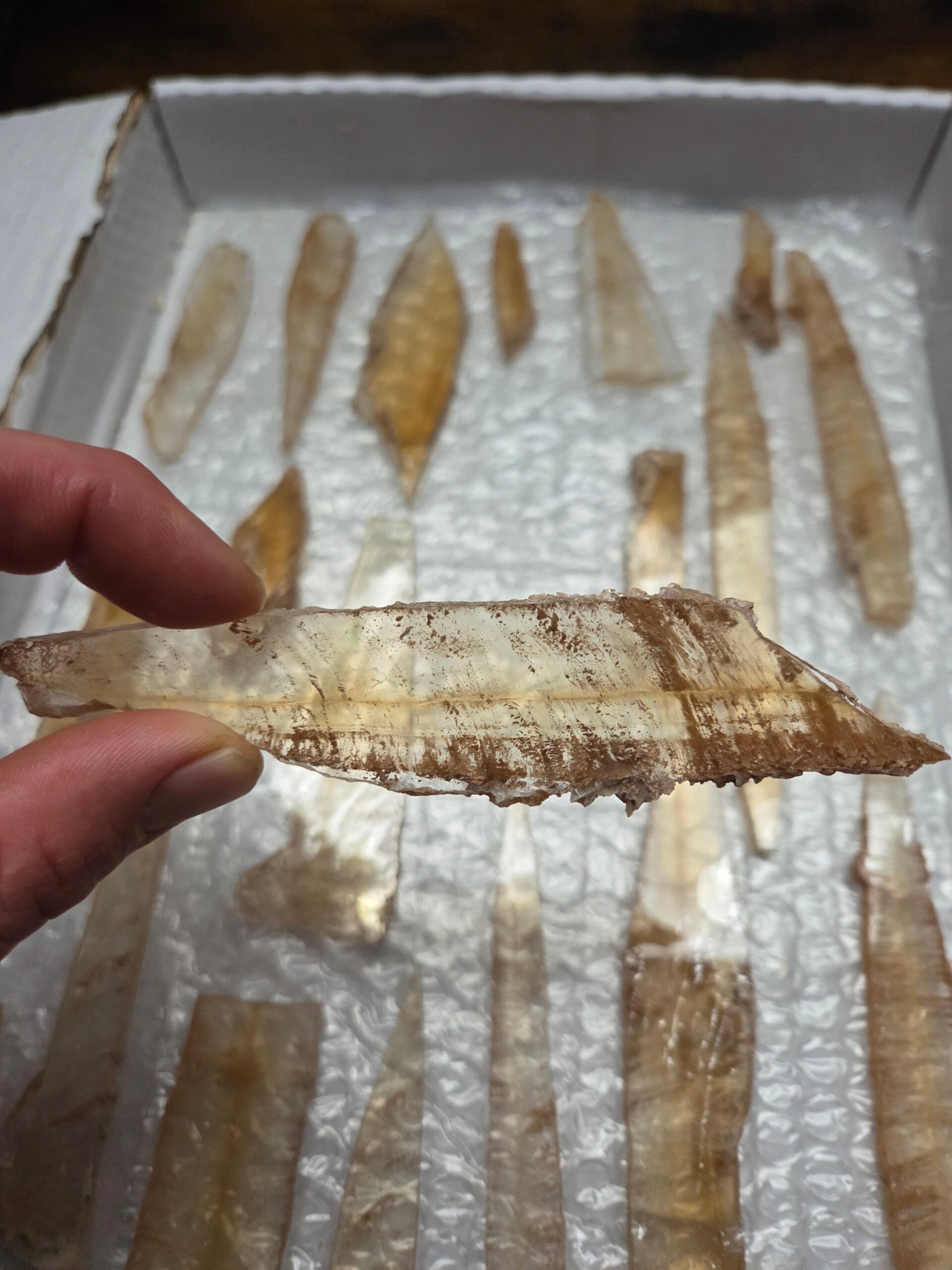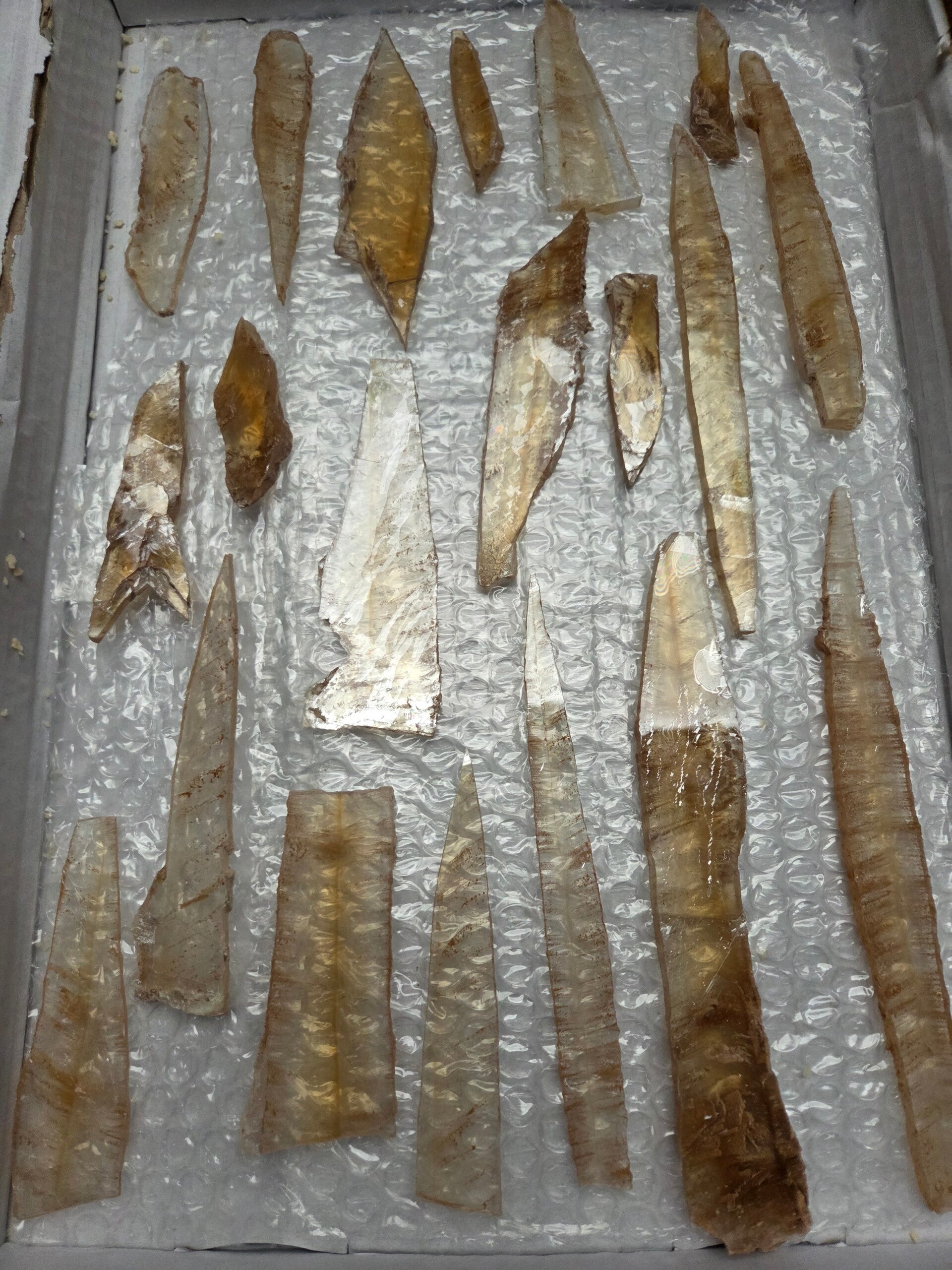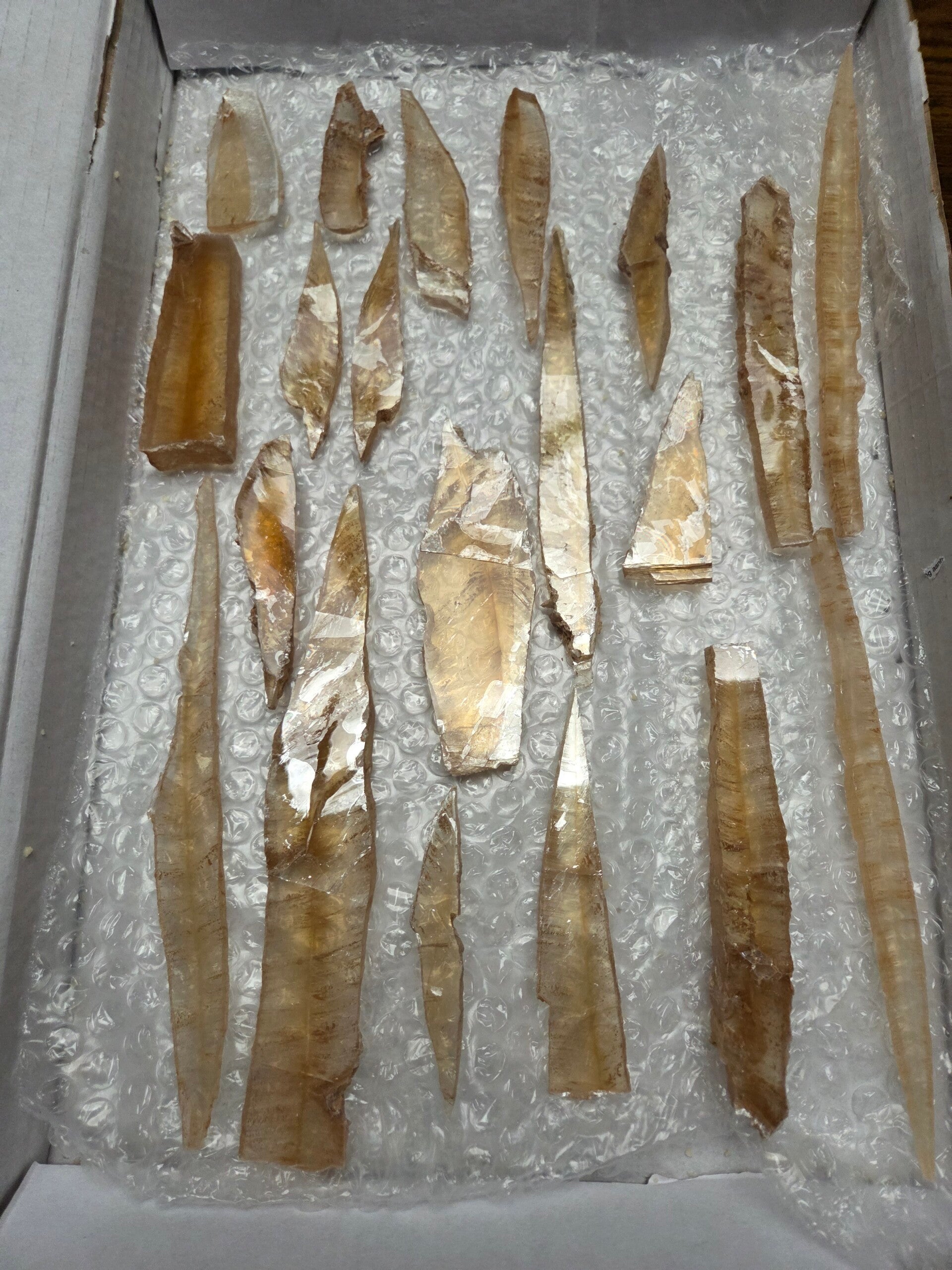 17 partijen van 20 plakken heldere bruine selenieten per doosje uit utrillas, spanje. de prijs is per doos.