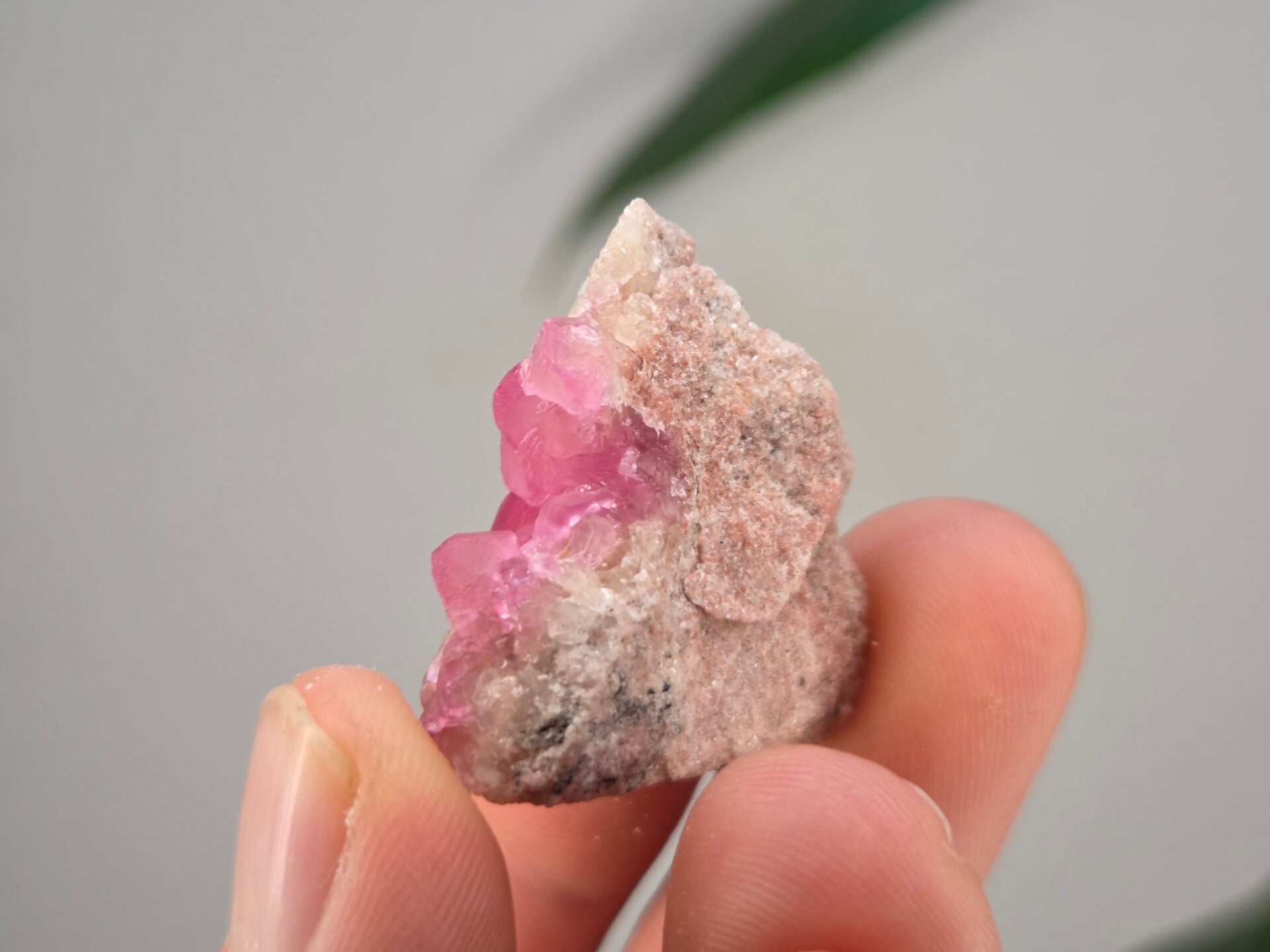 een stukje cobalto calciet uit de kisanfu mijn in kisamfu, lubudi, lualaba, congo van 3,2 cm bij 3,4 cm bij 1,2 cm