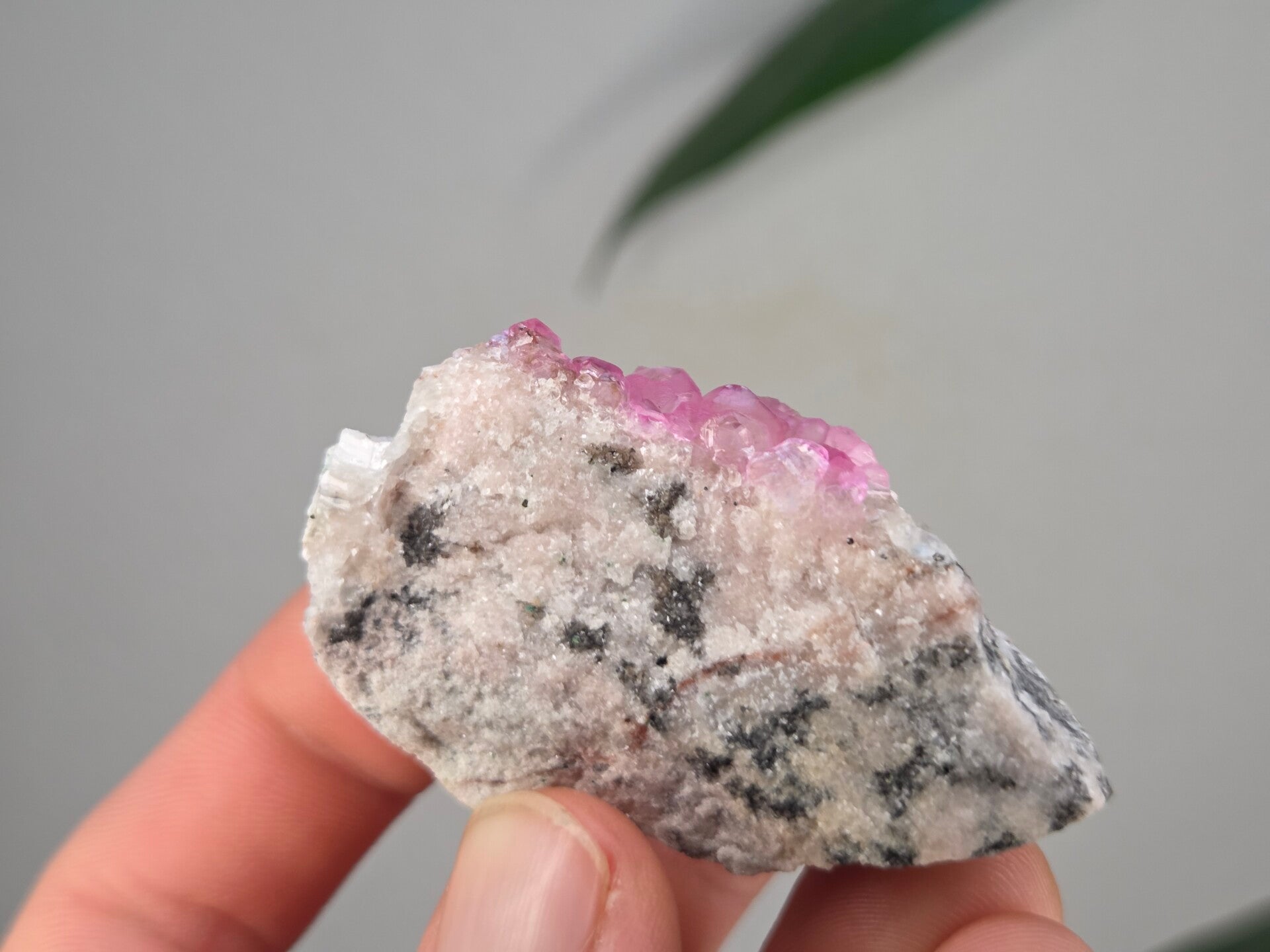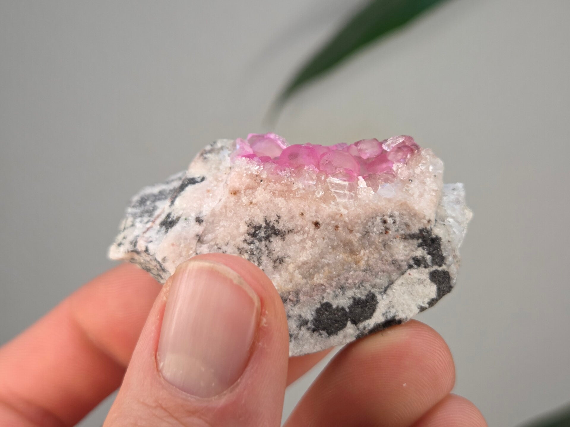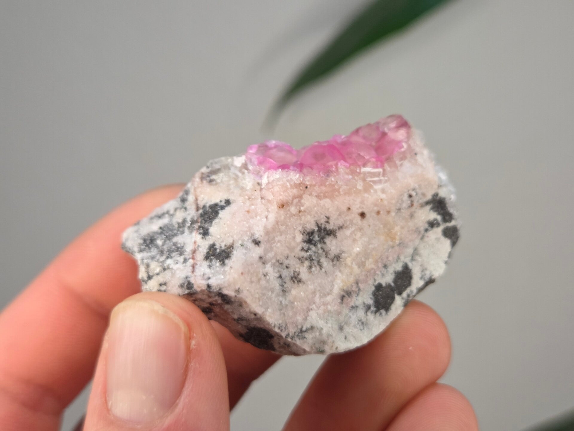 een stukje cobalto calciet uit de kisanfu mijn in kisamfu, lubudi, lualaba, congo van 5,6 cm bij 3,5 cm bij 3 cm