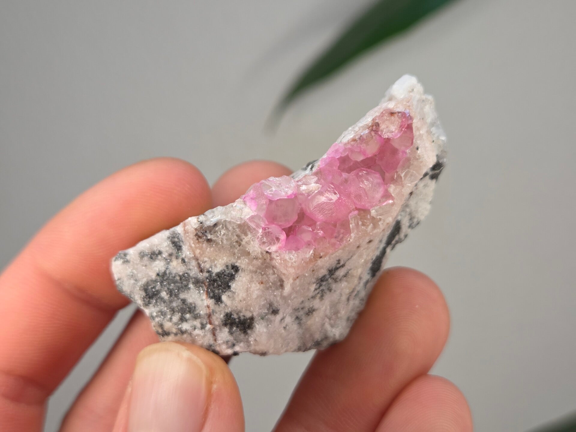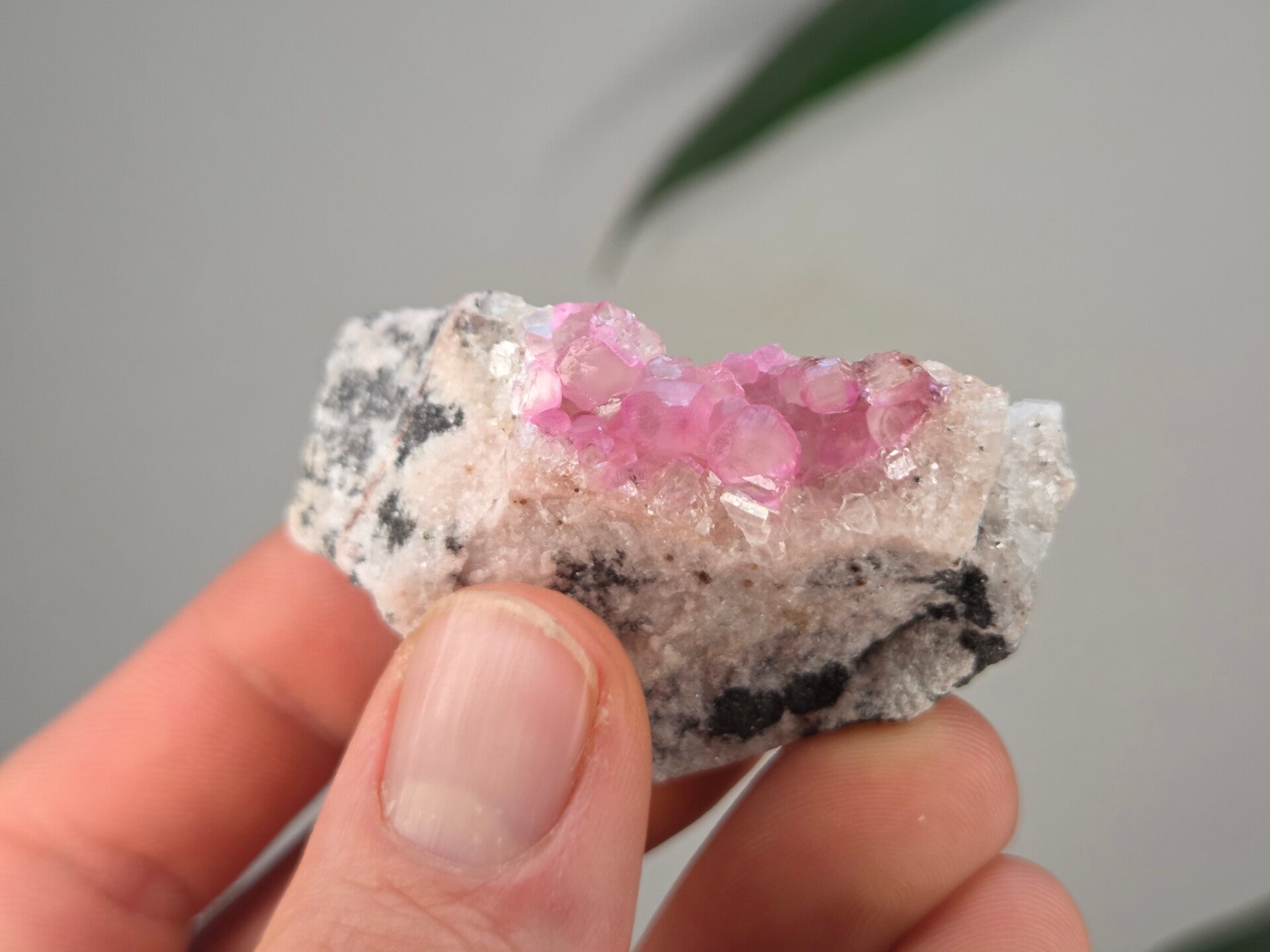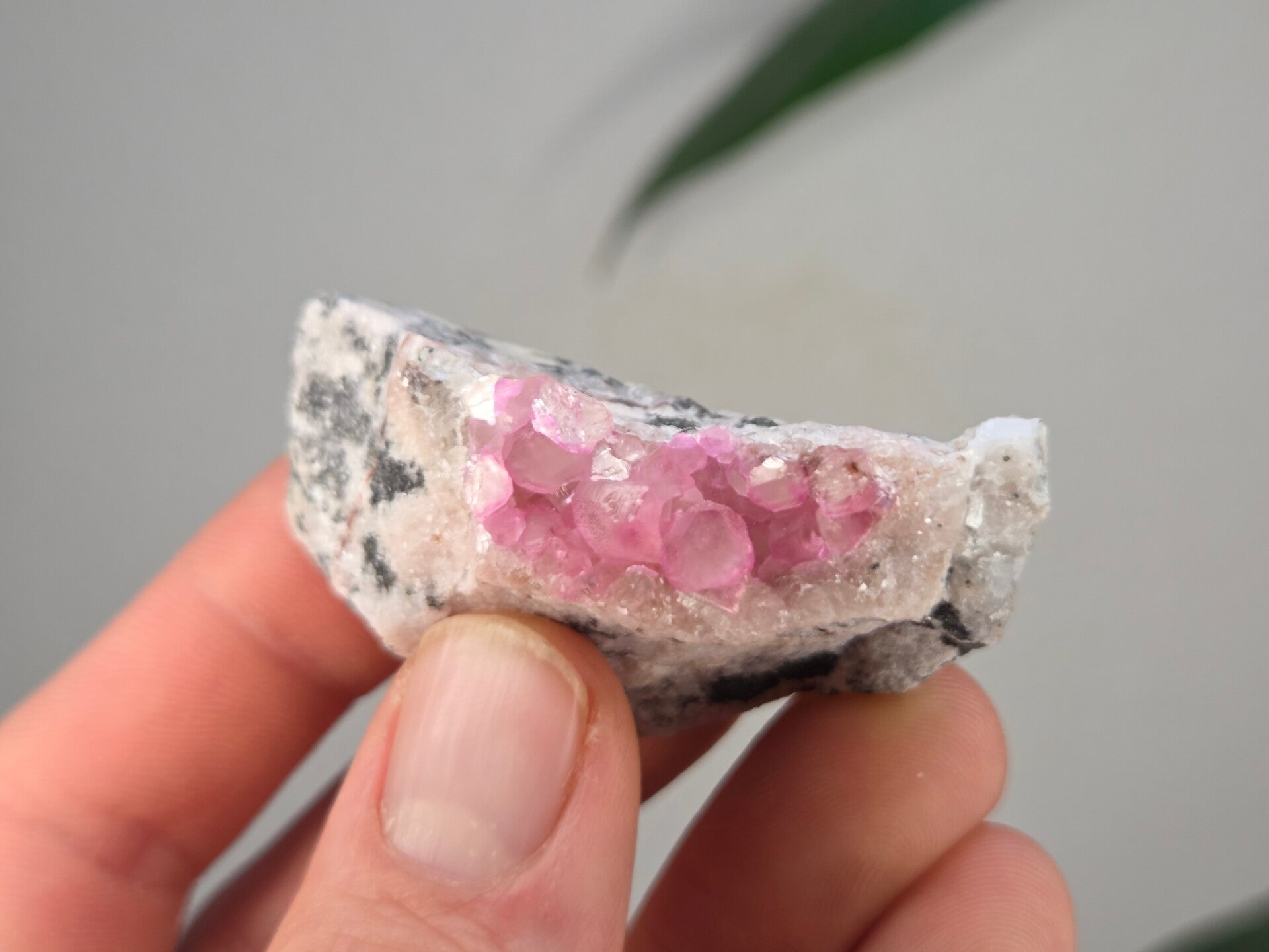 een stukje cobalto calciet uit de kisanfu mijn in kisamfu, lubudi, lualaba, congo van 5,6 cm bij 3,5 cm bij 3 cm