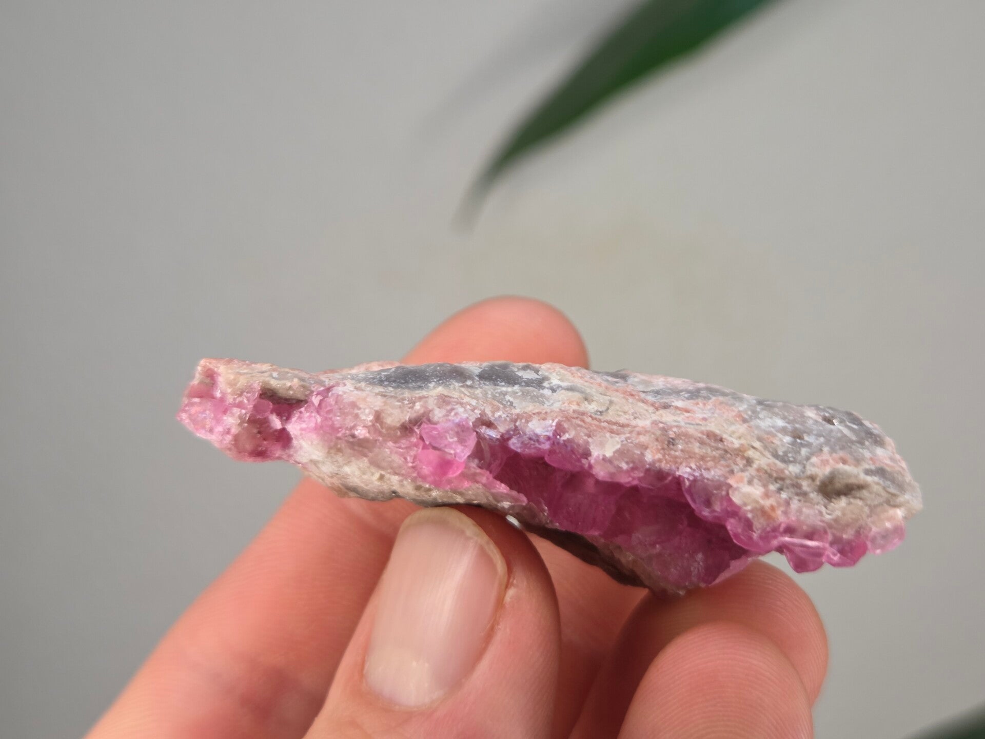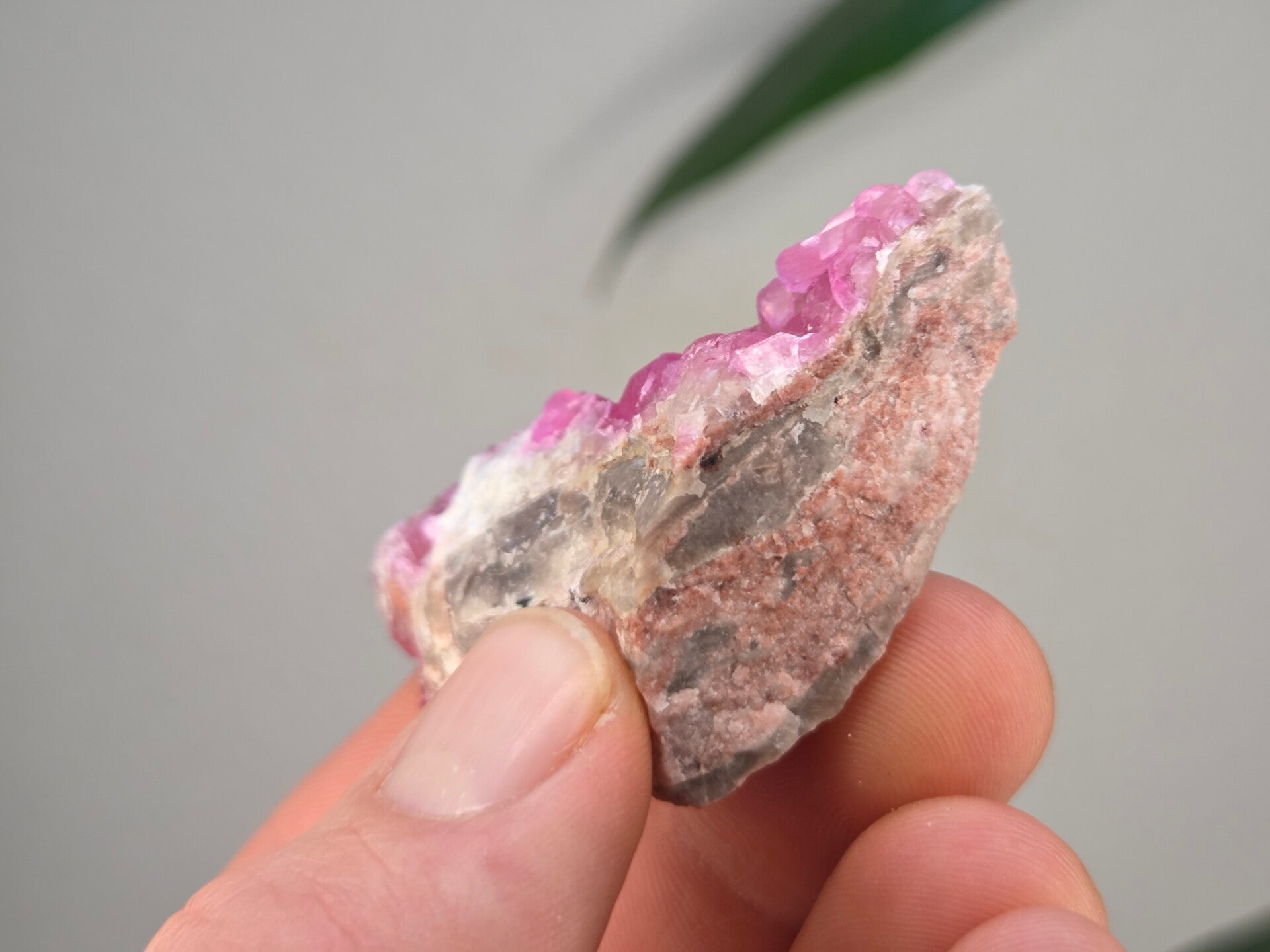 een stukje cobalto calciet uit de kisanfu mijn in kisamfu, lubudi, lualaba, congo van 5,2 cm bij 4,4 cm bij 1,9 cm
